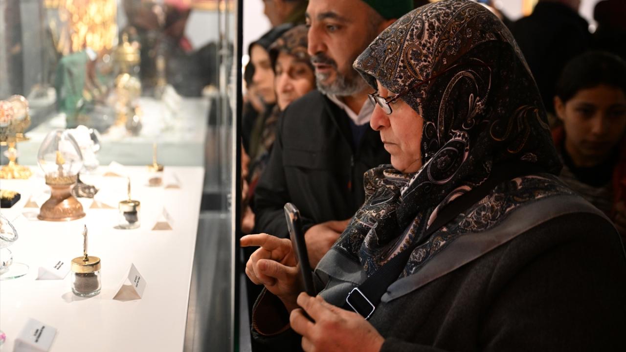 Sakal-ı Şerif ve Saç-ı Şerifler, Nal-ı Şerif, Ter-i Şerif ve Kadem-i Şerifler, Hücre-i Saadet örtüsü, Osmanlı dönemine ait kırmızı Kabe örtüsü başta olmak üzere çeşitli Kabe örtüleri ve iç örtüler, Kabe kilidi ve anahtarı, Hira, Arafat, Uhud ve Merve tepelerinden getirilen taşlar sergide yer alıyor.