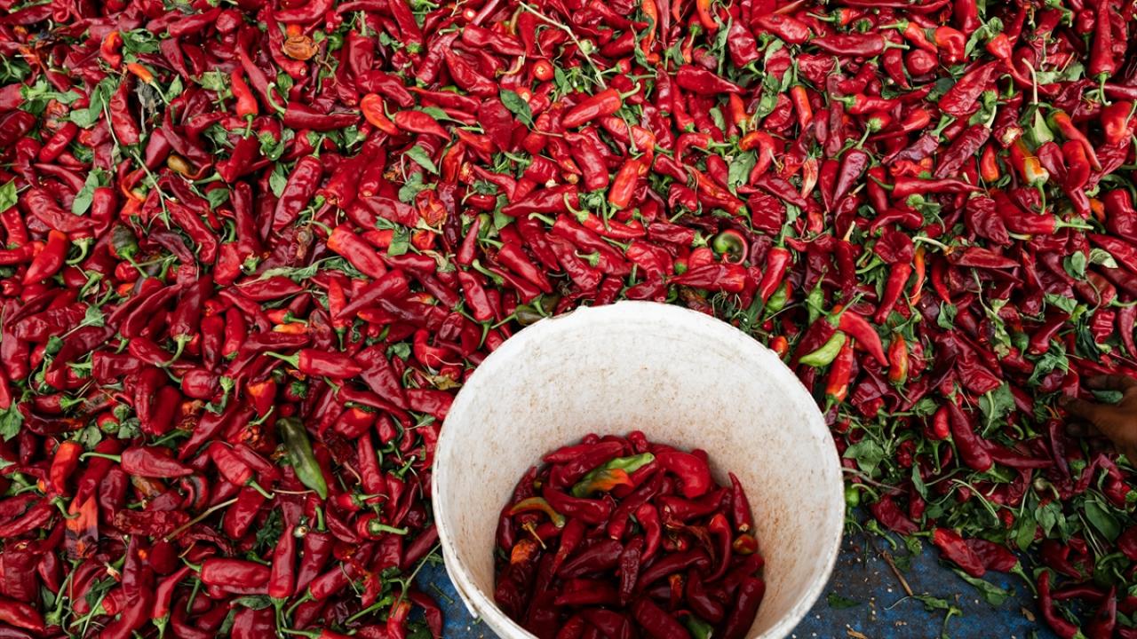 Tarlalardan toplanan biberler, güneş altında kurutulduktan sonra işlenerek bölgenin meşhur pul biberine dönüştürülüyor.