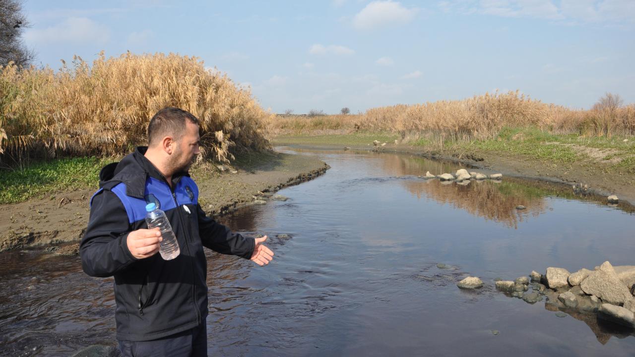 Gaziantep'in İslahiye ilçesinden geçen Karasu Çayı'nın renk değiştirmesi üzerine inceleme başlatıldı.