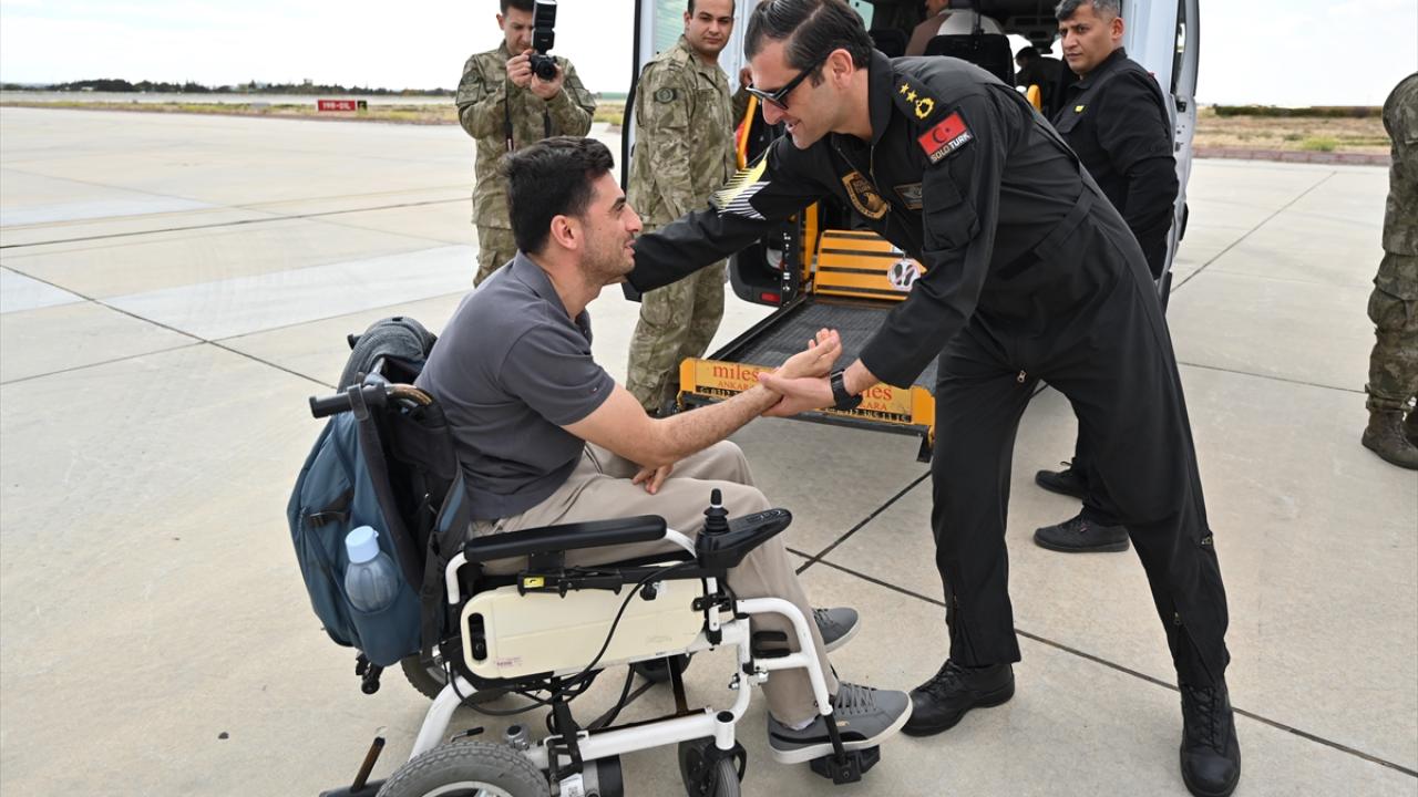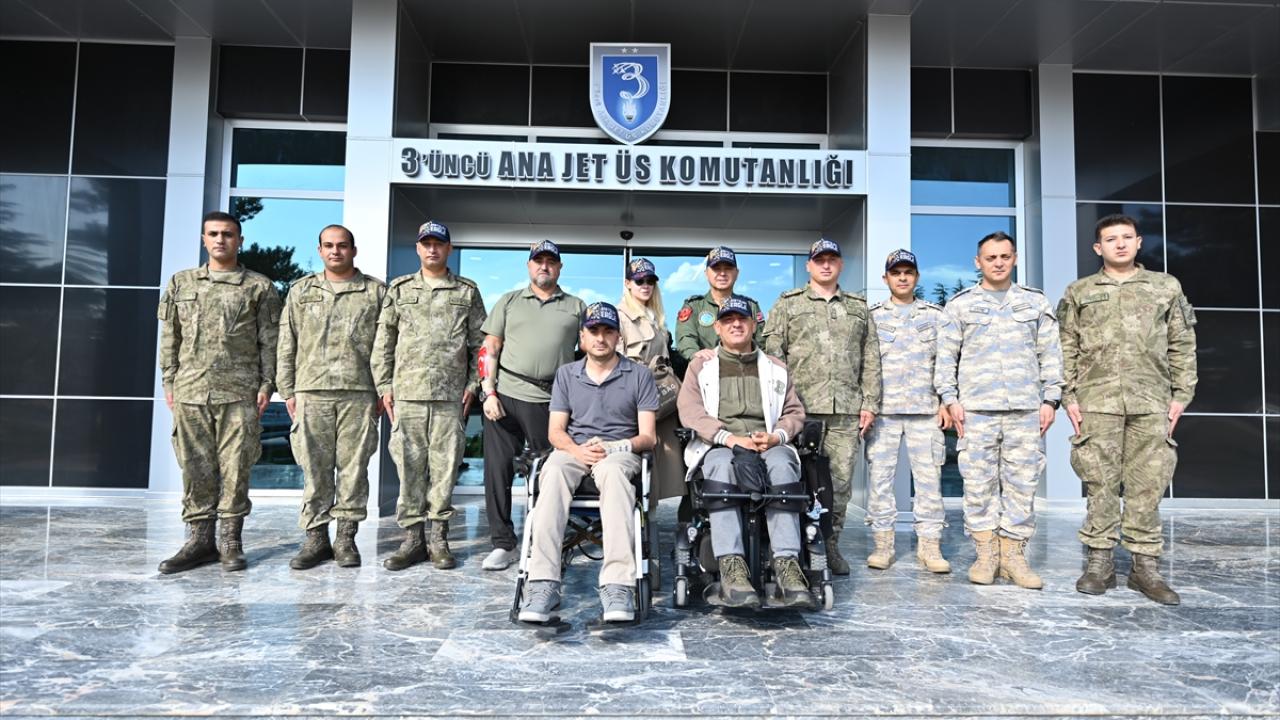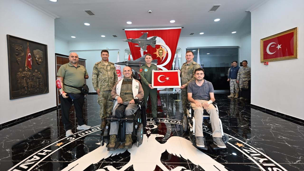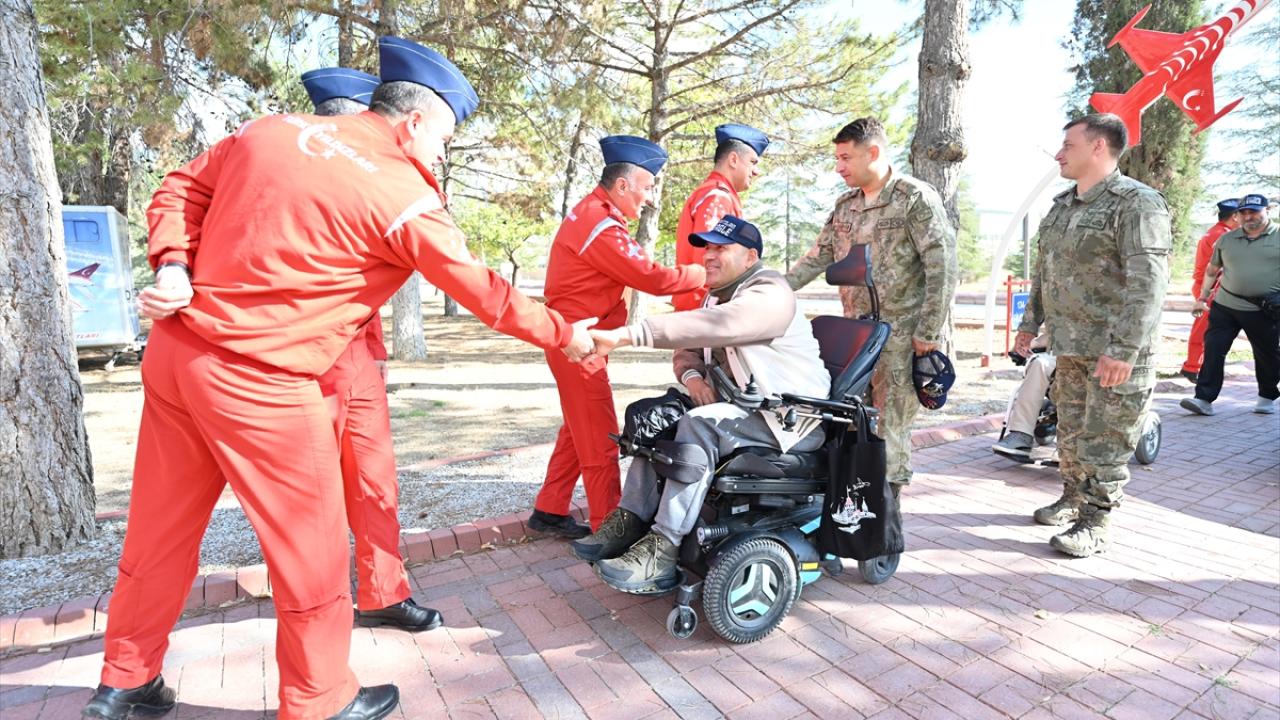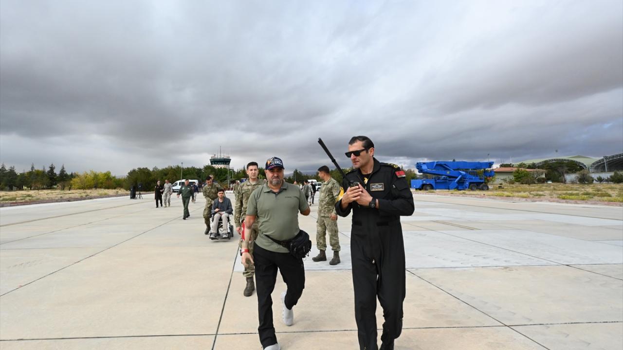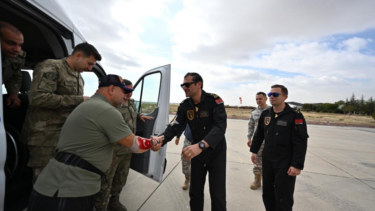 Milli Savunma Bakanlığı Yönetim Hizmetleri Genel Müdürlüğü Gaziler Sosyal Rehabilitasyon Merkezince Konya`daki üsse getirilen 5 kahraman gazi, Üs Komutanı Tümgeneral Mete Kuş tarafından karşılandı.