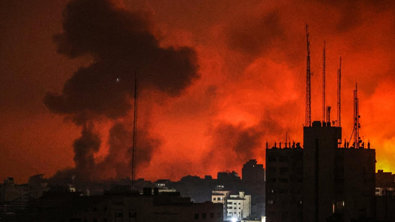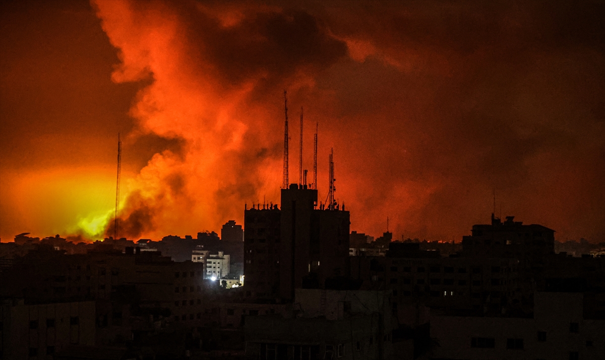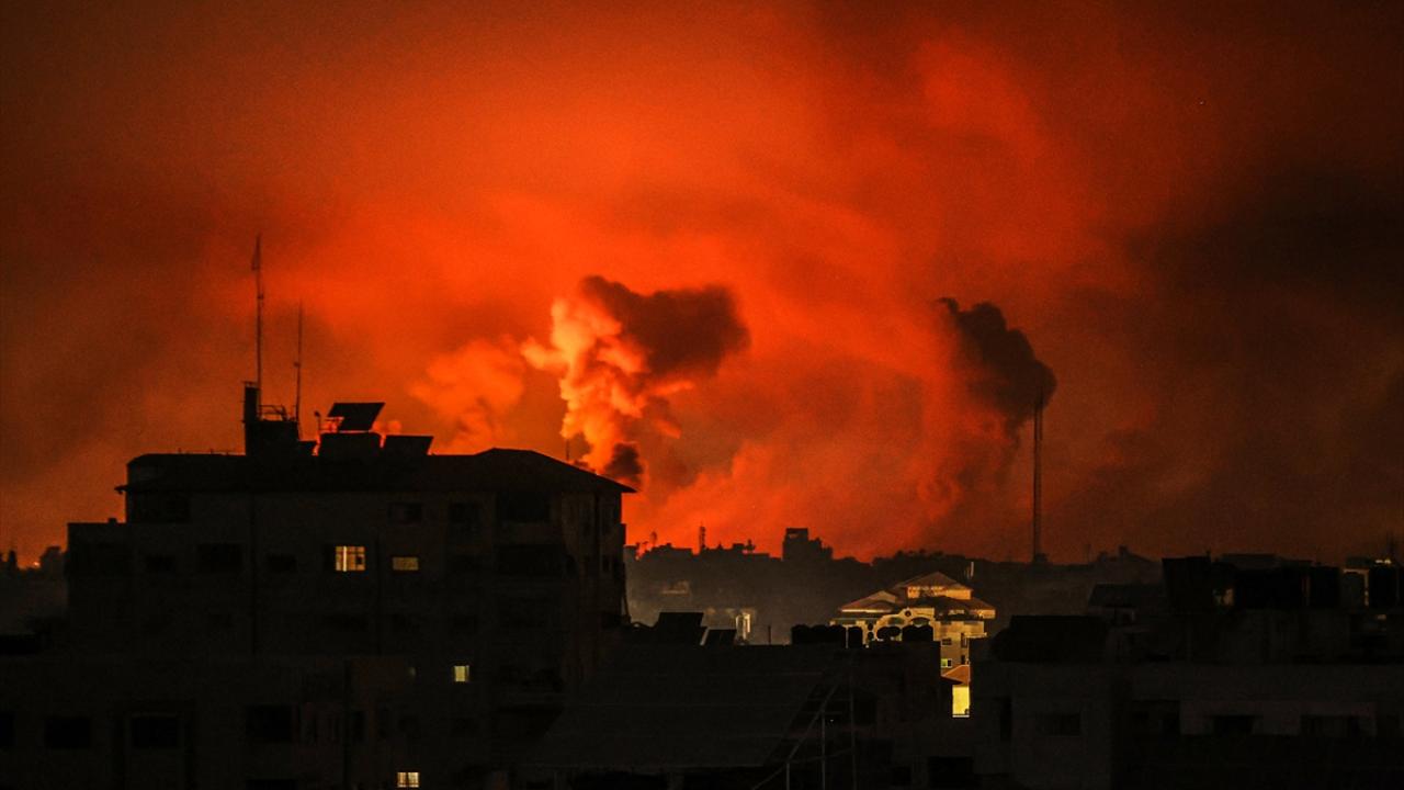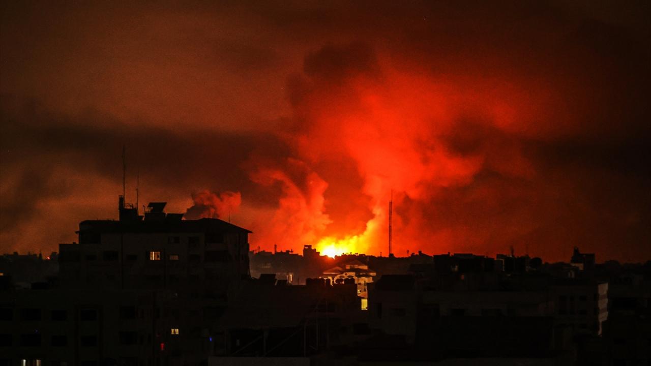 İsrail ordusu, abluka altındaki Gazze Şeridi’ne 7 Ekim’den bu yana en şiddetli saldırılarını düzenliyor. Saldırılar sonucu Gazze kentinin farklı bölgelerinden alev ve dumanlar yükseldi. İsrail’in elektriğini kestiği ve yakıt girişine izin vermediği için karanlığa bürünen Gazze’de gökyüzünü sık sık atılan bombaların ateşi aydınlattı.