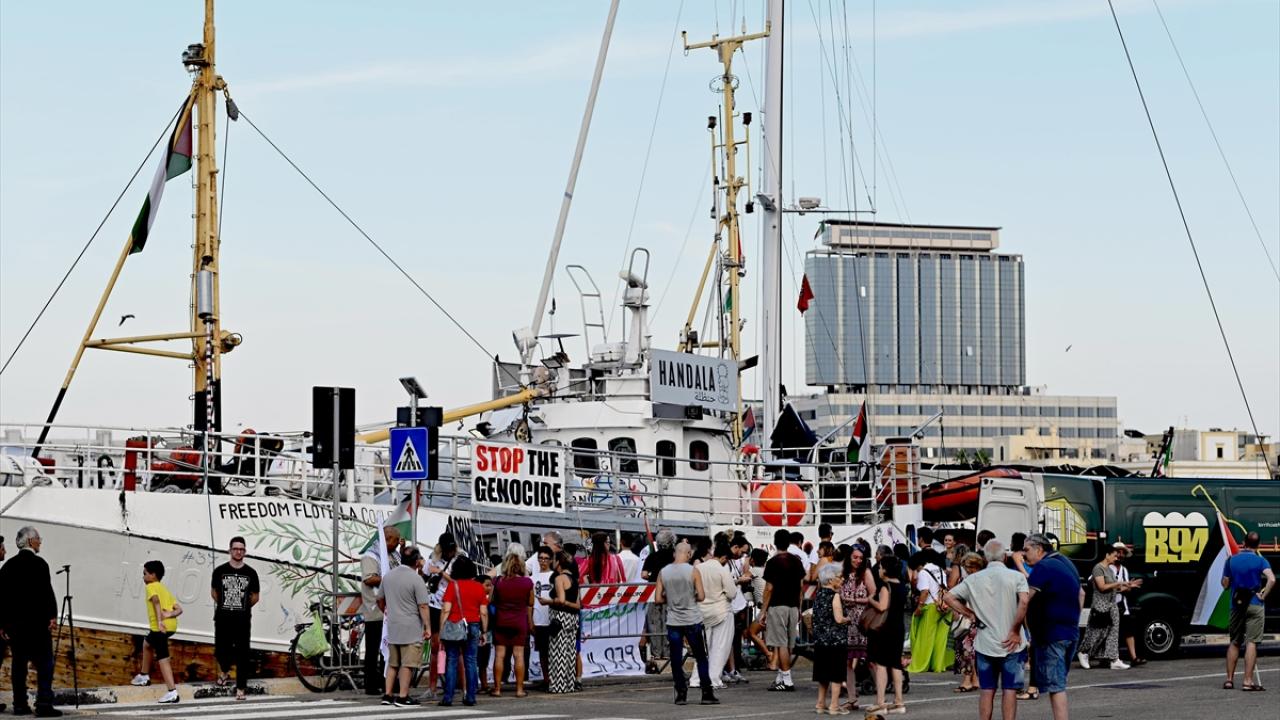 İsrail saldırısı ve ablukası altındaki Gazze'ye insani yardım ulaştırma amacındaki Özgürlük Filosu Koalisyonu'nun yeni gemisi "Handala", İtalya'nın Apulia kentindeki Gelibolu Limanı'ndan hareket etti.