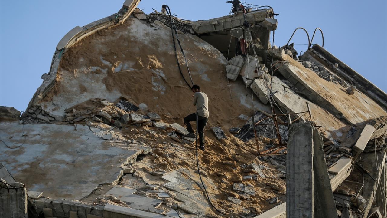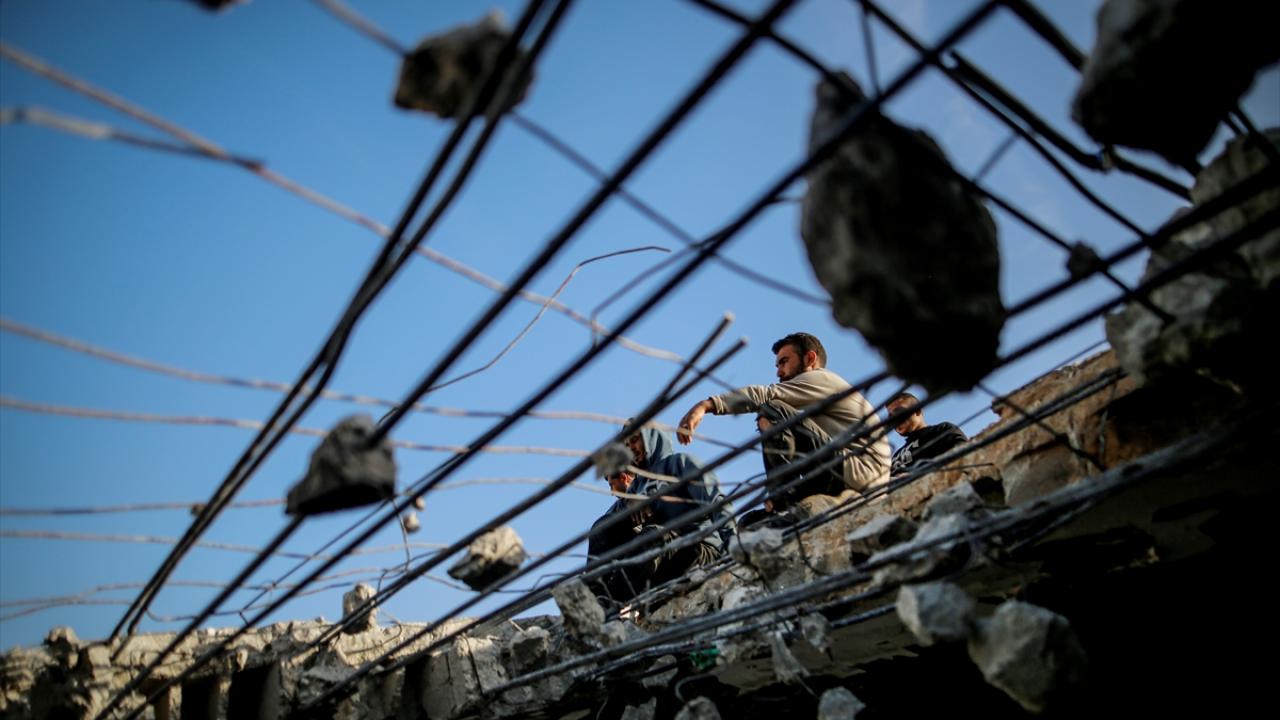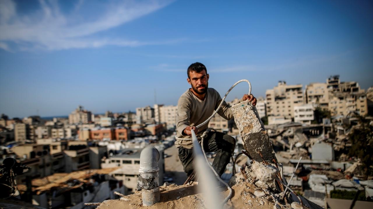Ağır iş makinesi ve temel ekipman yetersizliğinin yaşandığı Gazze kent merkezinde Filistinliler, basit el aletleriyle temizlik ve enkaz kaldırma çalışması yürüttü.