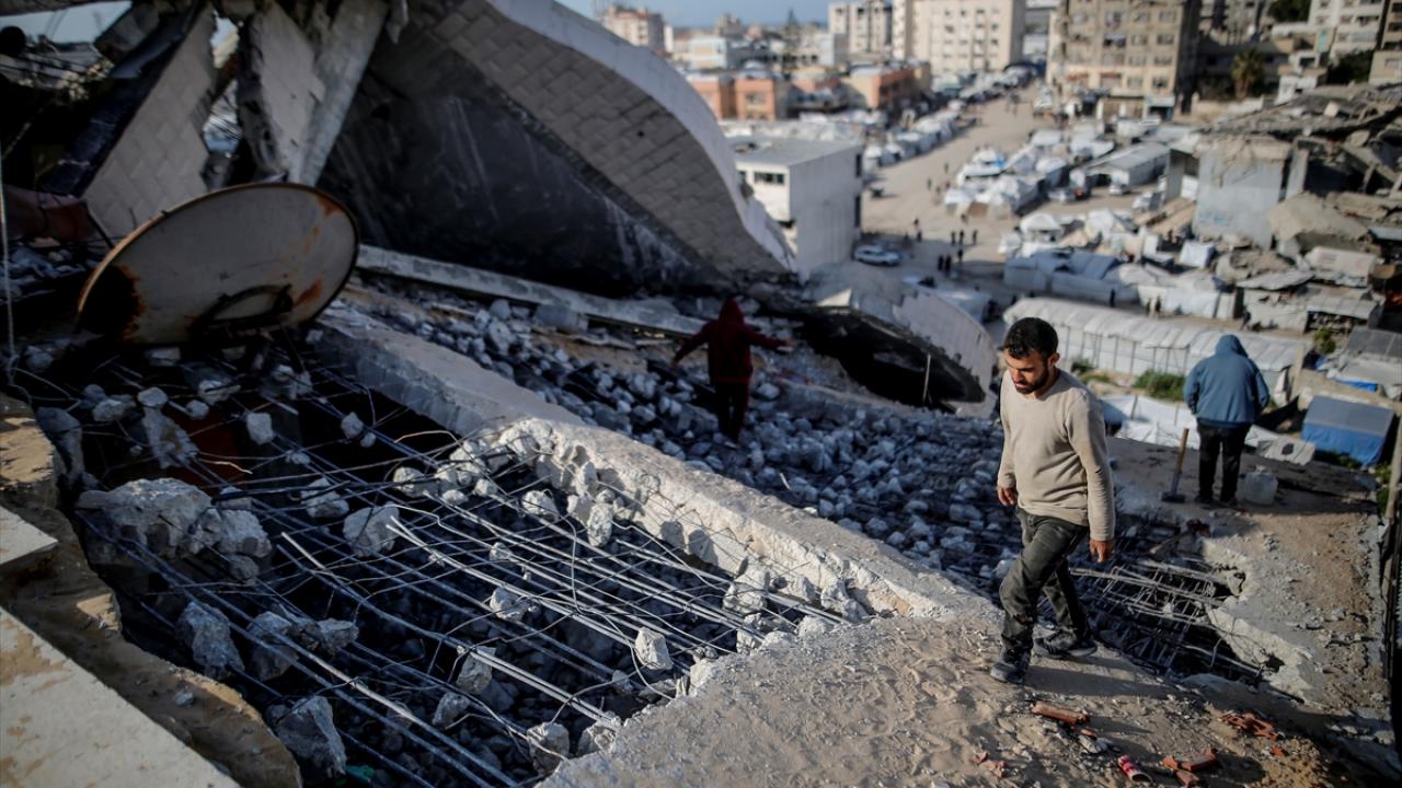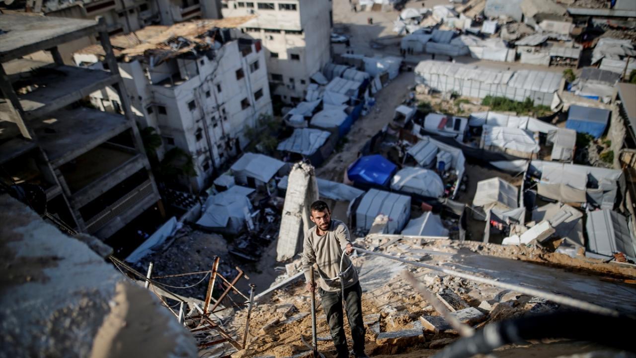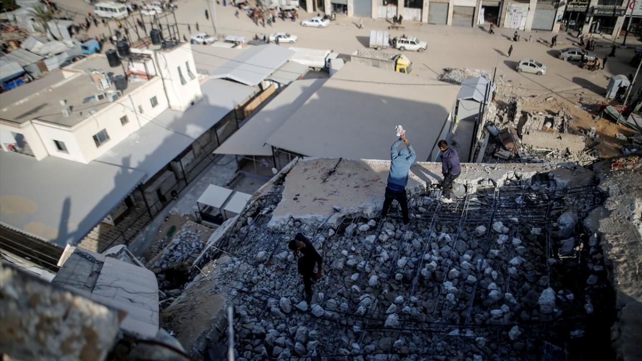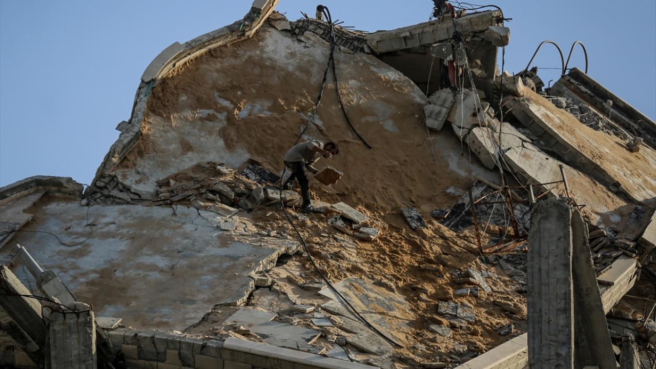Ağır iş makinesi ve temel ekipman yetersizliğinin yaşandığı Gazze kent merkezinde Filistinliler, basit el aletleriyle temizlik ve enkaz kaldırma çalışması yürüttü.