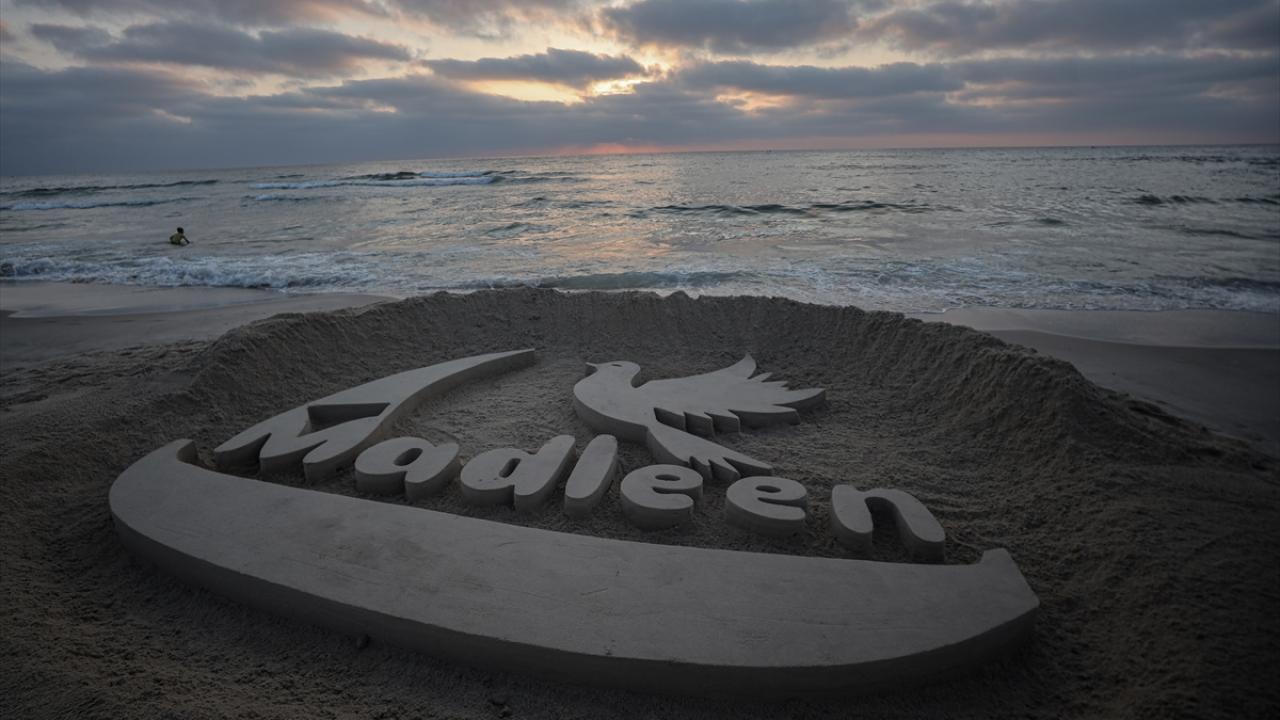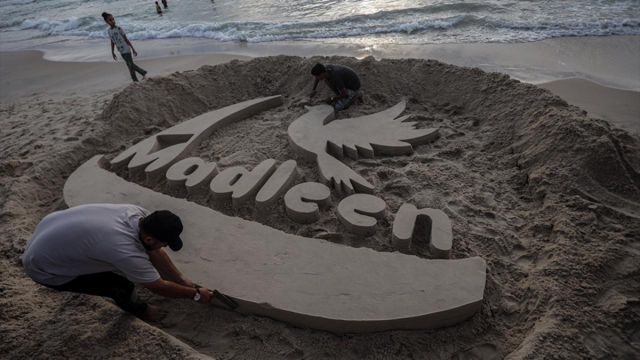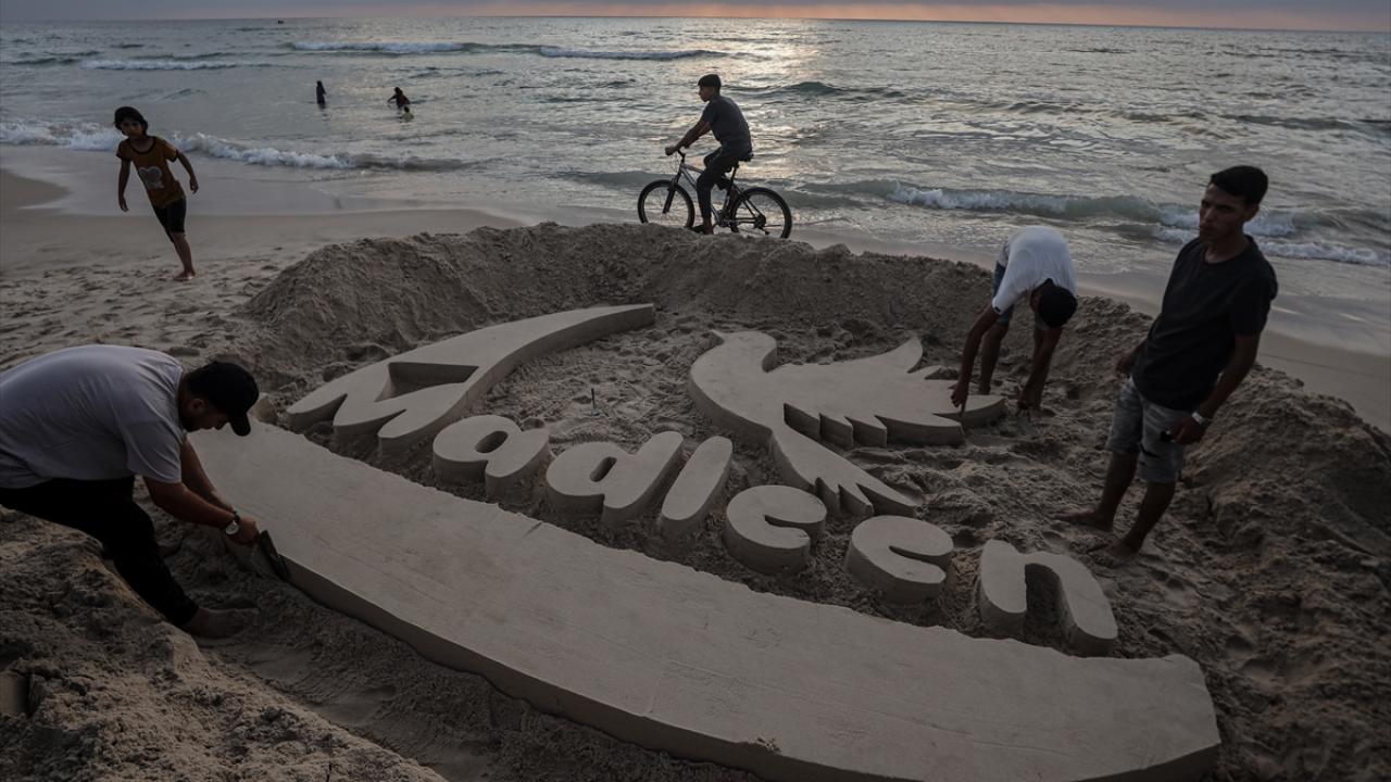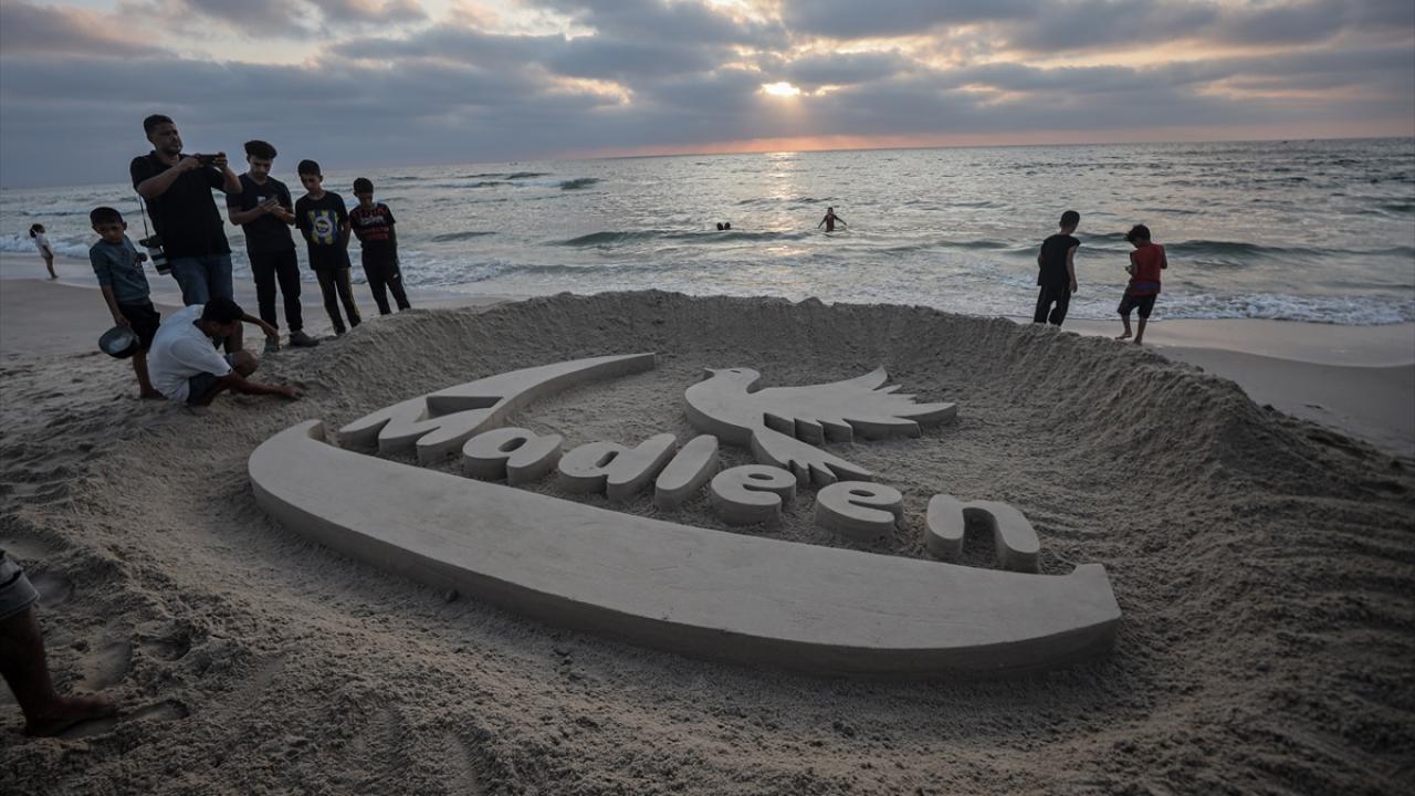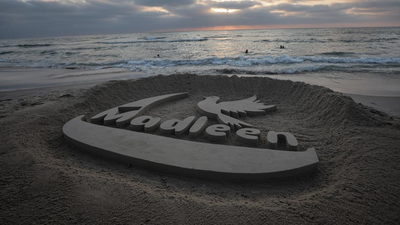 Ebu Cerad, Gazze kentinin sahil bölgesinde kuma Madleen resmi yaptı.
