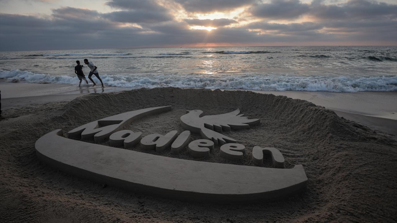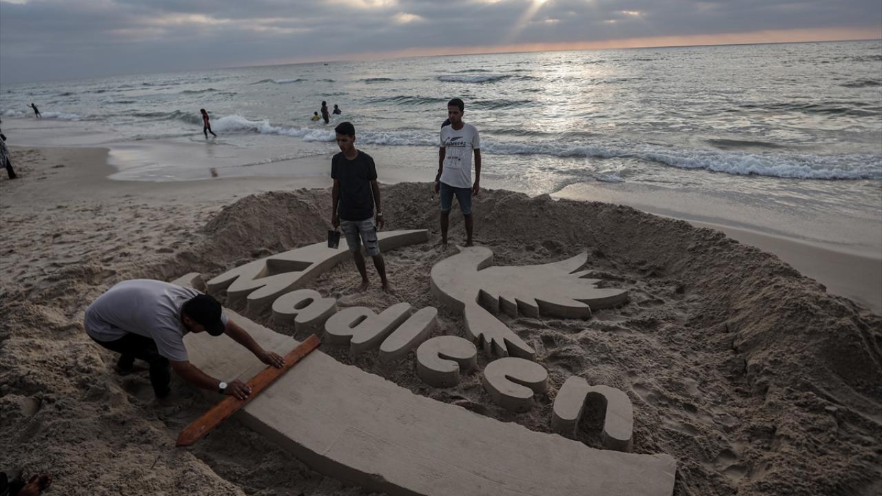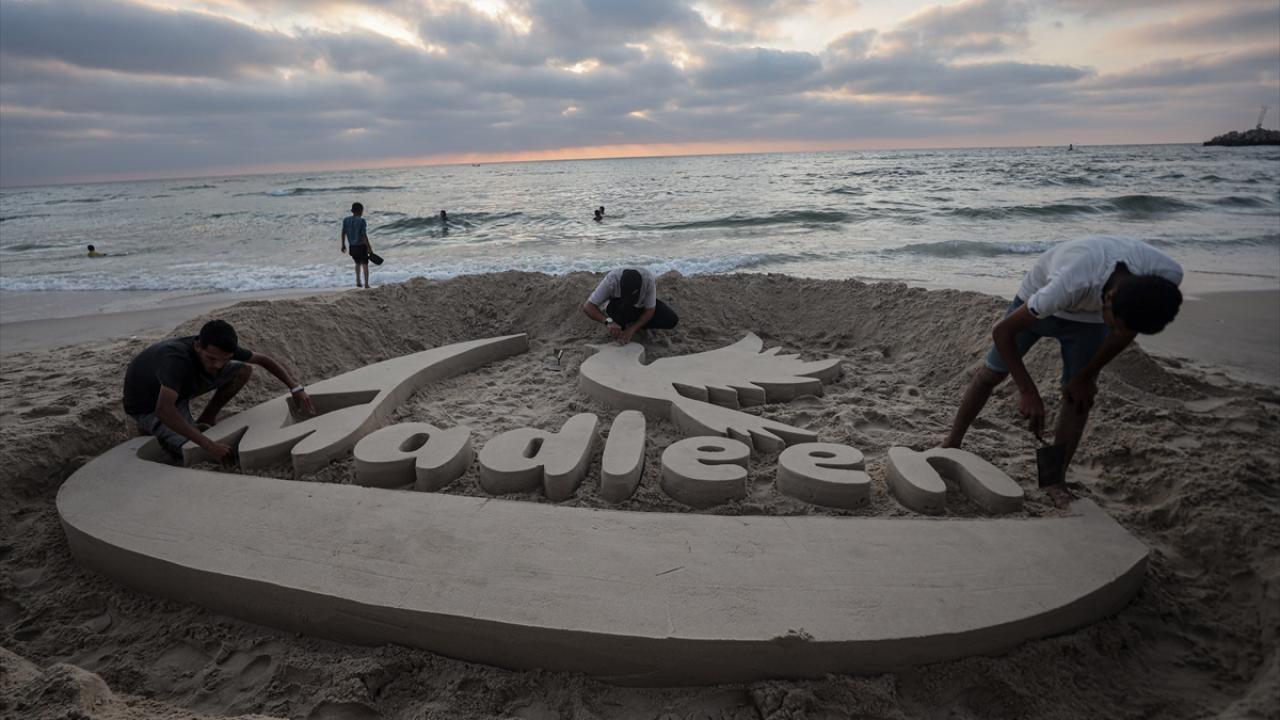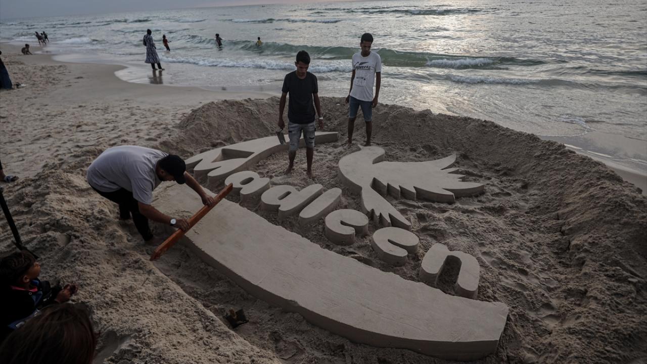 Ebu Cerad, Gazze kentinin sahil bölgesinde kuma Madleen resmi yaptı.