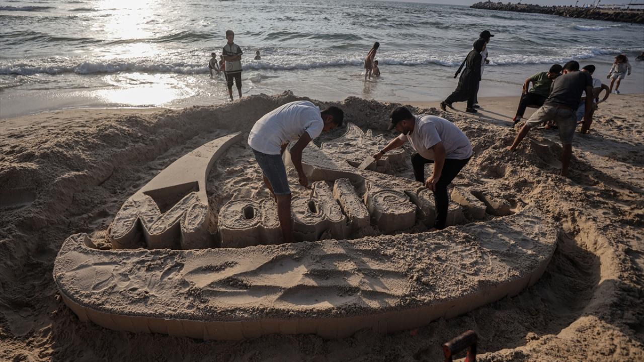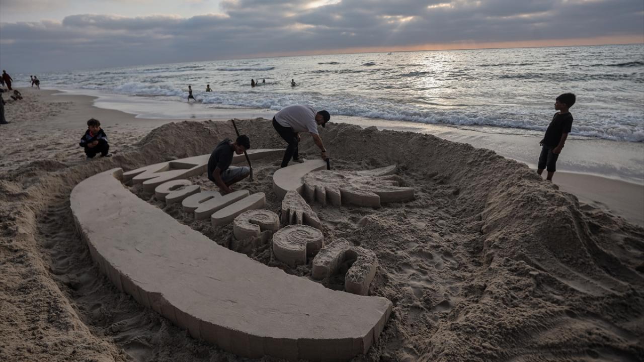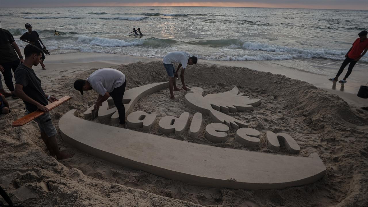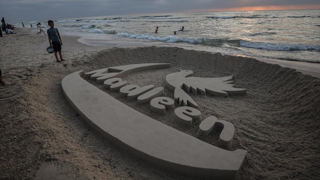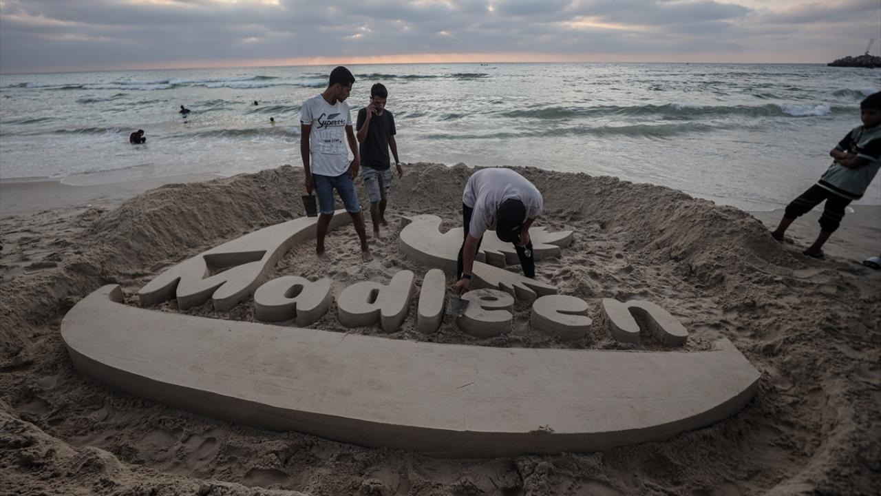 Ebu Cerad, Gazze kentinin sahil bölgesinde kuma Madleen resmi yaptı.