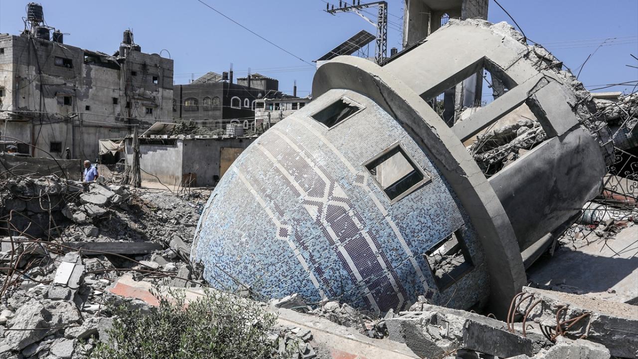 İsrail güçlerinin saldırıları sonucu Gazze Şeridi`nin çeşitli bölgelerindeki ibadet yerleri ve çevresindeki yapılar moloz ve kül yığınına döndü.