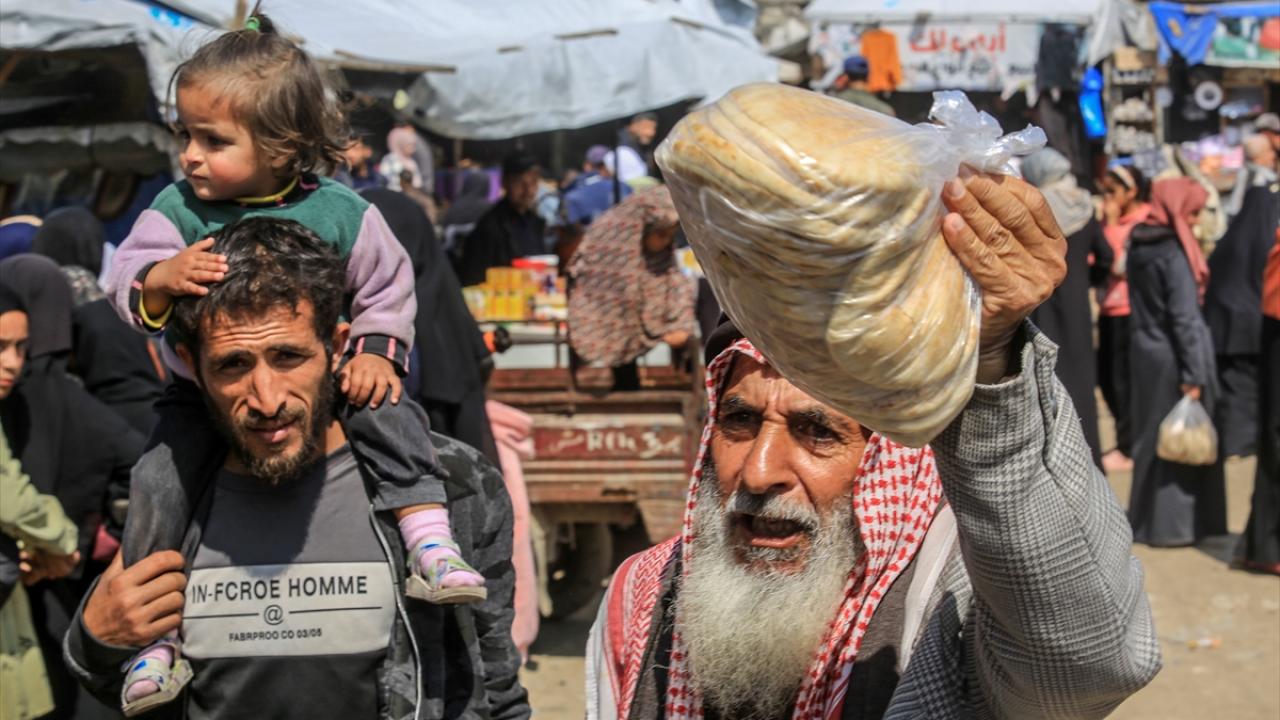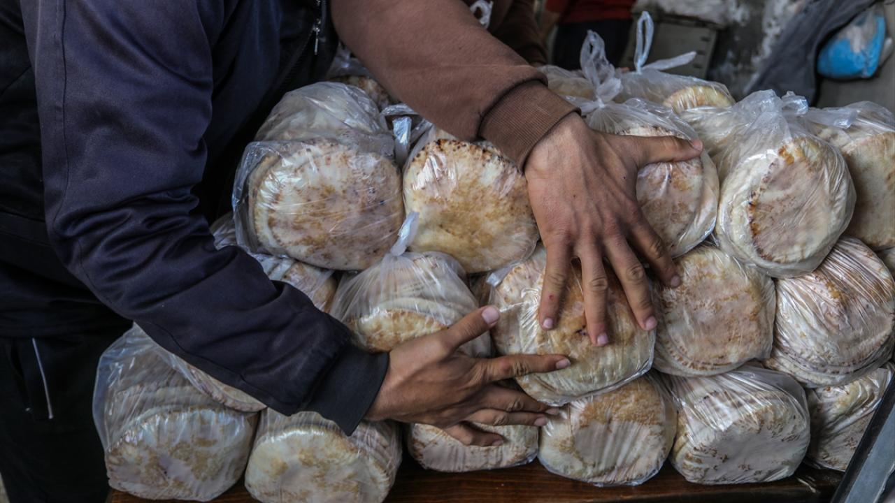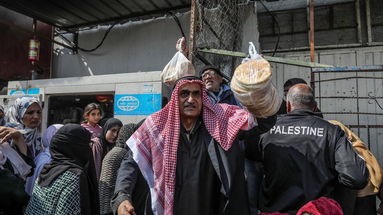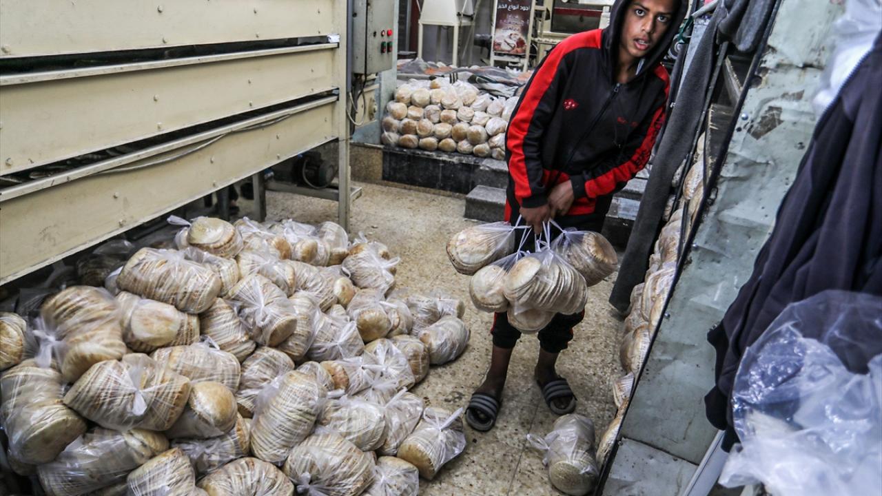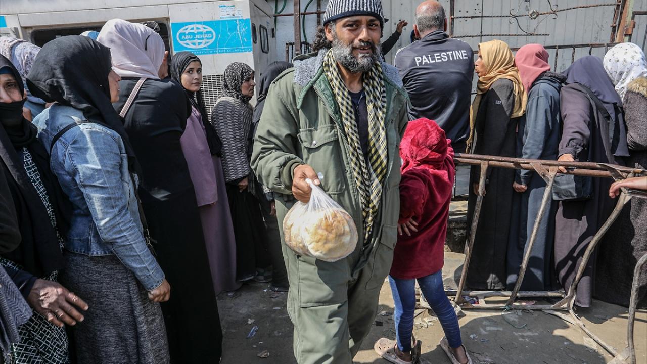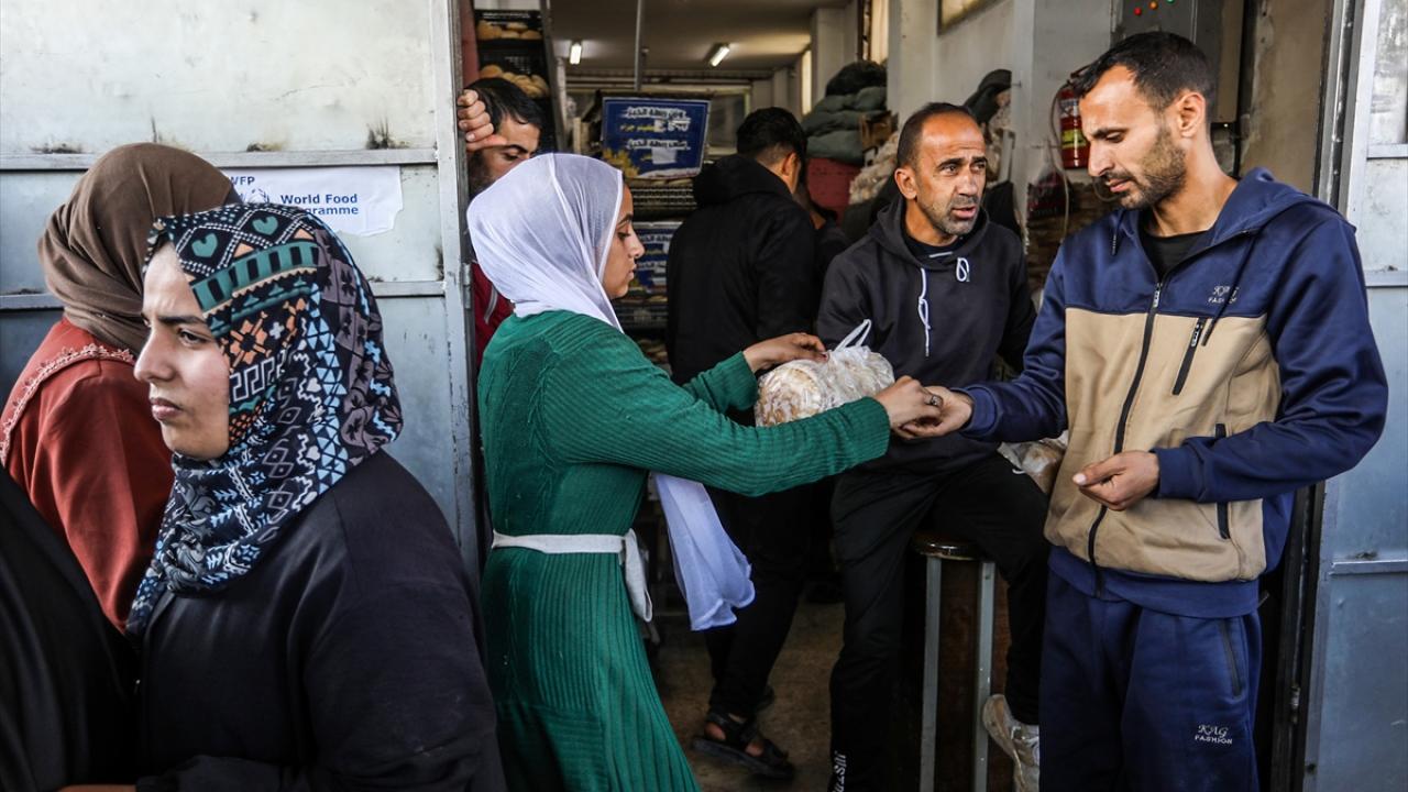 Han Yunus kentinde yaşayan Gazzeliler, ekmek alabilmek için fırınların önünde uzun saatler boyunca kalabalık kuyruklarda beklemek zorunda kalıyor.