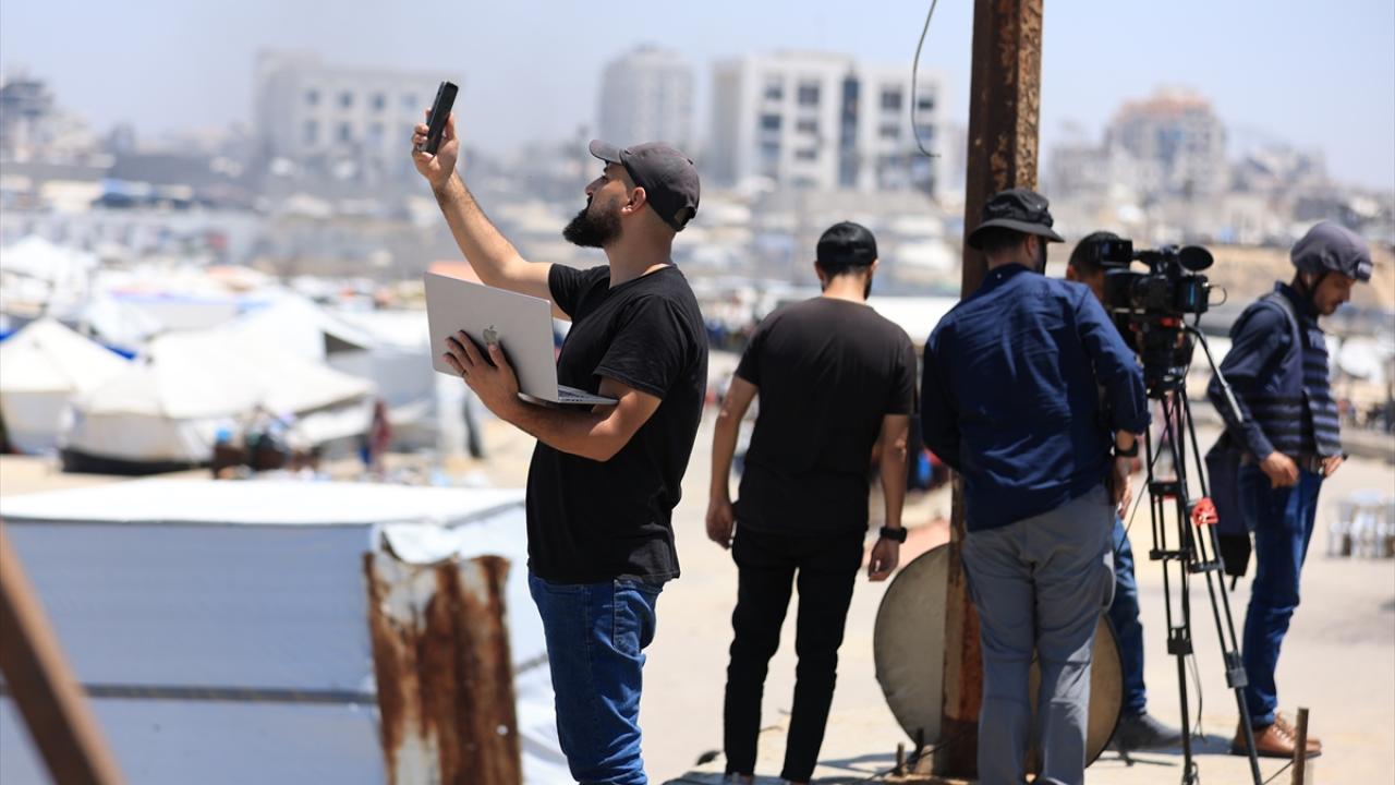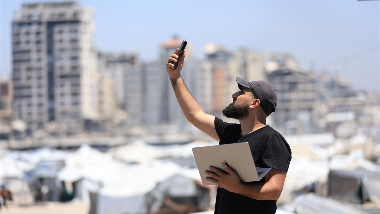 Gazze kentinde görev yapan basın mensupları cep telefonları bağlantısı üzerinden çektikleri görselleri geçmeye çalıştı.