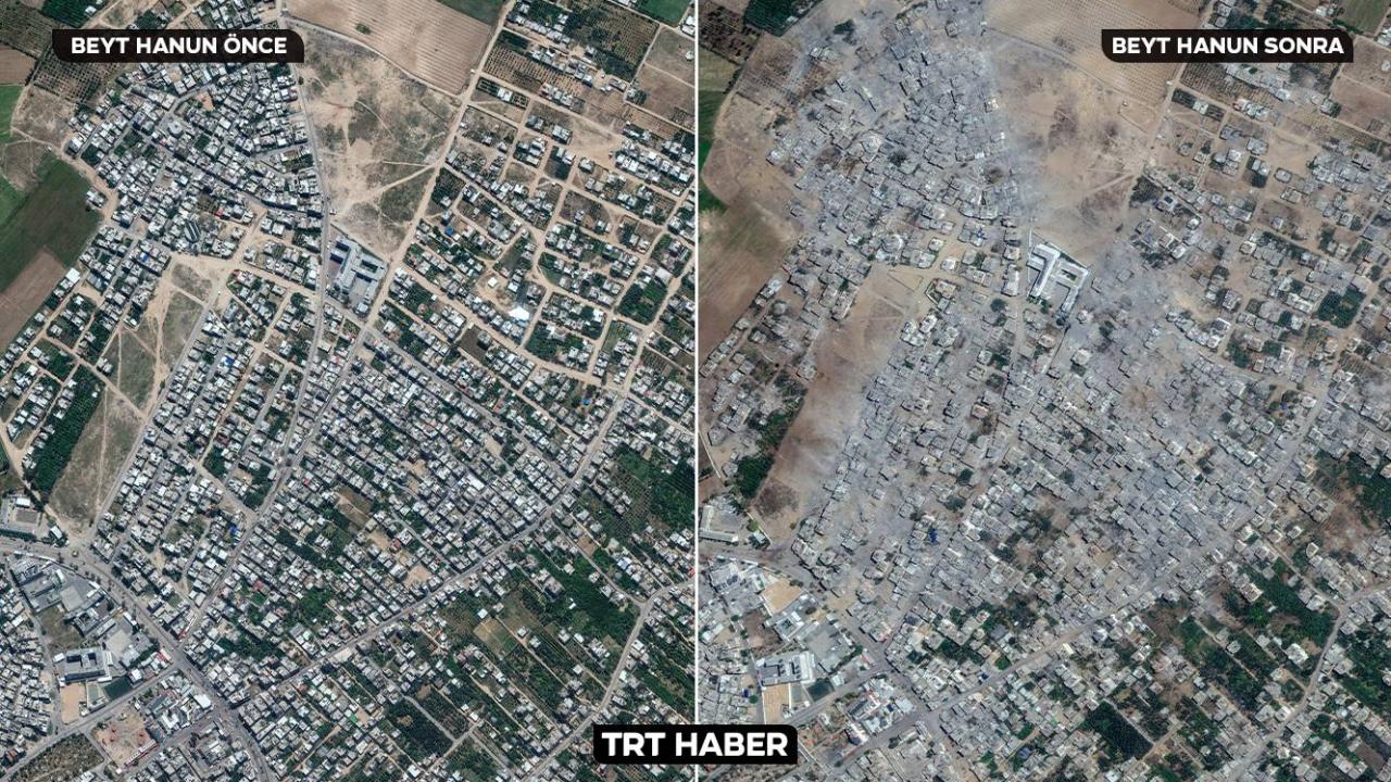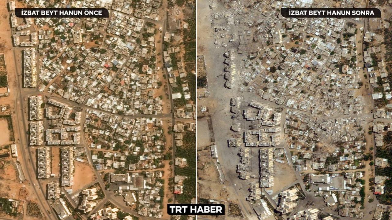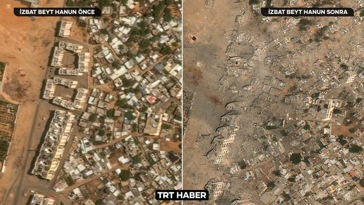 İsrail'in Gazze Şeridi'ne saldırılarıyla oluşan yıkım uydu fotoğraflarına yansıdı. Bölgenin kuzeyindeki yerleşim yerlerinin durumu eski fotoğraflarla karşılaştırıldı, saldırının çapı daha net ortaya çıktı...