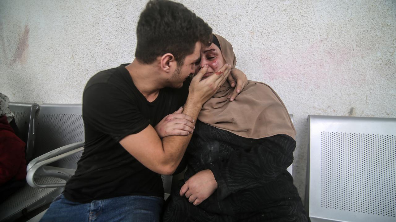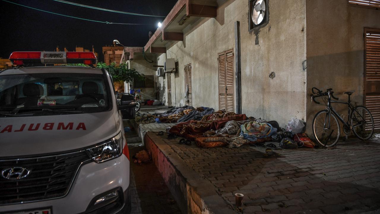 Gazze`nin Han Yunus kentine düzenlenen saldırılar sonucu evleri yıkılan Filistinliler, Nasır Hastanesi avlusunda kalmaya başladı.