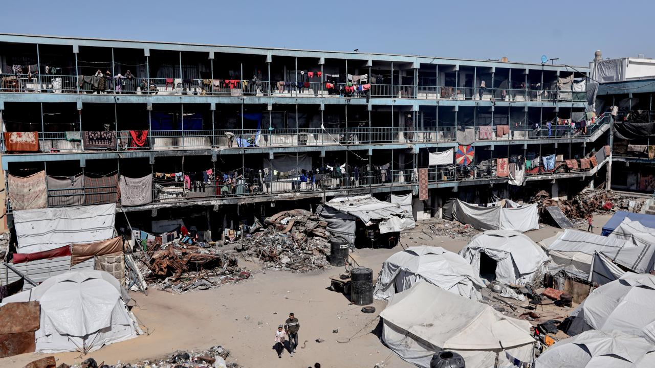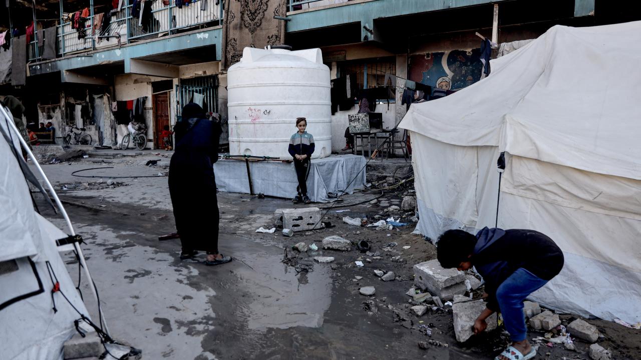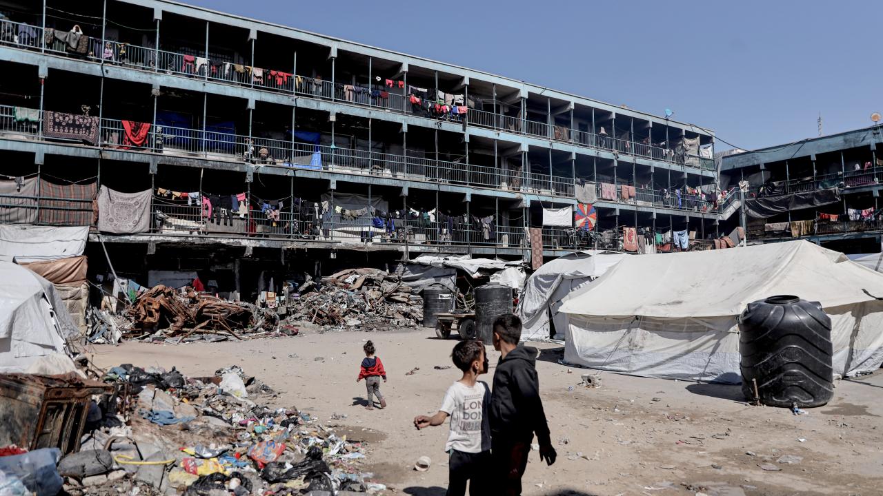 Gazze'nin kuzeyindeki Cibaliye Mülteci Kampı'nda, Birleşmiş Milletler Filistinli Mültecilere Yardım ve Bayındırlık Ajansı'na (UNRWA) ait bir okula sığınan Filistinliler, en temel insani ihtiyaçlardan yoksun şekilde yaşam mücadelesi veriyor.