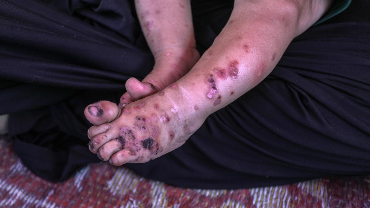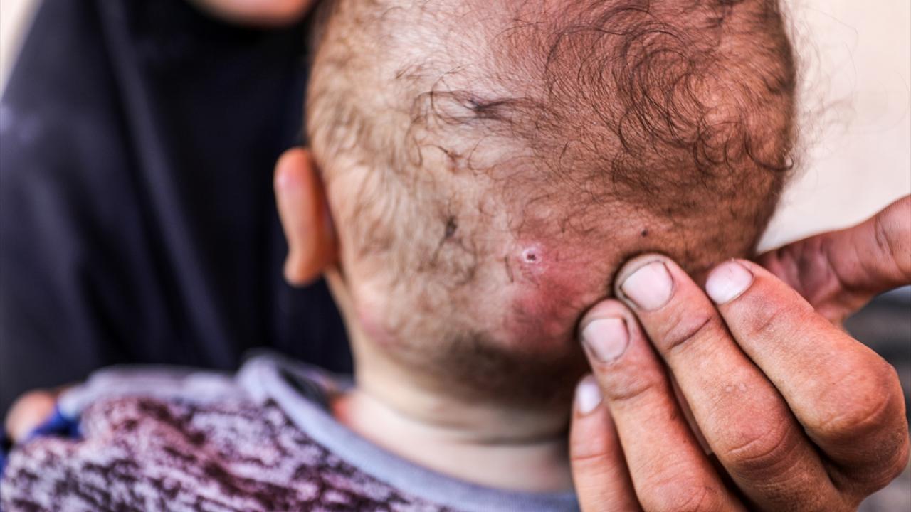 Gazze’nin kuzeyindeki Beyt Hanun’dan göç ederek güneydeki El-Aksa Üniversitesi binasına sığınan, 5 çocuk annesi Filistinli mülteci Ümmü Muhammed el-Mısri, 10 aylık bebeği Ramazan el-Mısri’nin kan yoluyla bulaşan bakteriyel bir deri hastalığıyla mücadele ettiğini söyledi.