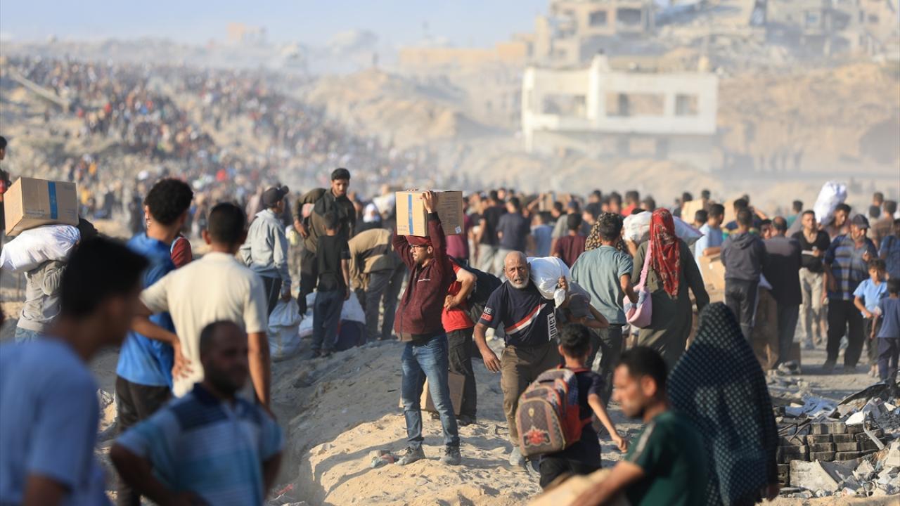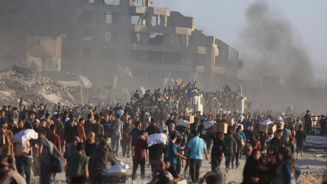 Gazze kentinin kuzeyindeki açlık çeken binlerce Filistinli, gıda kolileri alabilmek için ABD ve İsrail güdümündeki "Gazze İnsani Yardım Vakfı" kanalıyla kurulan sözde insani yardım dağıtım merkezlerine akın etti.