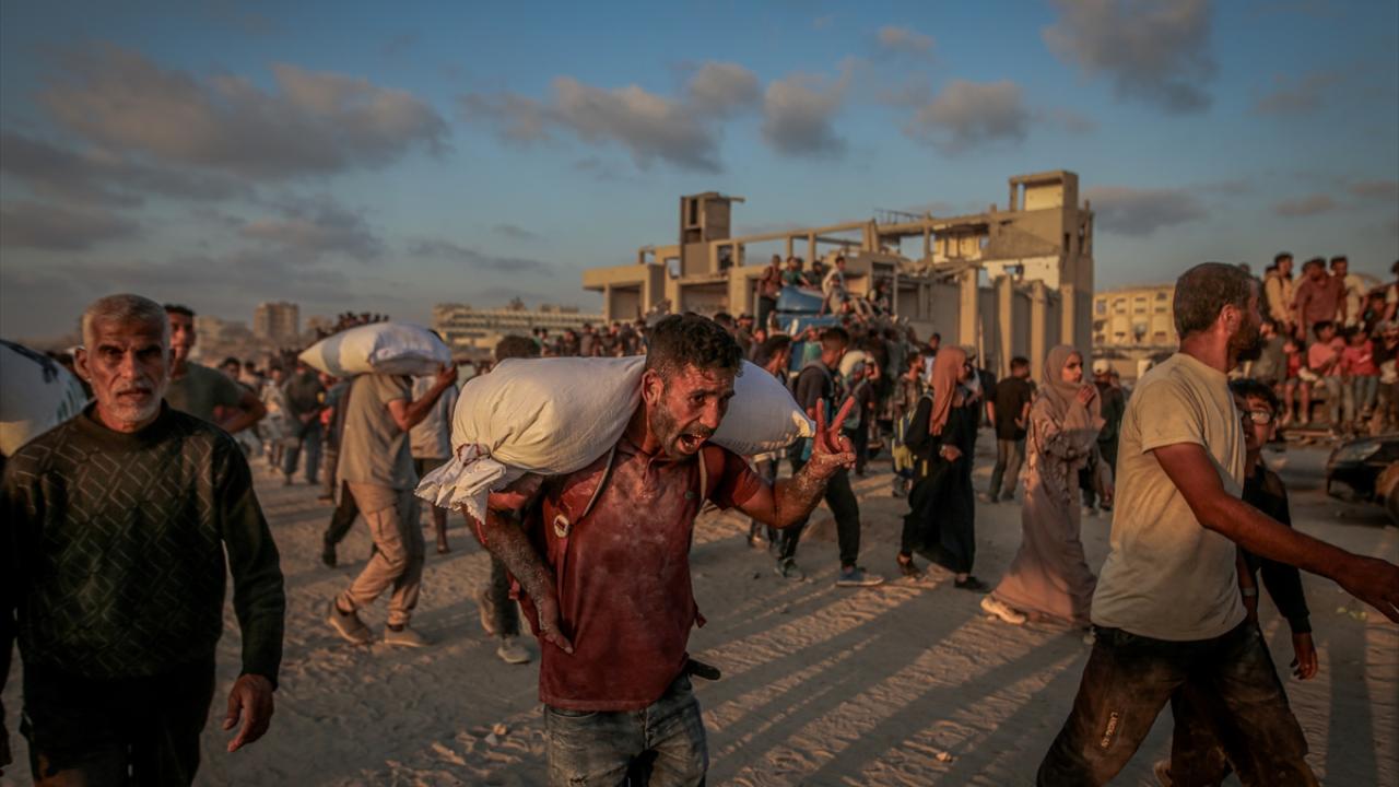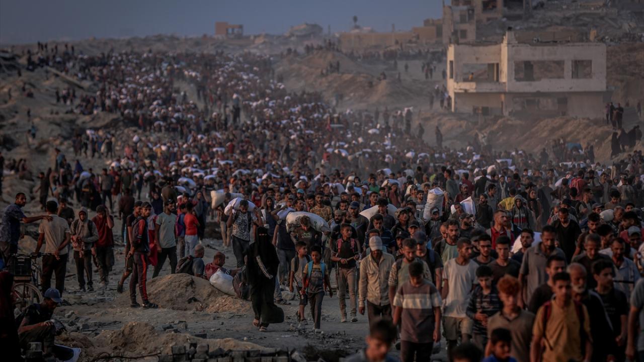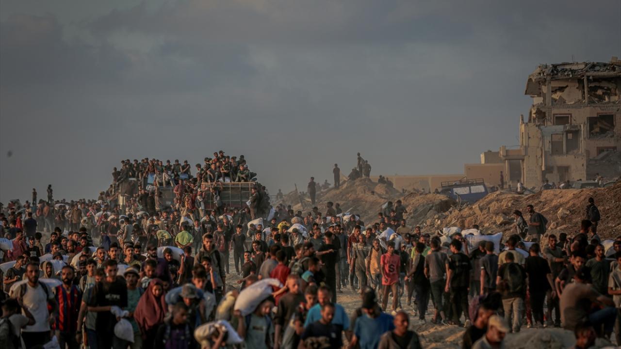 Gazze kentinin kuzeyindeki açlık çeken binlerce Filistinli, gıda kolileri alabilmek için Sudaniyye bölgesindeki Sahil Yolu’nda ABD ve İsrail güdümündeki "Gazze İnsani Yardım Vakfı" kanalıyla kurulan sözde insani yardım dağıtım merkezlerine akın etti.