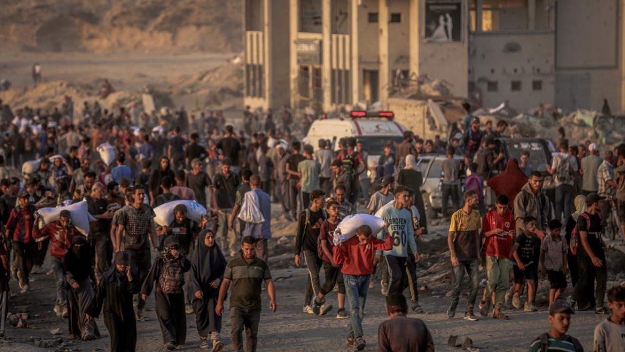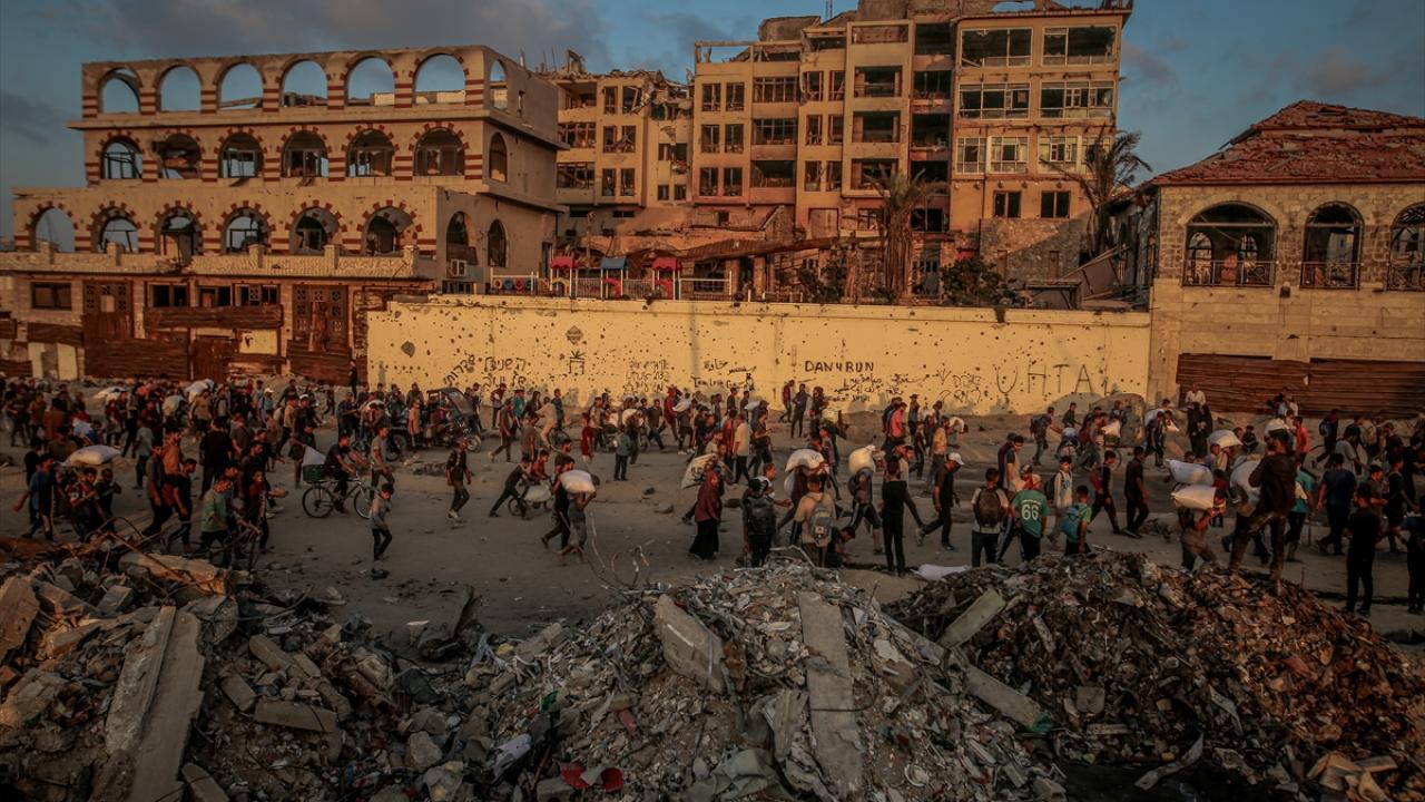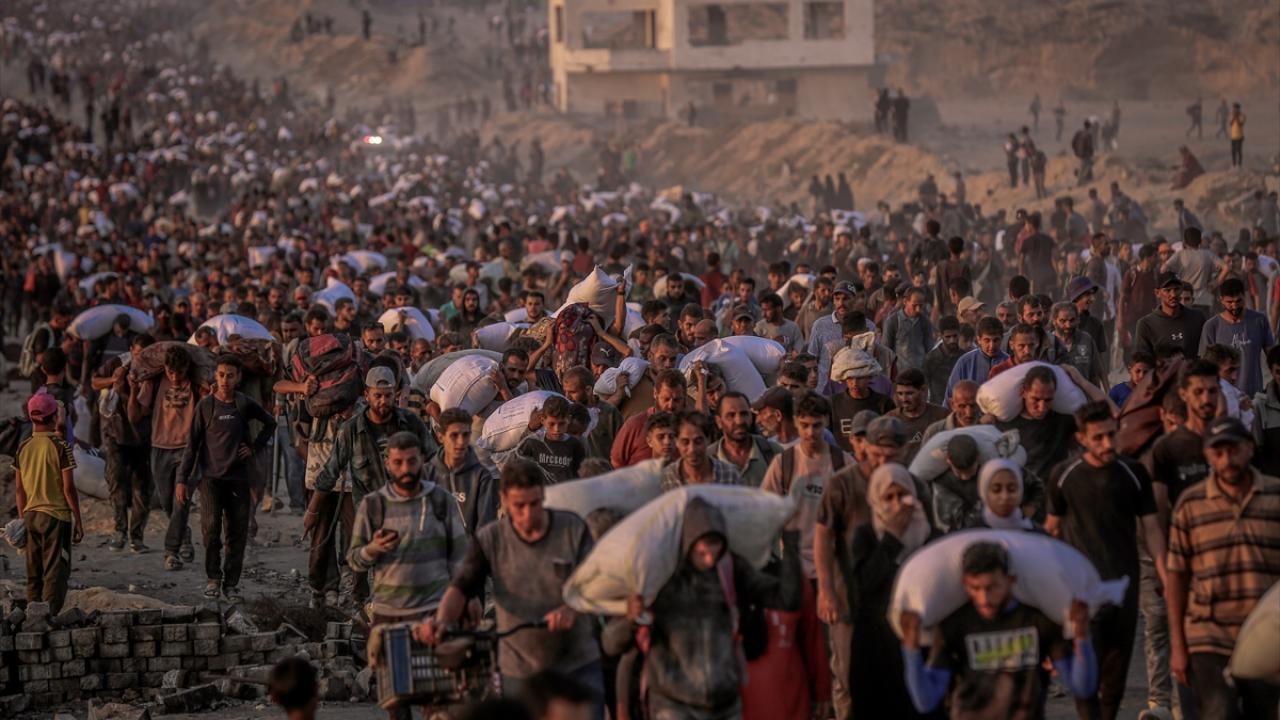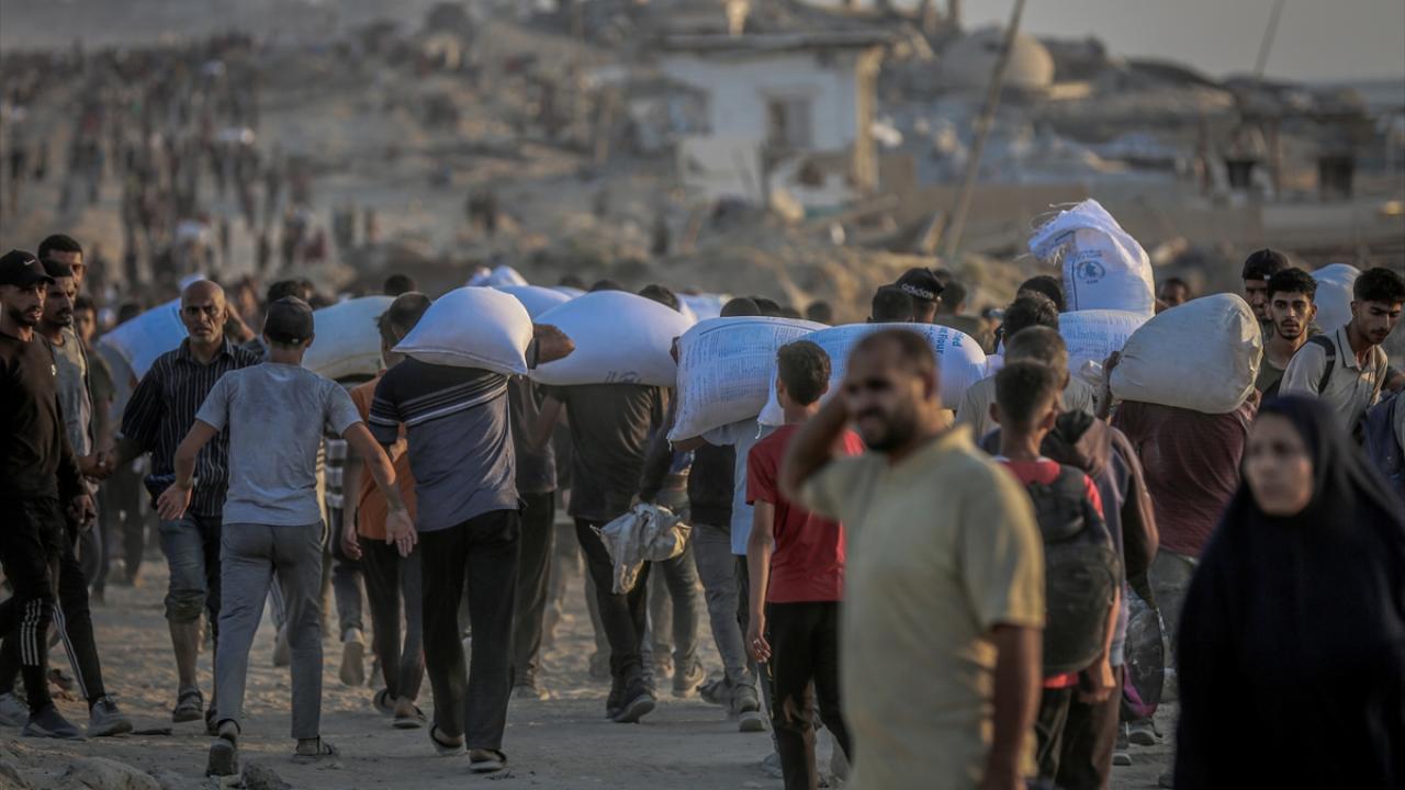 Gazze kentinin kuzeyindeki açlık çeken binlerce Filistinli, gıda kolileri alabilmek için Sudaniyye bölgesindeki Sahil Yolu’nda ABD ve İsrail güdümündeki "Gazze İnsani Yardım Vakfı" kanalıyla kurulan sözde insani yardım dağıtım merkezlerine akın etti.