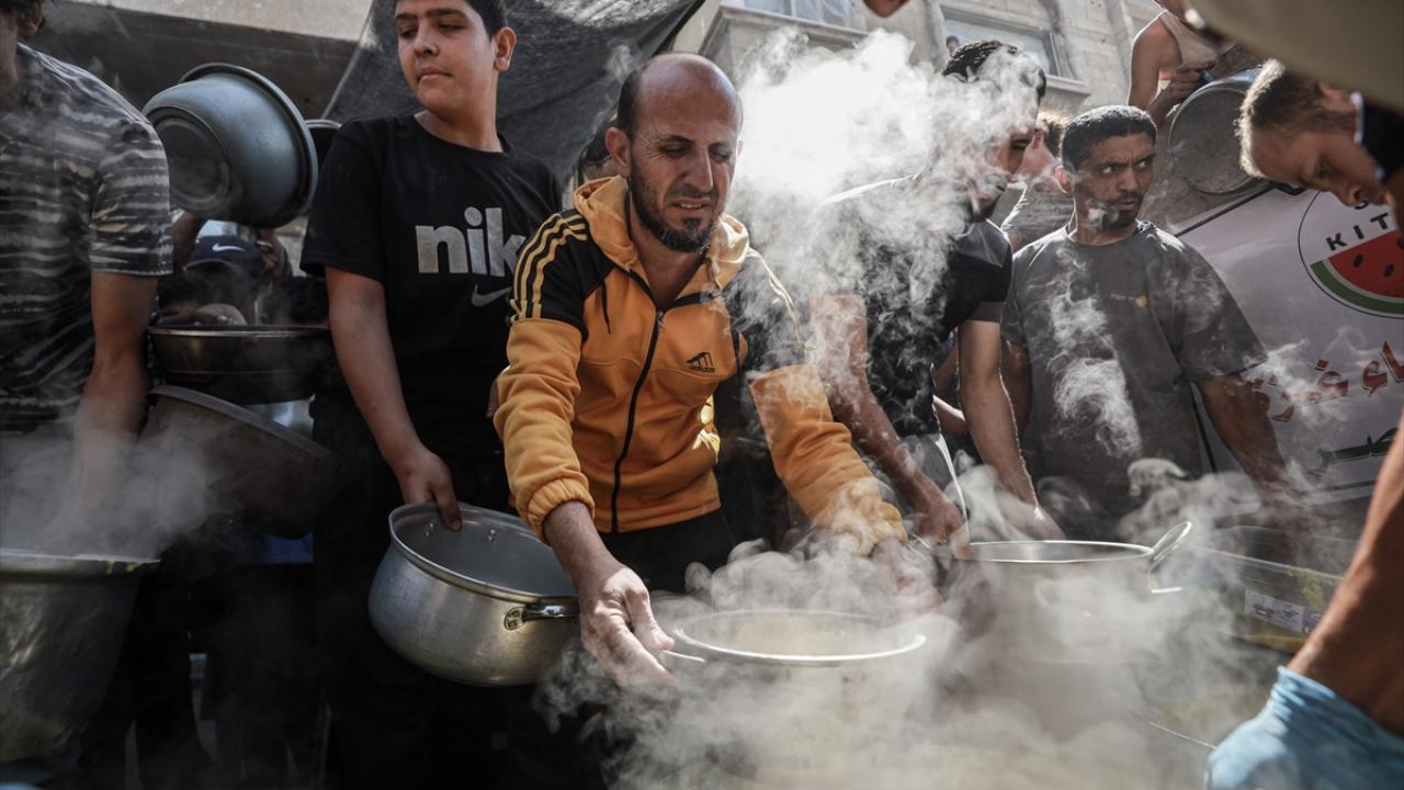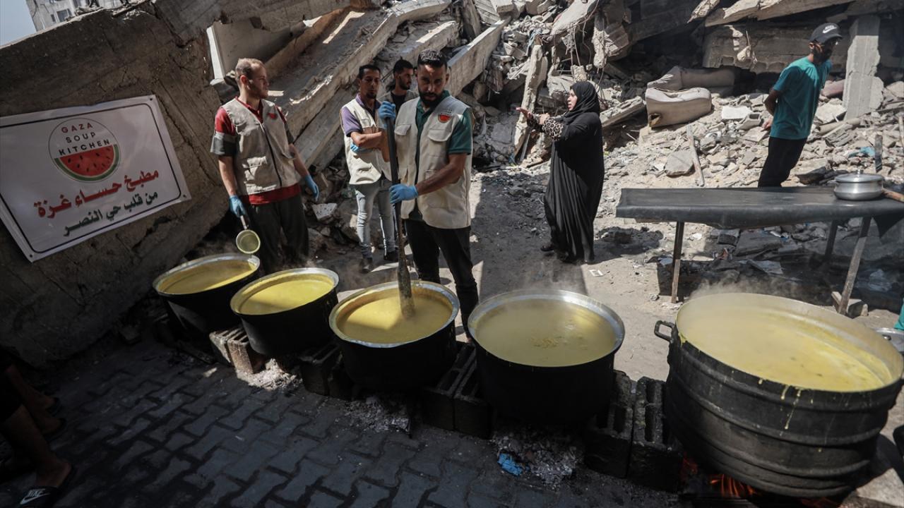 İsrail'in Gazze'ye yönelik aralıksız devam eden saldırıları ve ambargo nedeniyle açlıkla mücadele eden Filistinlilere, Nasır Mahallesi'nde sıcak yemek dağıtıldı.