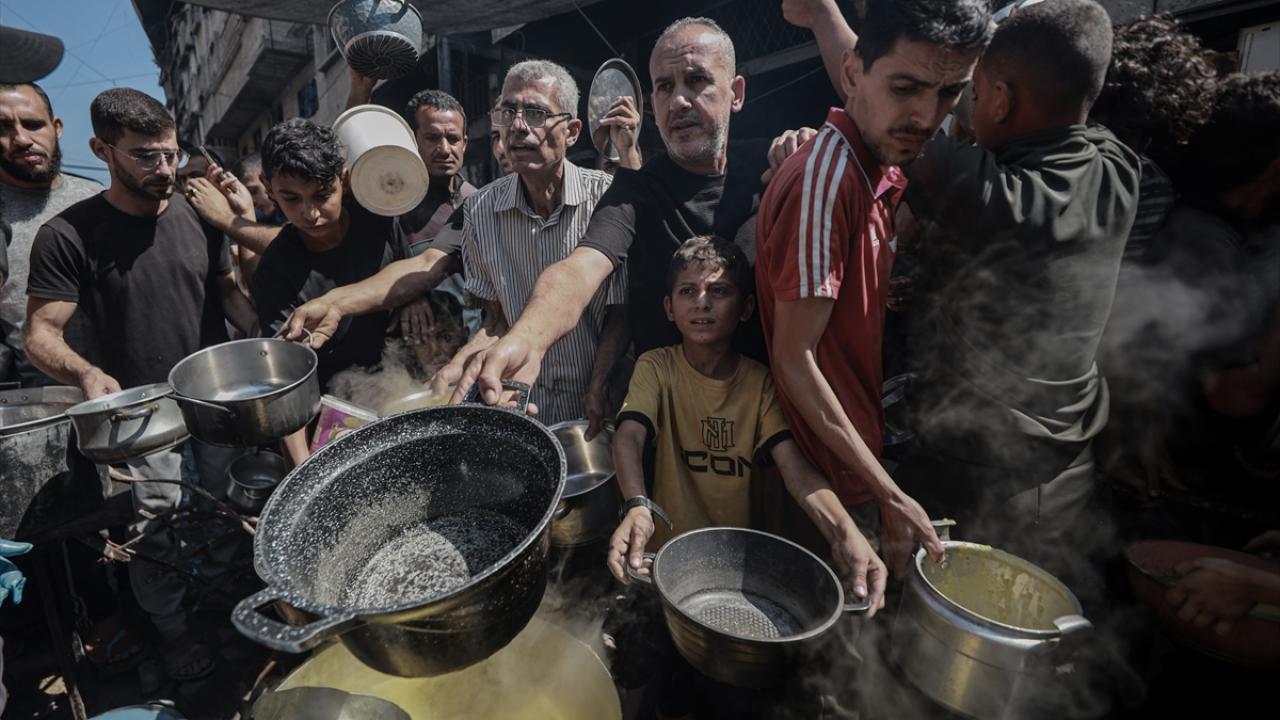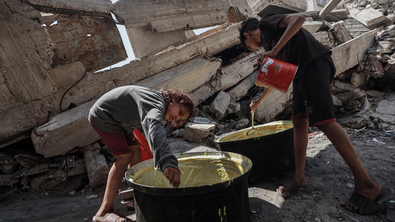 Gazze'de açlıkla mücadele eden Filistinlilere yemek dağıtıldı