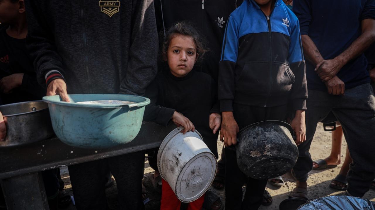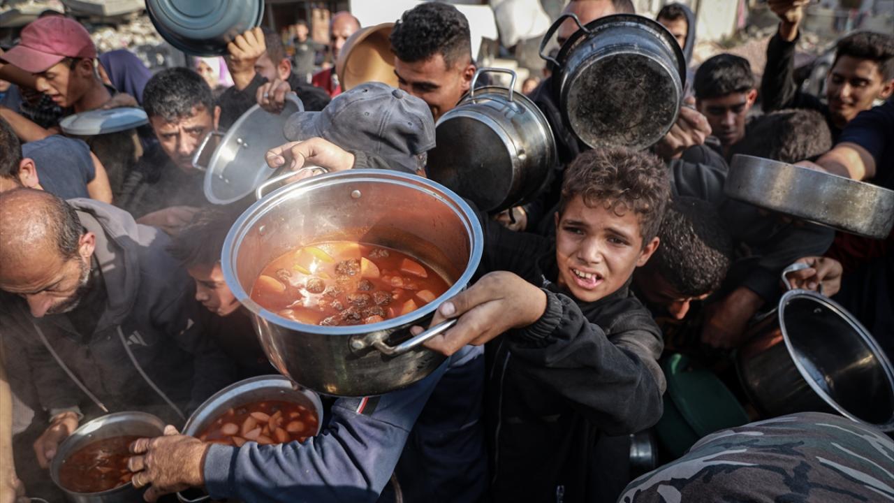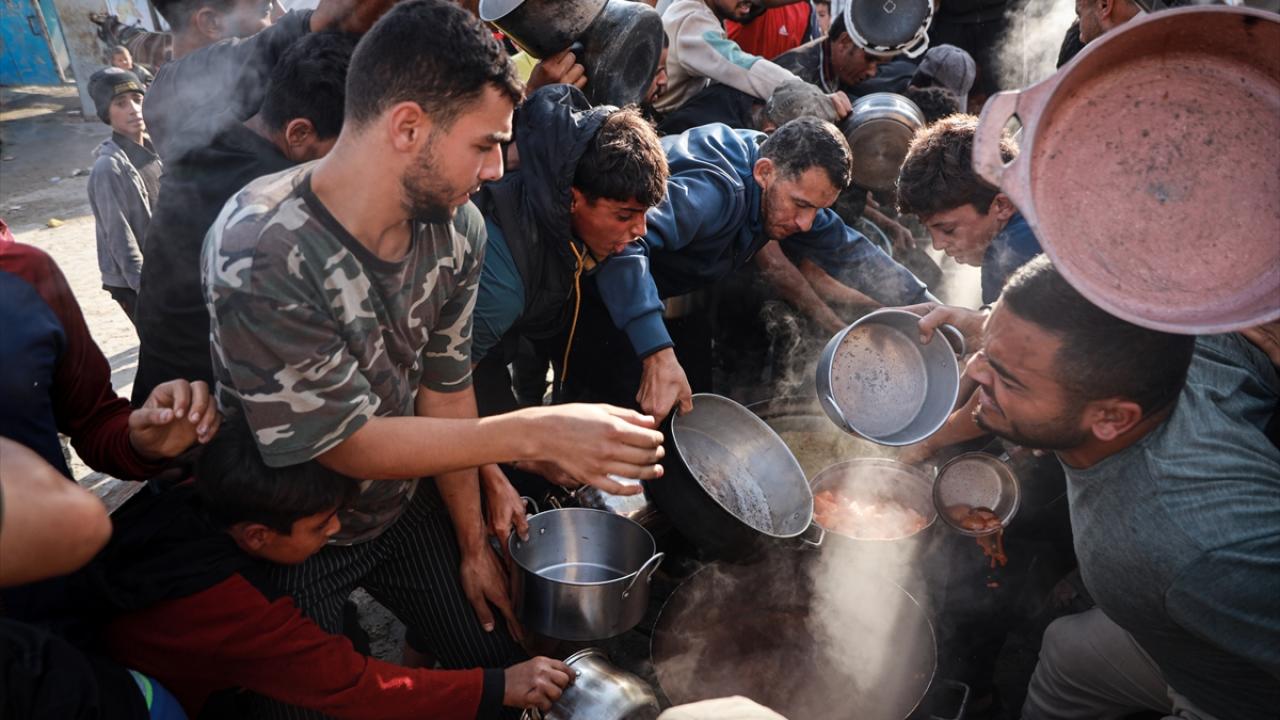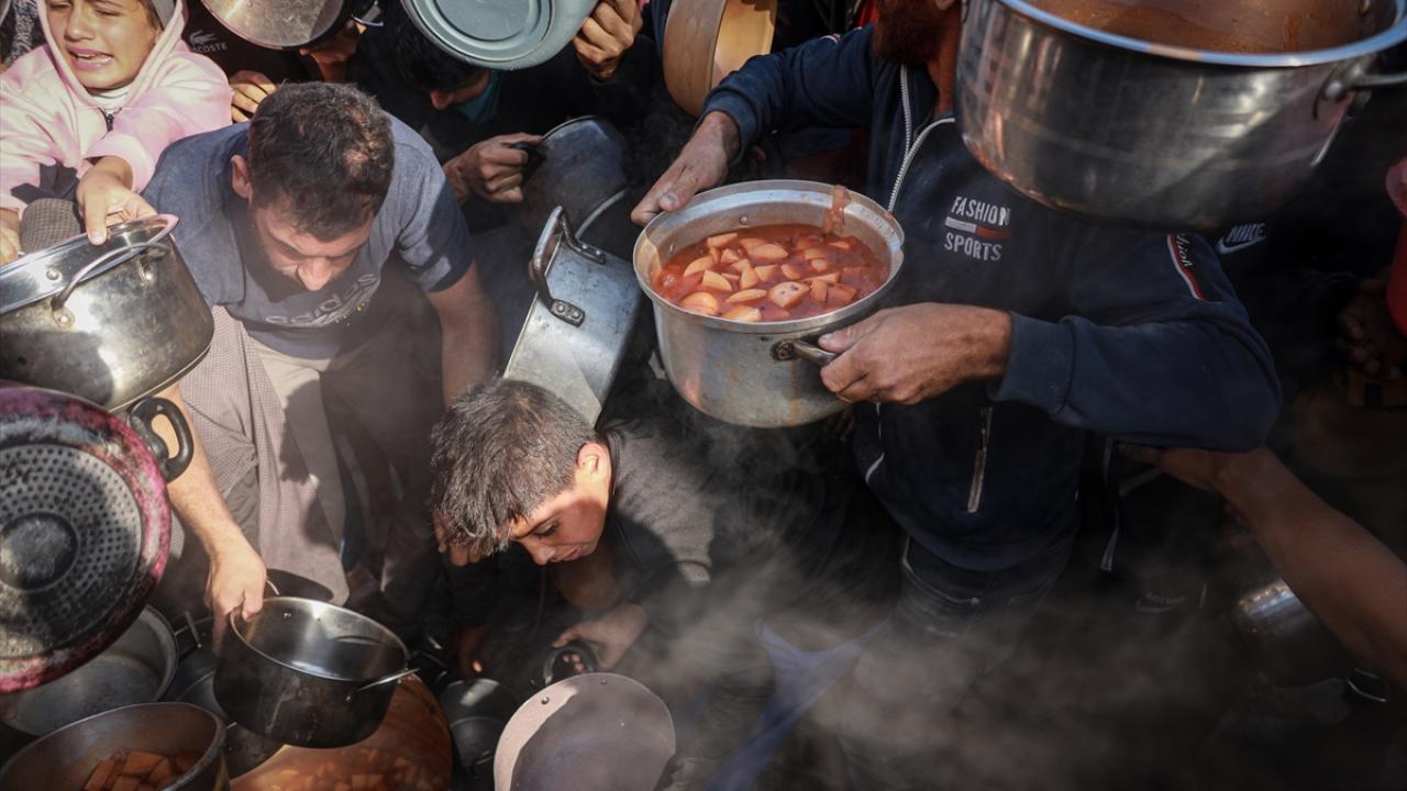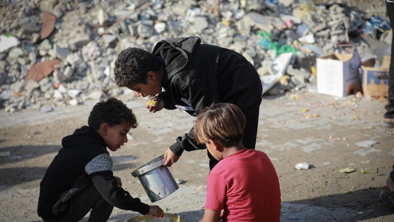 Gazze'de açlıkla mücadele eden Filistinlilere, yemek dağıtıldı