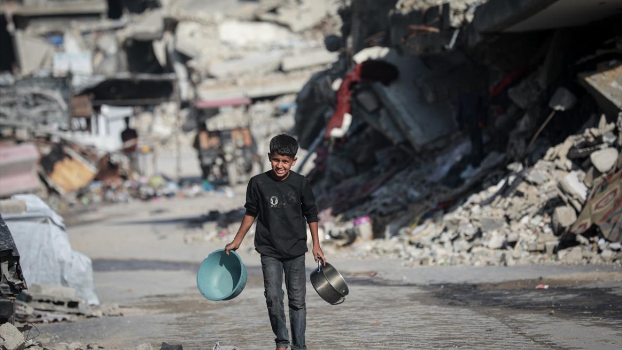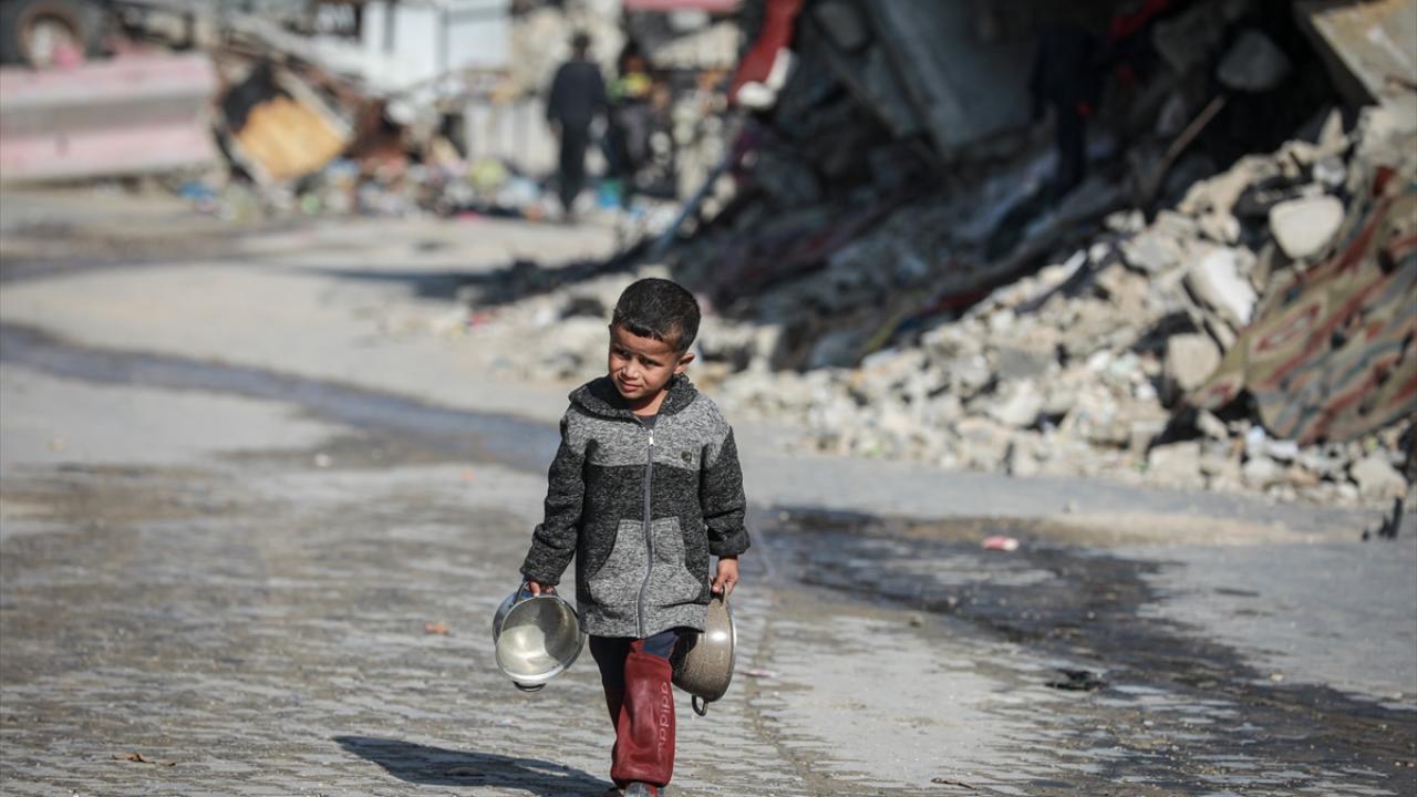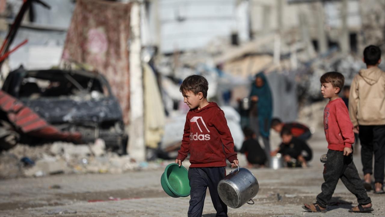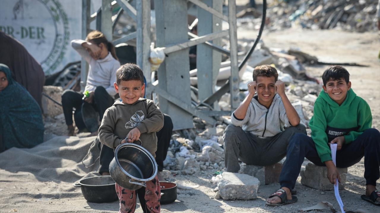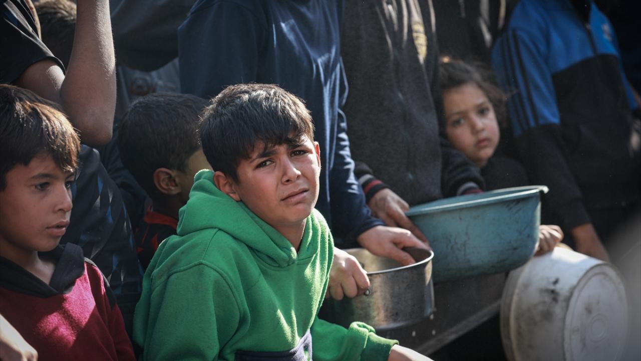 Gazze'de açlıkla mücadele eden Filistinlilere, yemek dağıtıldı