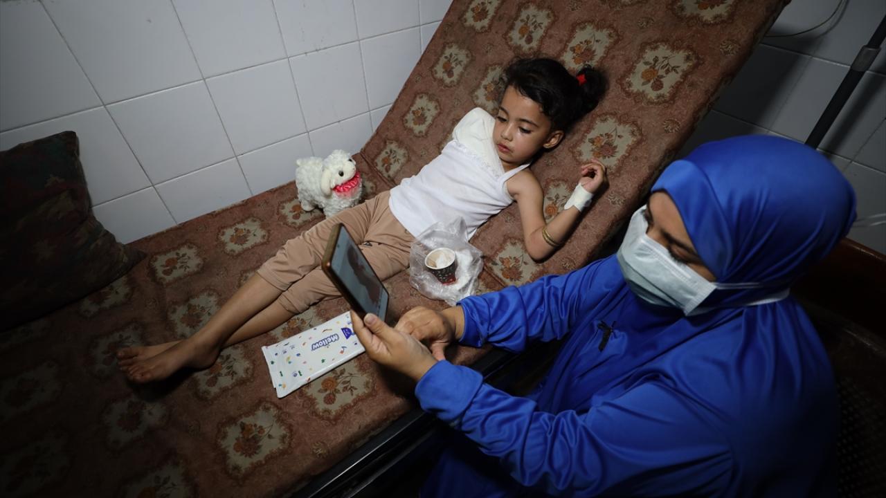 Annesiyle birlikte Gazze`nin doğusunda çadırda yaşayan küçük Talaa, yakındaki bir binaya düzenlenen bombardımanda yaralandıktan sonra Baptist Hastanesi`nde tedavi altına alındı.
