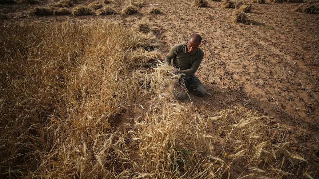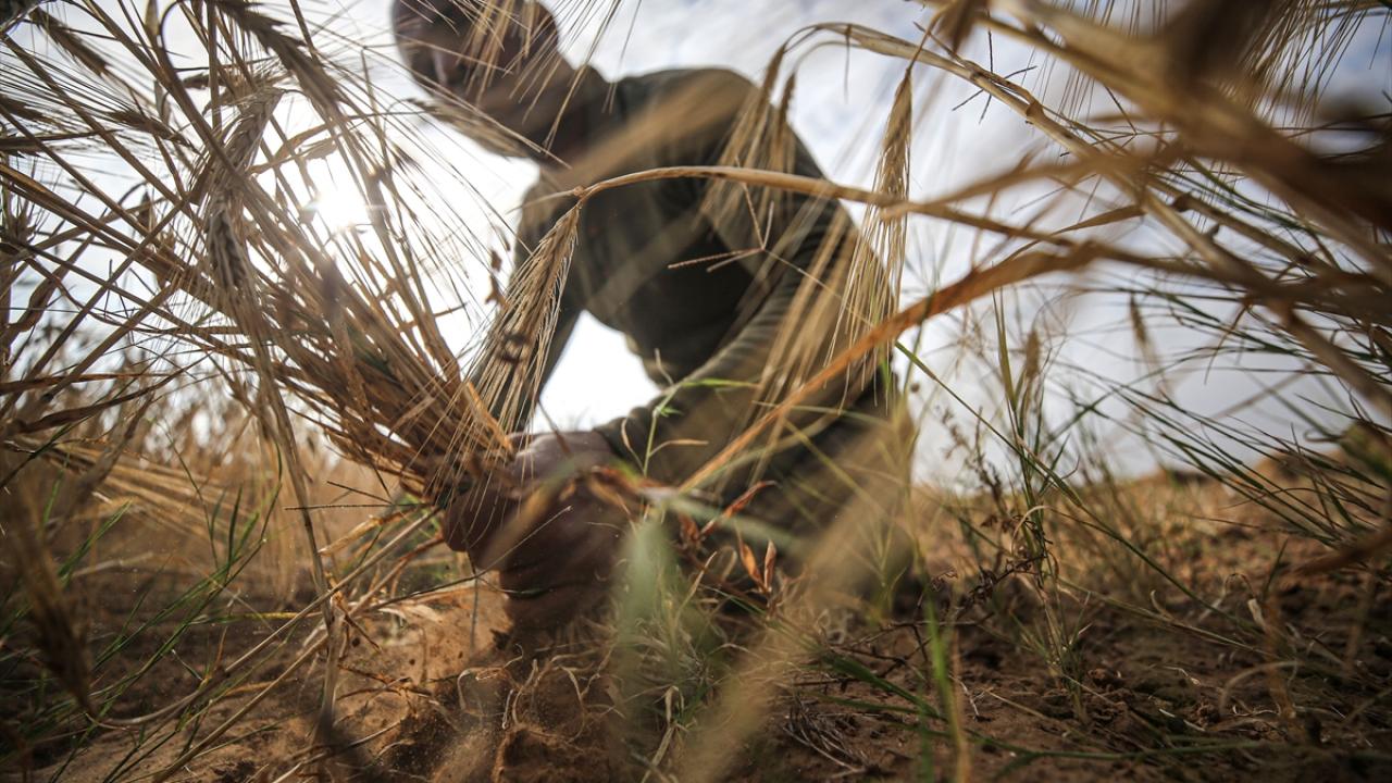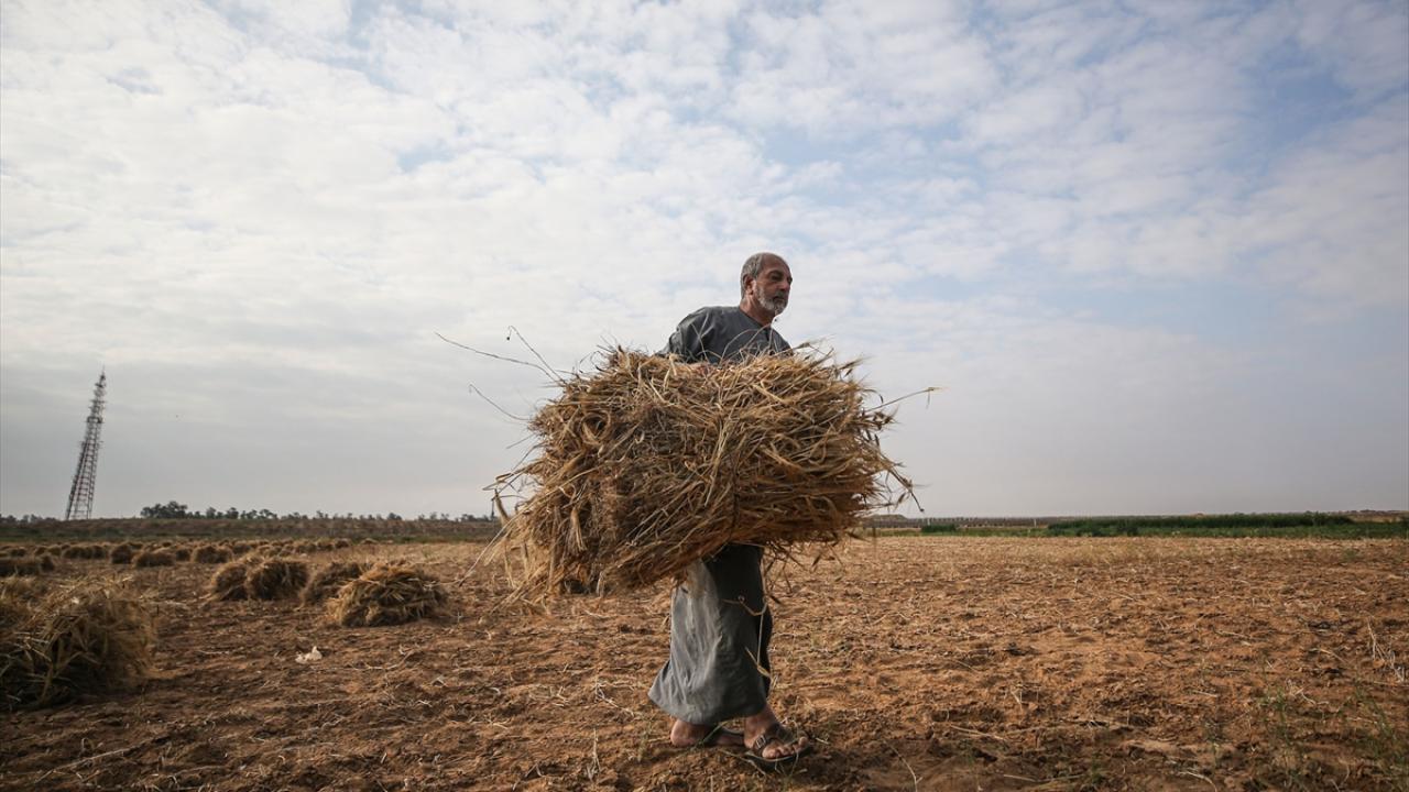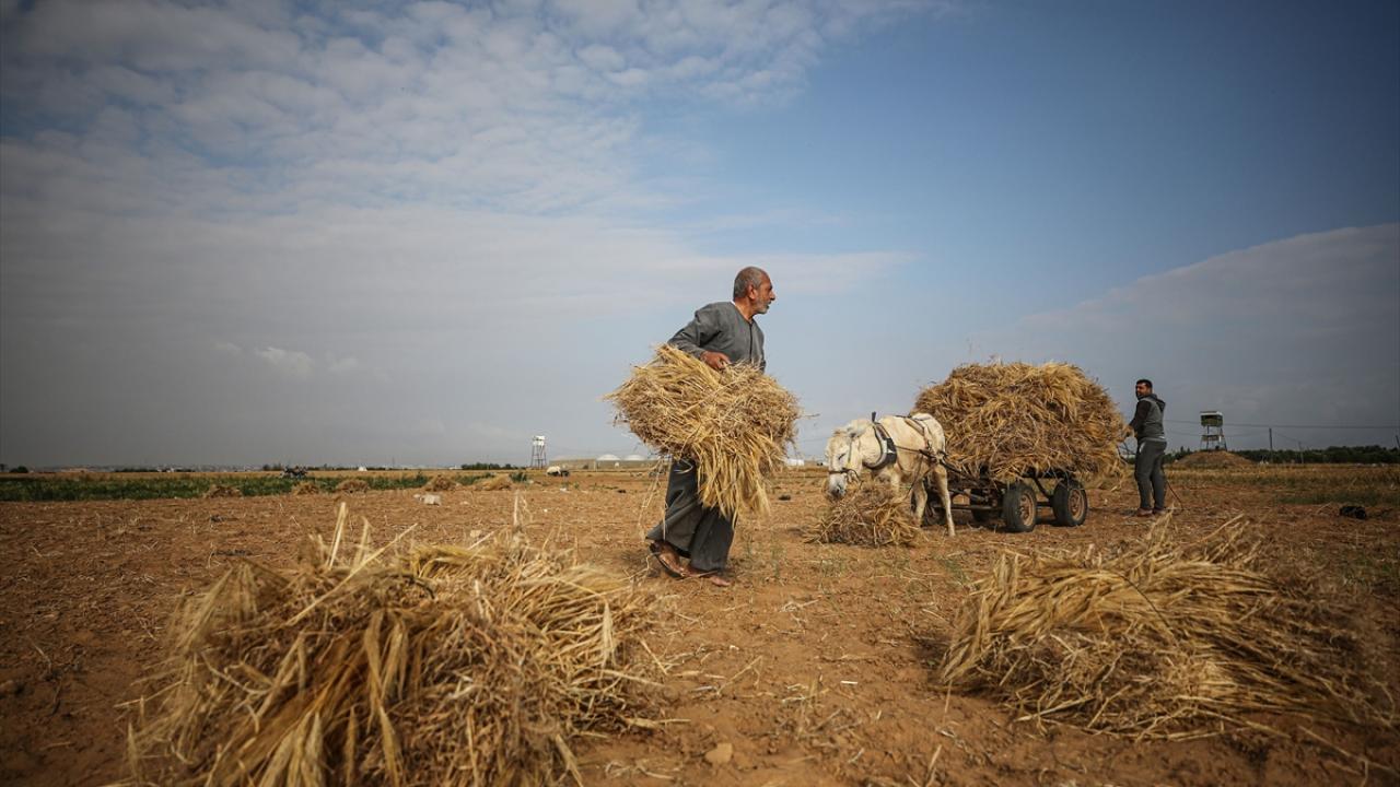Filistinli çiftçiler, devam eden İsrail ambargosunun getirdiği zor şartlar altında geleneksel yöntemlerle ilk hasadını topladı.