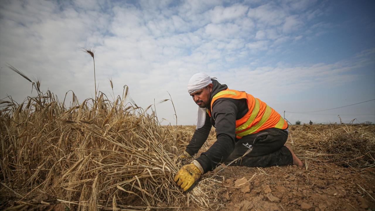 Gazze Şeridi'nin Han Yunus kentindeki Filistinliler, arpa hasadına başladı.