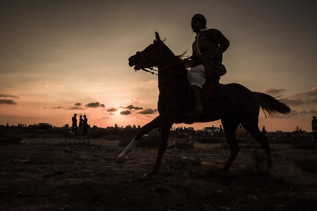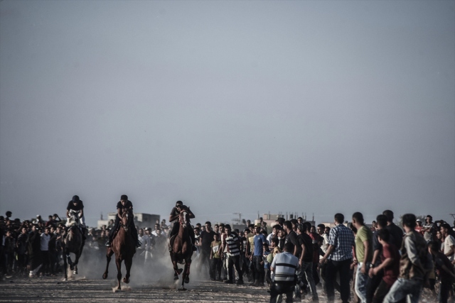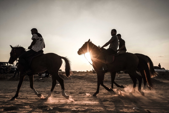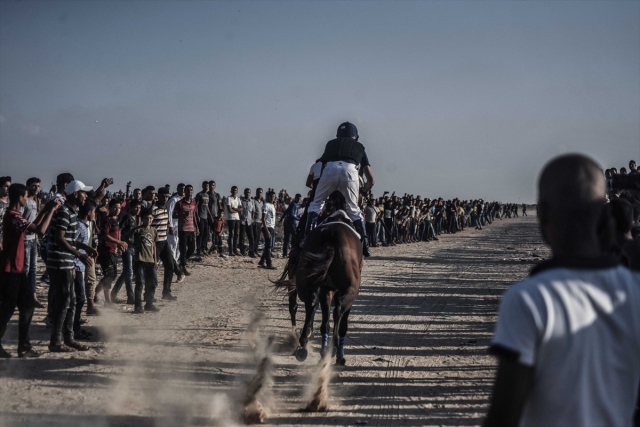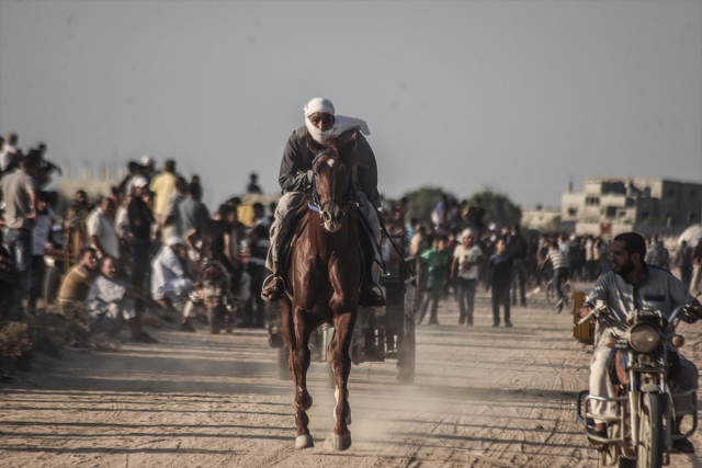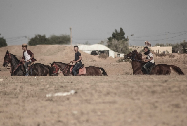 Gazze'nin güneyindeki Refah kentinde, farklı yıllarda defalarca İsrail saldırılarına maruz kalarak tamamen yıkılan Uluslararası Gazze Havalimanı'nın pistinde at yarışı düzenlendi.