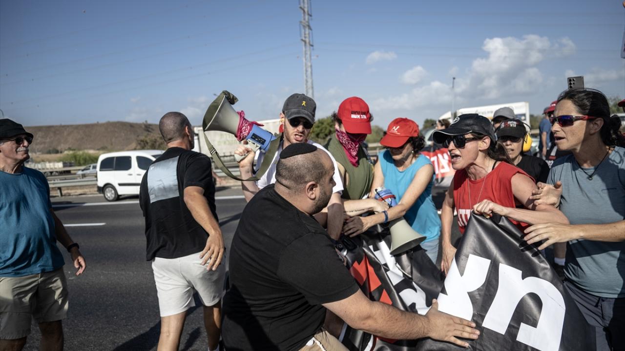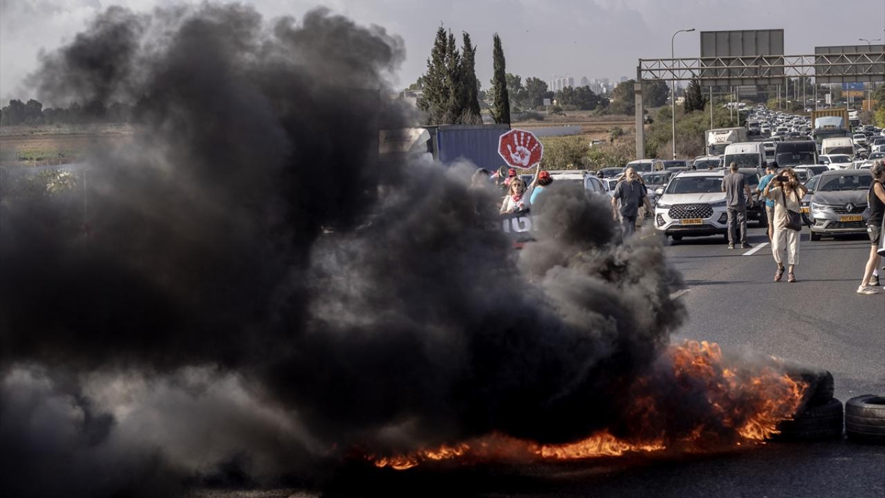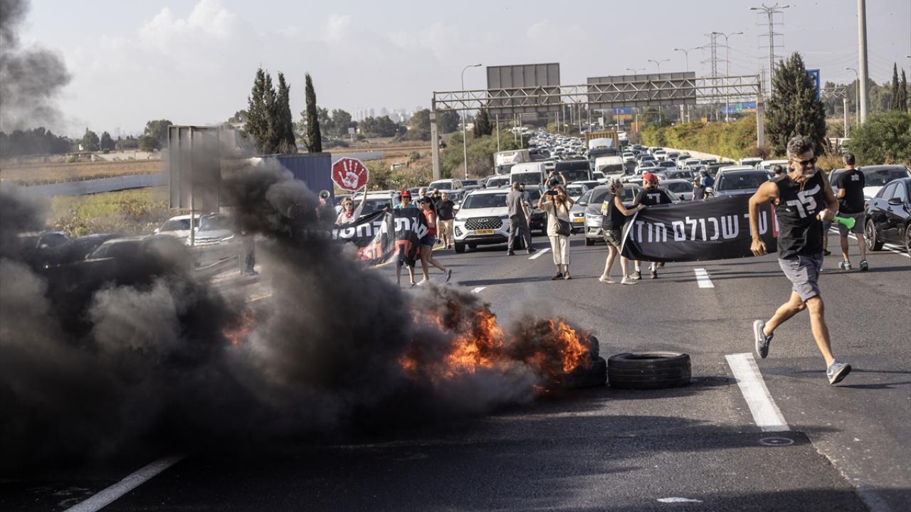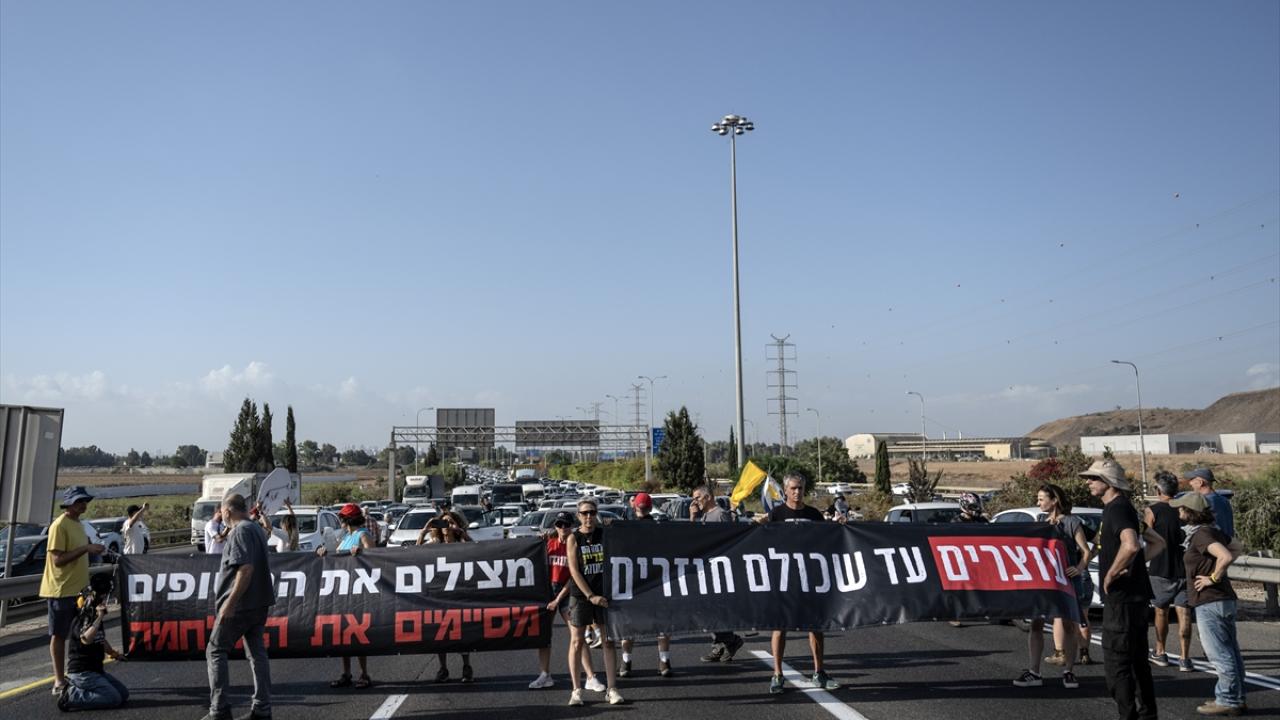 Göstericiler, ellerinde taşıdıkları pankartlarla Tel Aviv`deki 4. Cadde`yi trafiğe kapatarak Gazze’de bulunan İsraillilerin serbest bırakılması için anlaşmaya varılmasını talep etti.