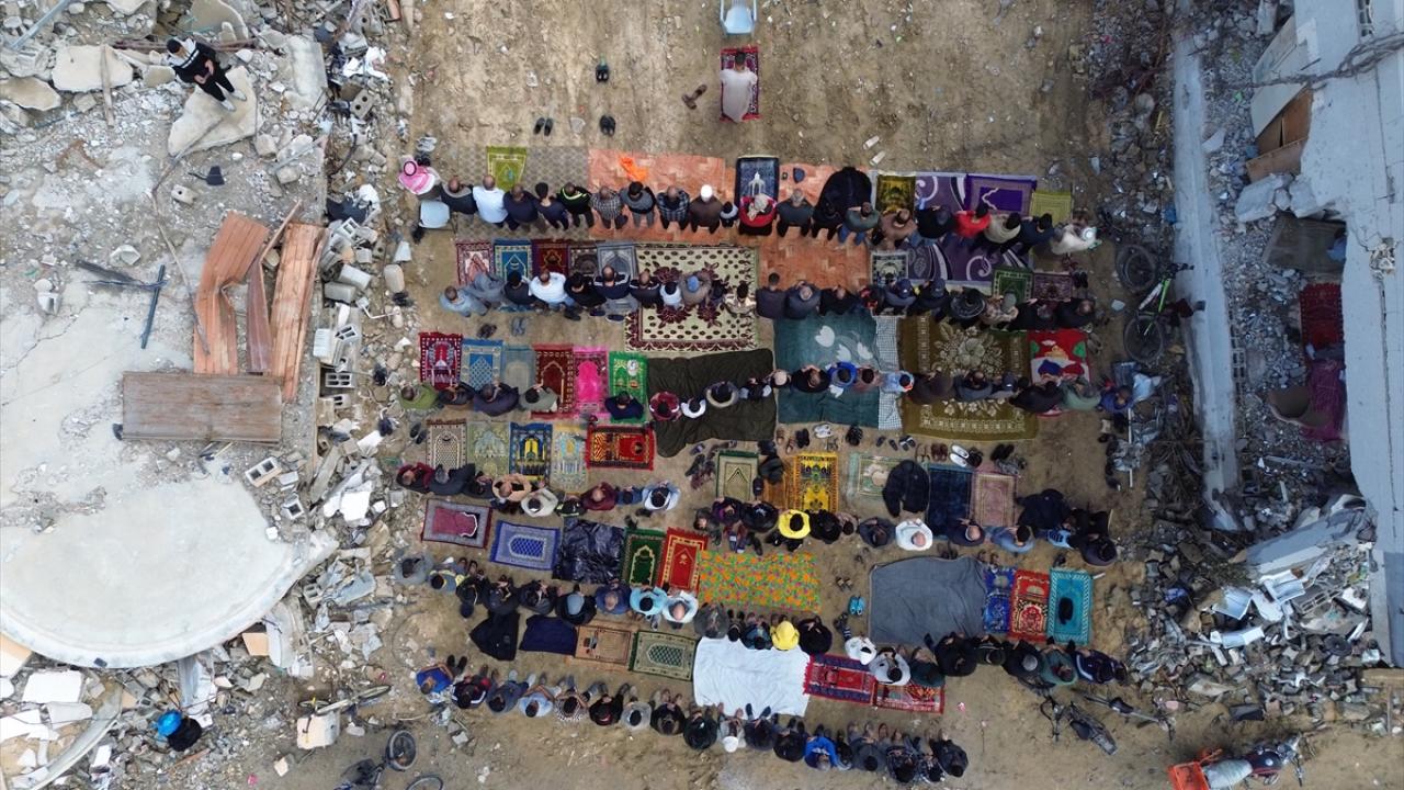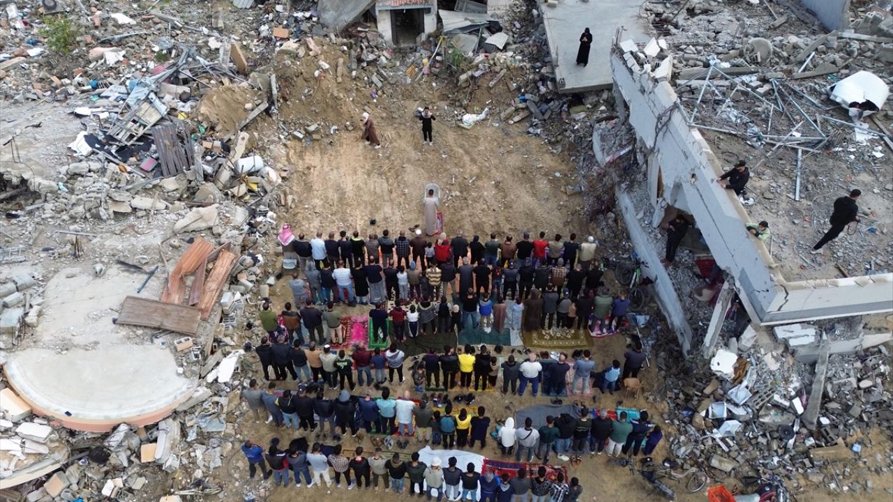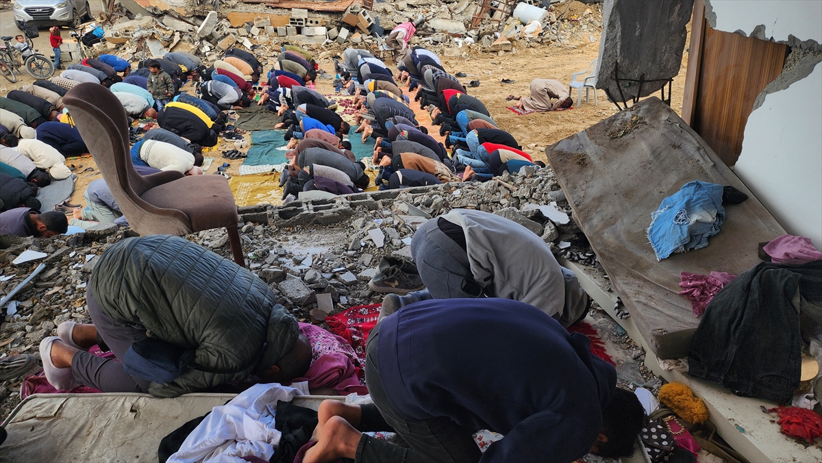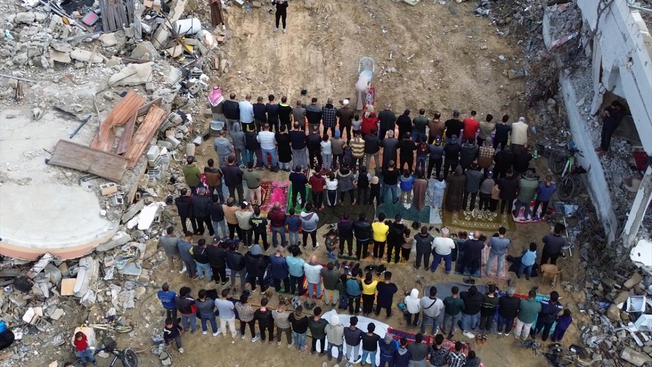 Filistinlilerin bir kısmı, cuma namazlarını İsrail saldırıları nedeniyle yıkılan cami ve mescitlerin enkazı üzerinde eda etti.