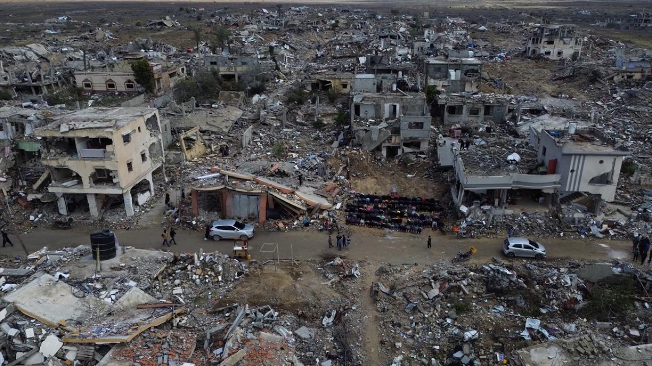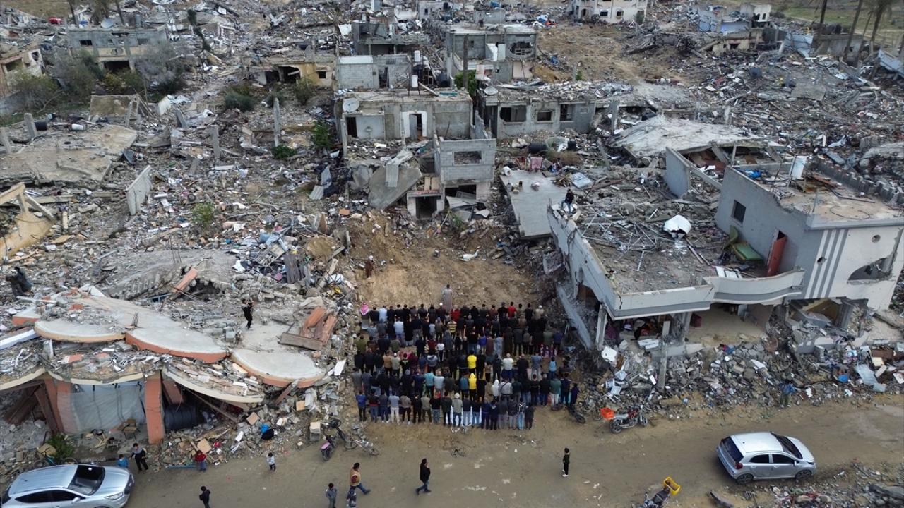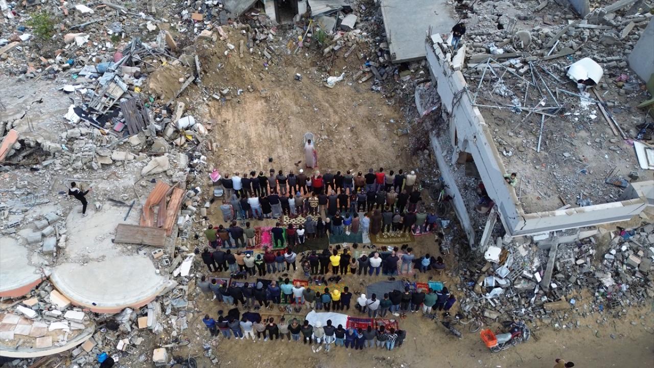 Filistinlilerin bir kısmı, cuma namazlarını İsrail saldırıları nedeniyle yıkılan cami ve mescitlerin enkazı üzerinde eda etti.