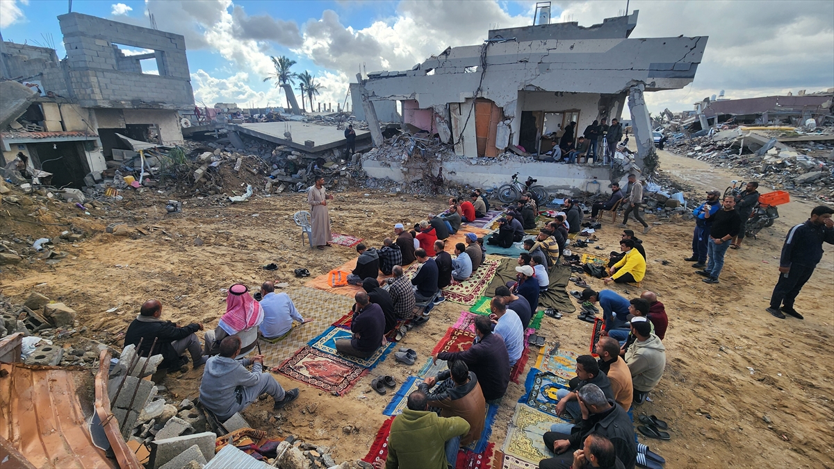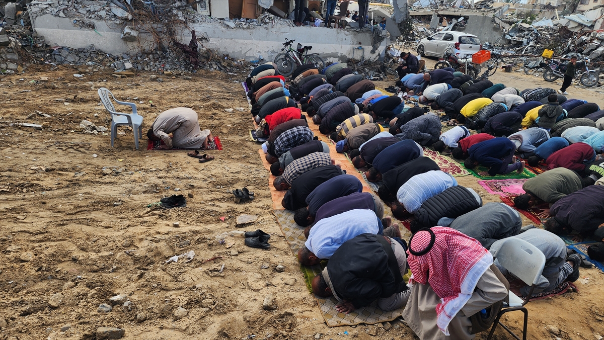 Gazze`de neredeyse sağlam cami veya mescit kalmaması nedeniyle Filistinlilerin bir kısmı da stadyum veya caddelerde cuma namazını kıldı.