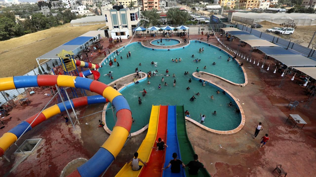 Ramazan bayramının son gününde Gazze'deki Filistinli aileler, kentteki aquaparkta eğlenerek bayram sevinci yaşadı.