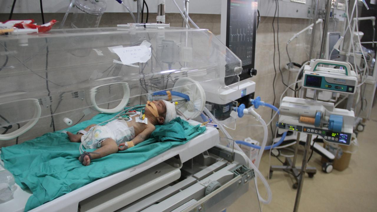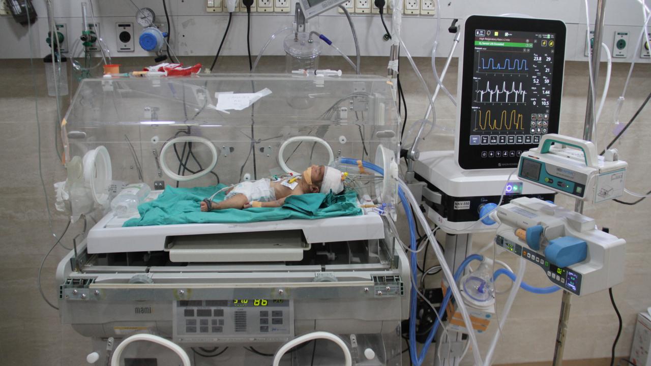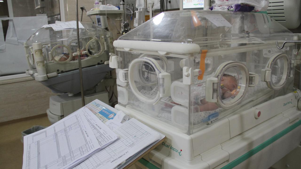 Yetersiz beslenme sorunu yaşayan yeni doğan bebekler, Beyt Lahya kentindeki Kamal Advan Hastanesi`nde kısıtlı imkanlarla tedavi görüyor.