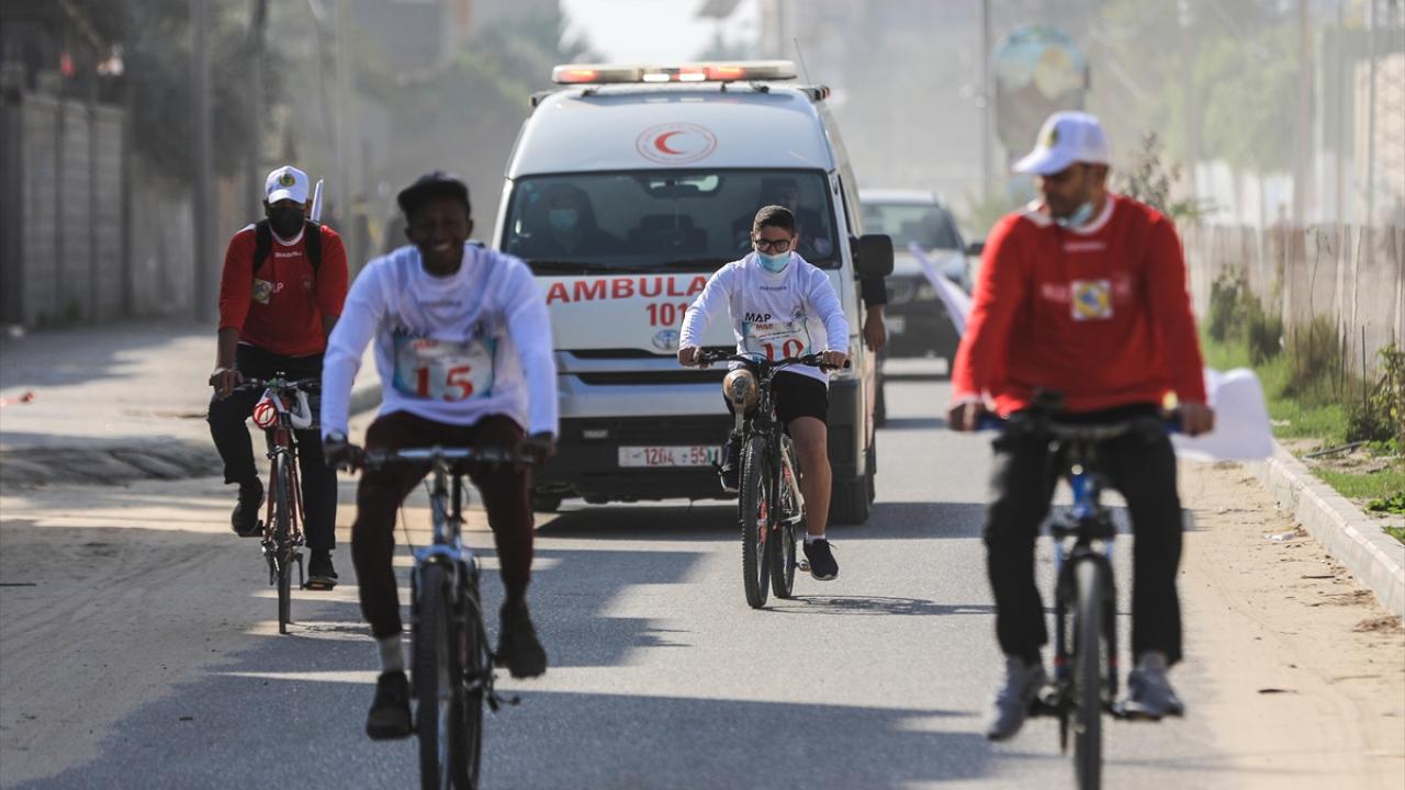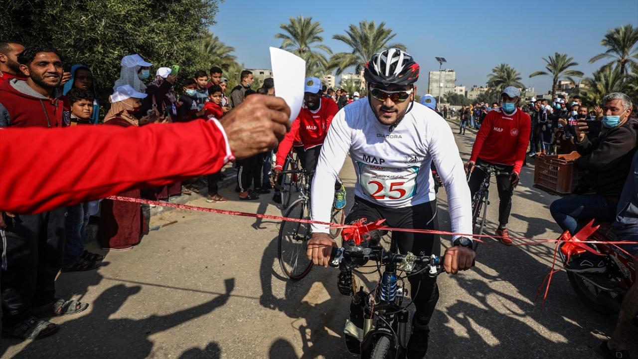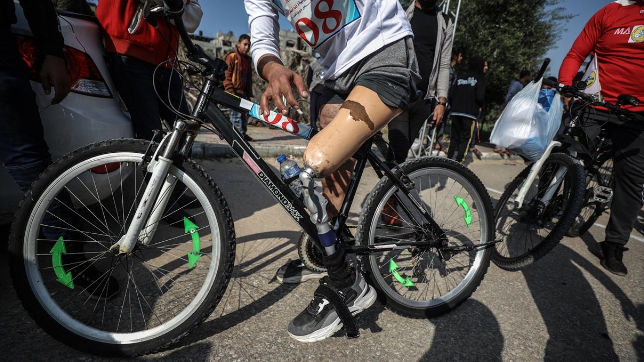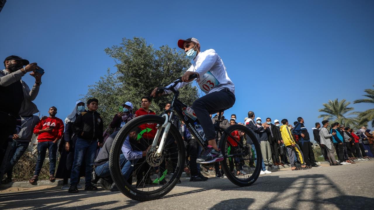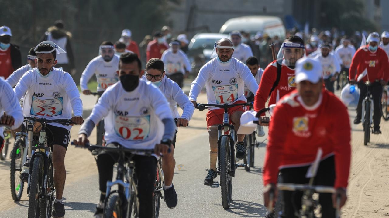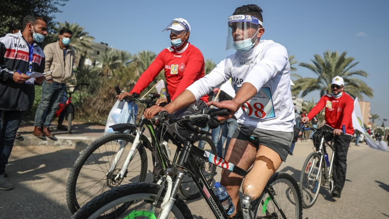 Rehabilitasyon ve Sosyal Eğitim Derneği Halkla İlişkiler Koordinatörü Mahmud eş-Şafii, "İsrail`in hava bombardımanı ve Gazze sınırındaki Büyük Dönüş Yürüyüşleri sırasında gerçekleştirdiği saldırılarda tek bacağını kaybeden bedensel engelli 26 Filistinlinin katılımıyla bu yarışmayı düzenledik." dedi