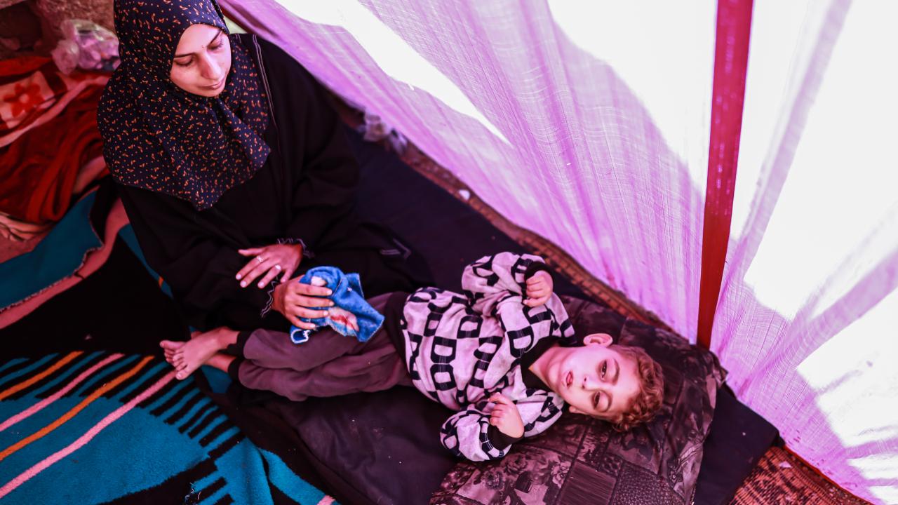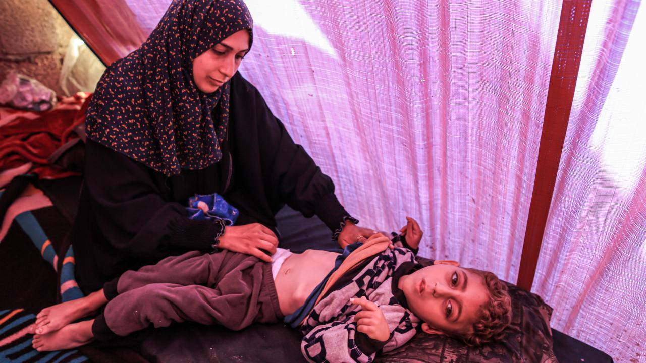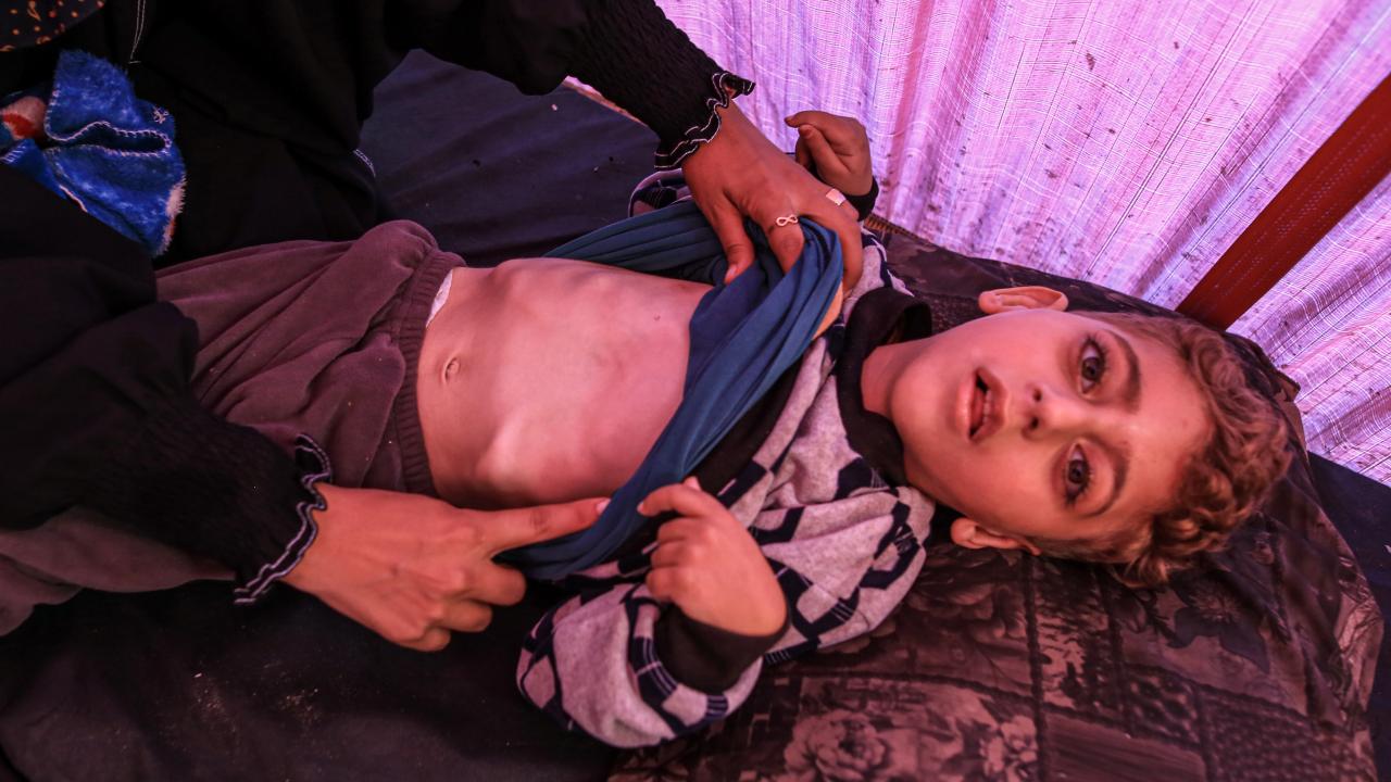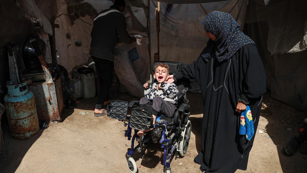 Ailesiyle birlikte Refah`ta bir çadırda yaşayan ve giderek yürüme kabiliyetini kaybetmeye başlayan Aqad`ta aynı zamanda beslenme yetersizliği belirtileri çıkmaya başladı.