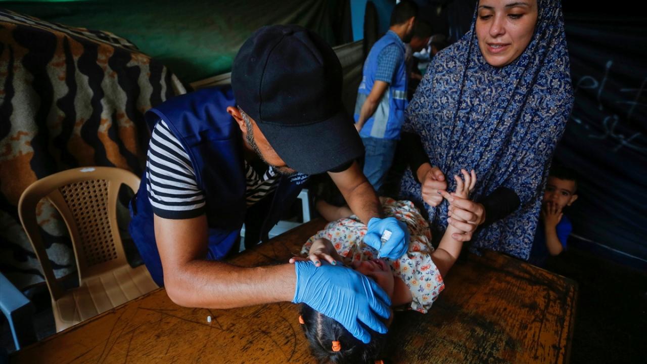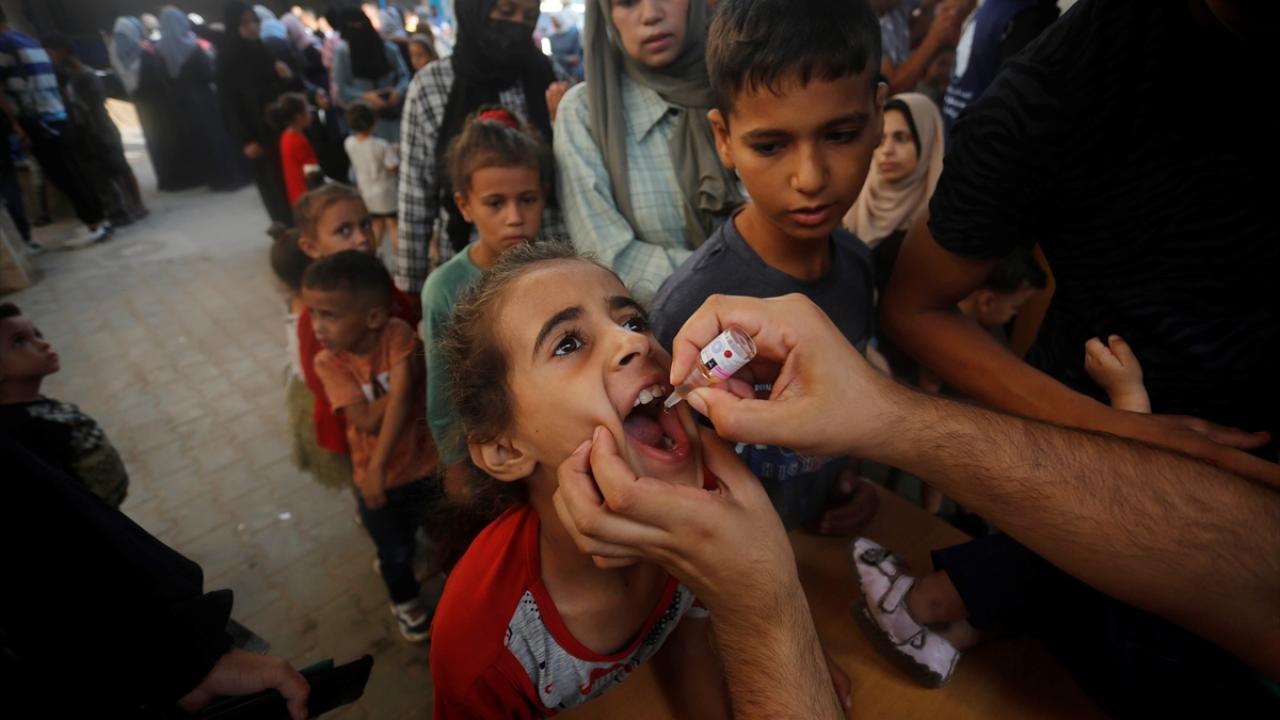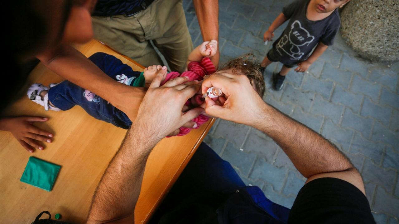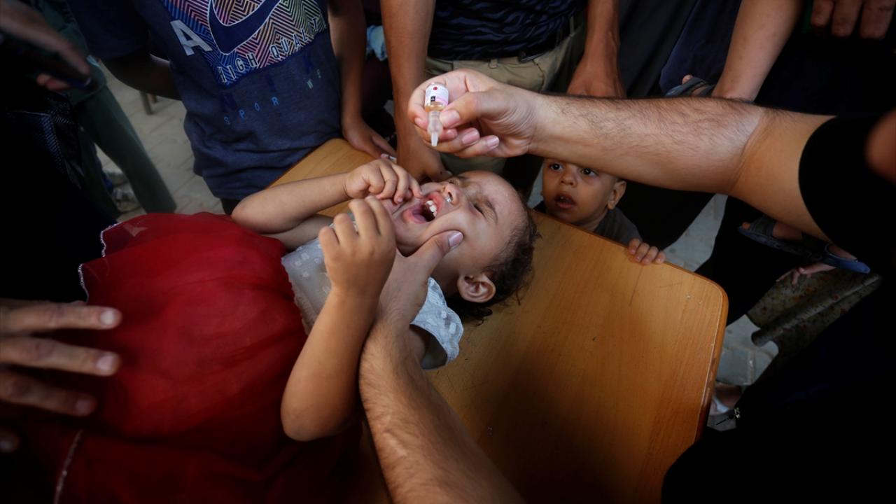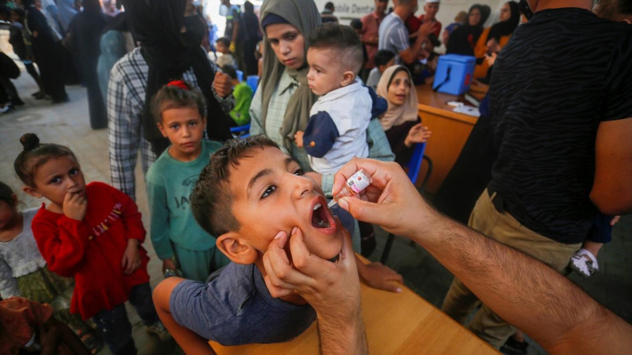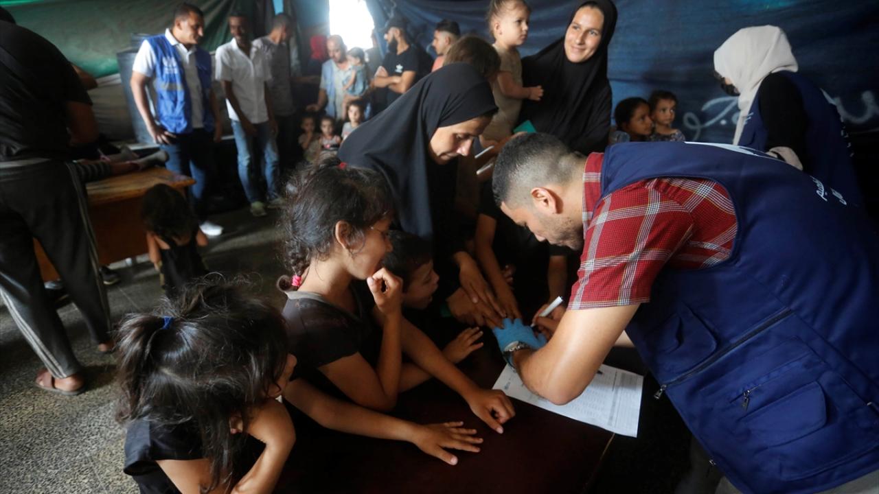 Filistin Sağlık Bakanlığı, Dünya Sağlık Örgütü (DSÖ), BM Çocuklara Yardım Fonu (UNICEF) ve BM Yakın Doğu'daki Filistinli Mültecilere Yardım ve Bayındırlık Ajansının (UNWRA) işbirliğiyle Gazze Şeridi'nde 10 yaş altı 640 binden fazla çocuğu kapsayan çocuk felci aşılama kampanyası devam ediyor. Deyr Balah kentinde çocuklara aşı yapıldı.