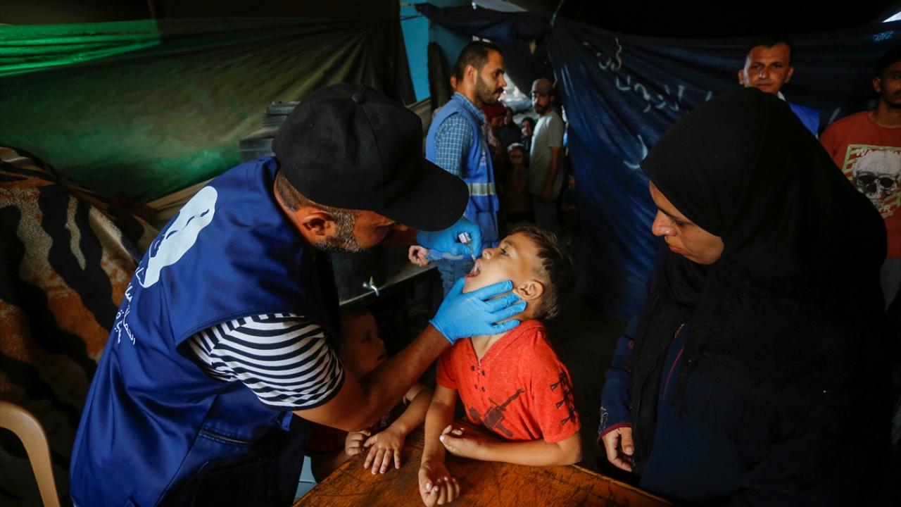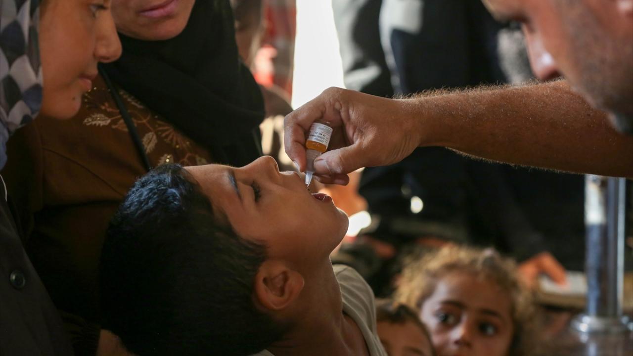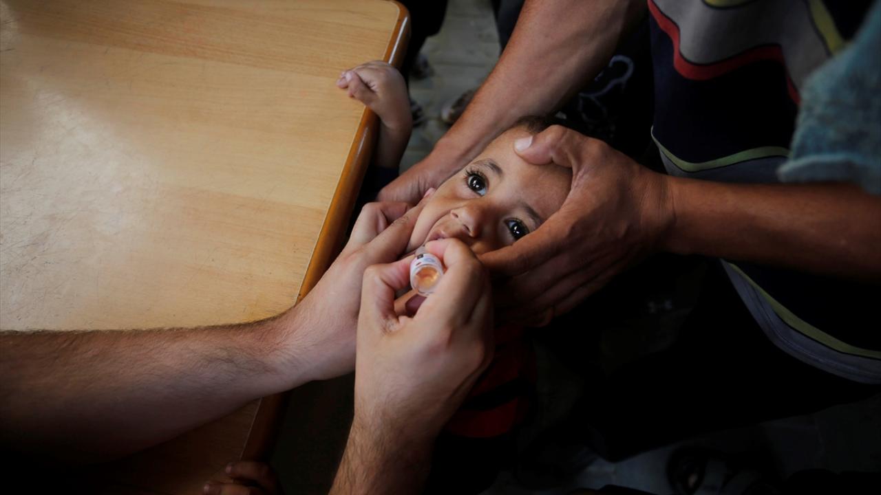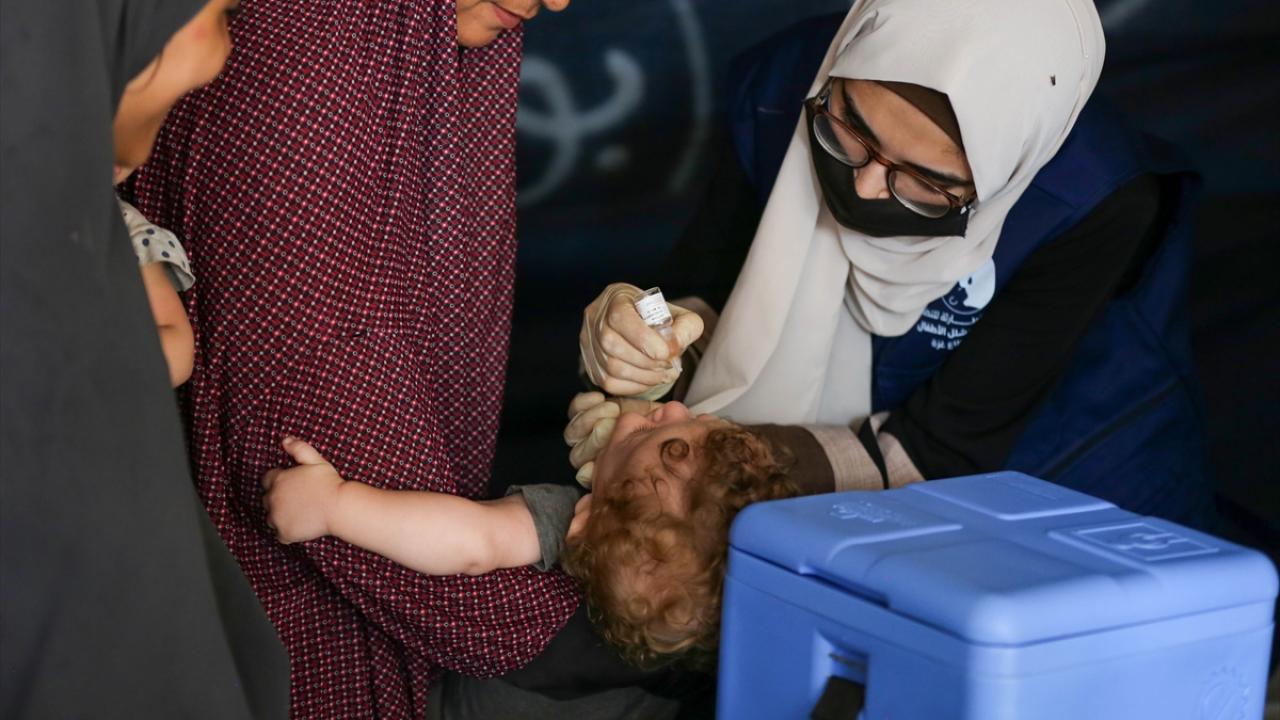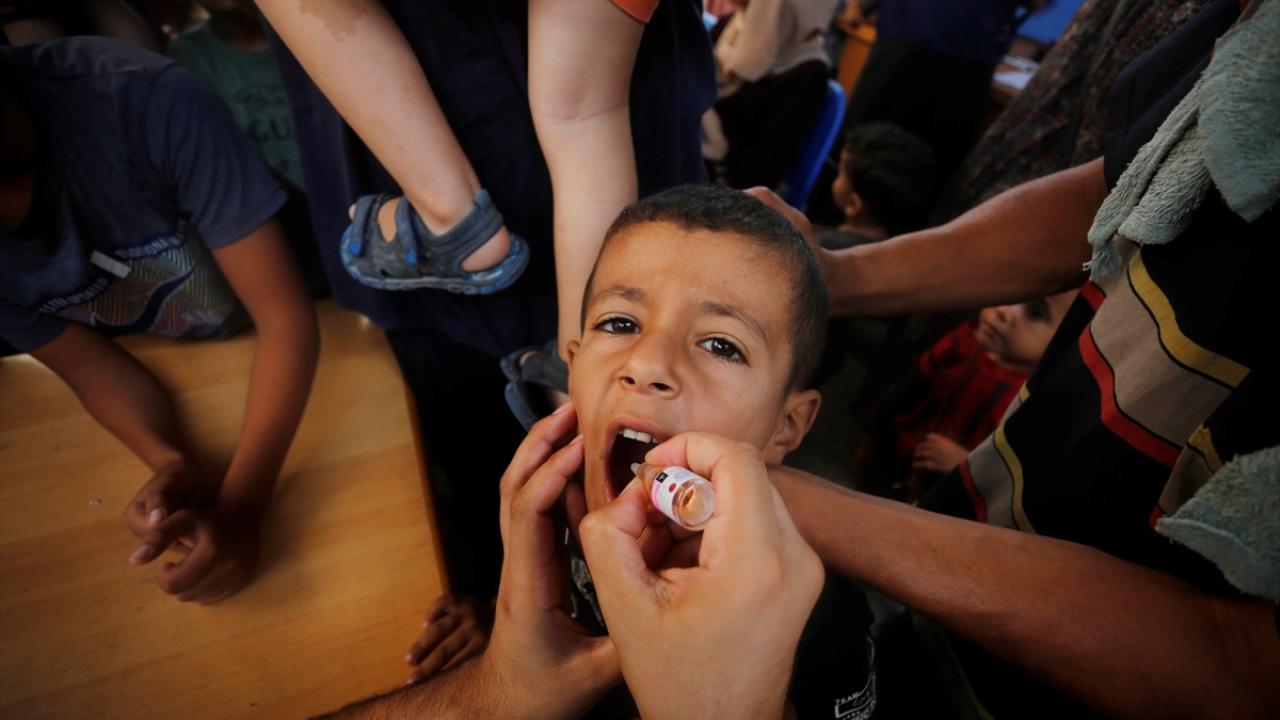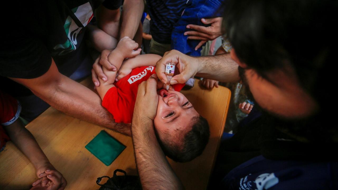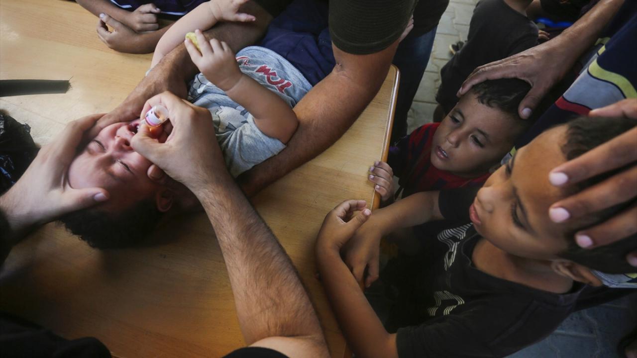Filistin Sağlık Bakanlığı, Dünya Sağlık Örgütü (DSÖ), BM Çocuklara Yardım Fonu (UNICEF) ve BM Yakın Doğu'daki Filistinli Mültecilere Yardım ve Bayındırlık Ajansının (UNWRA) işbirliğiyle Gazze Şeridi'nde 10 yaş altı 640 binden fazla çocuğu kapsayan çocuk felci aşılama kampanyası devam ediyor. Deyr Balah kentinde çocuklara aşı yapıldı.