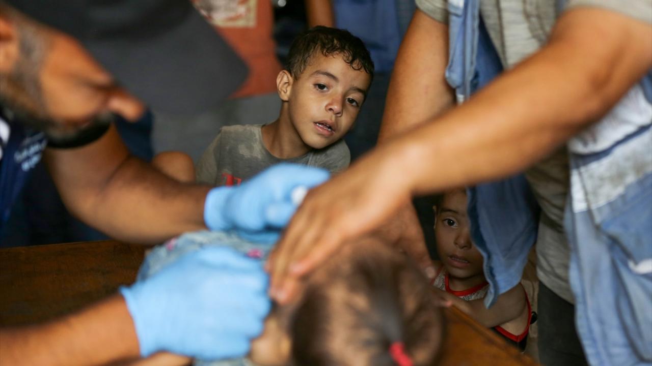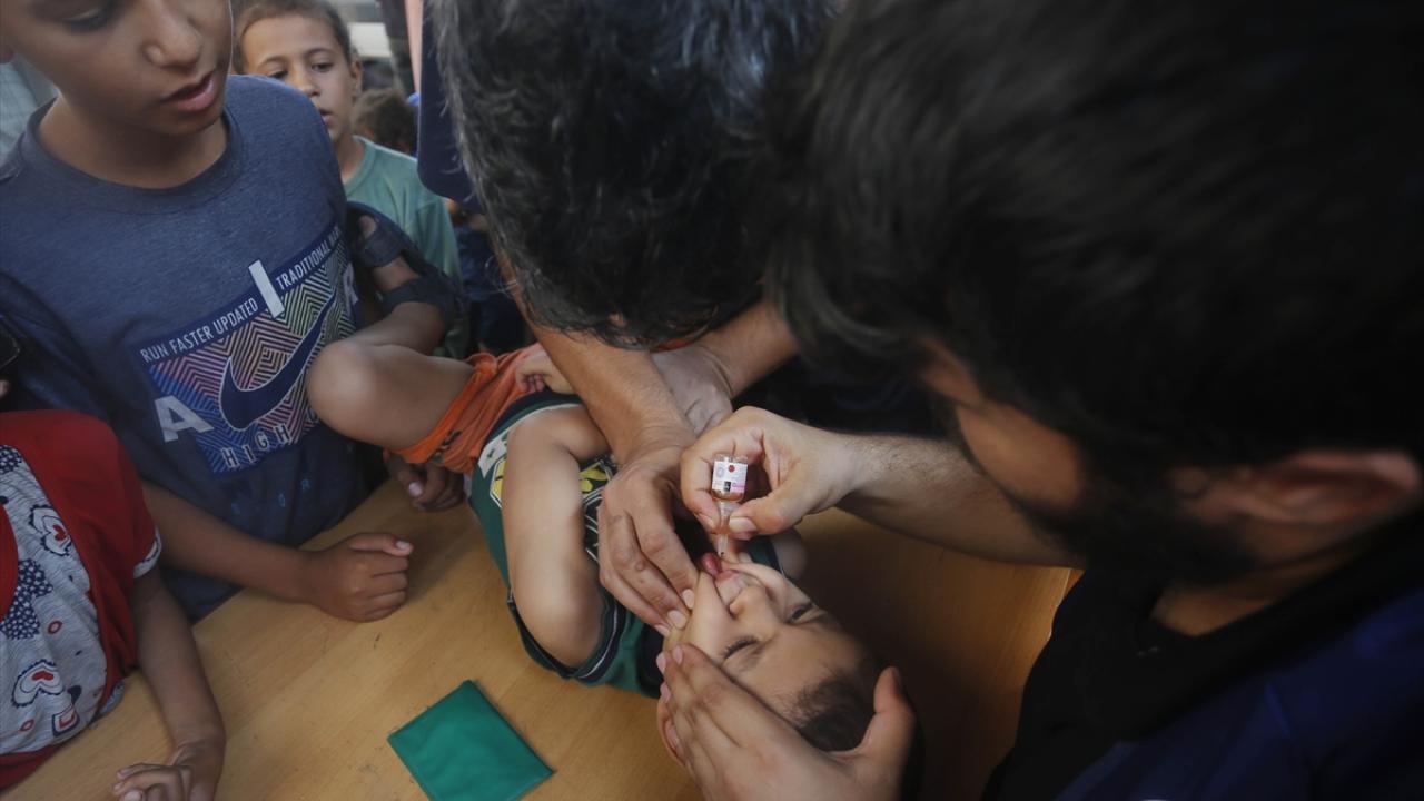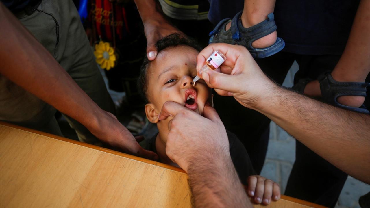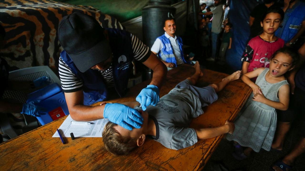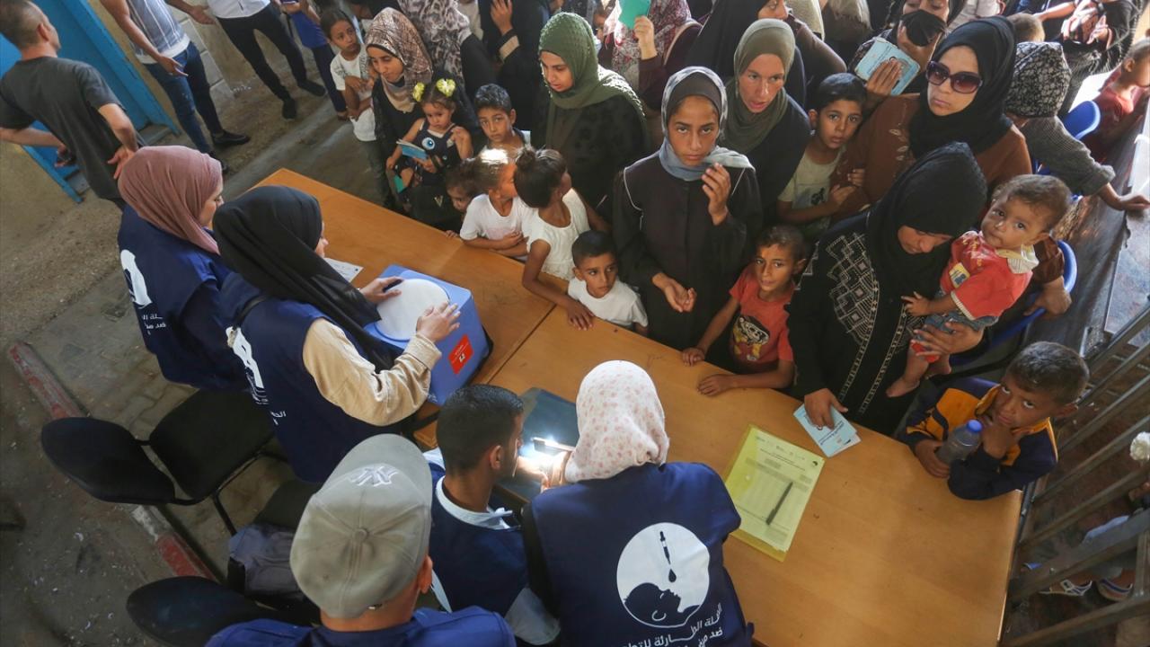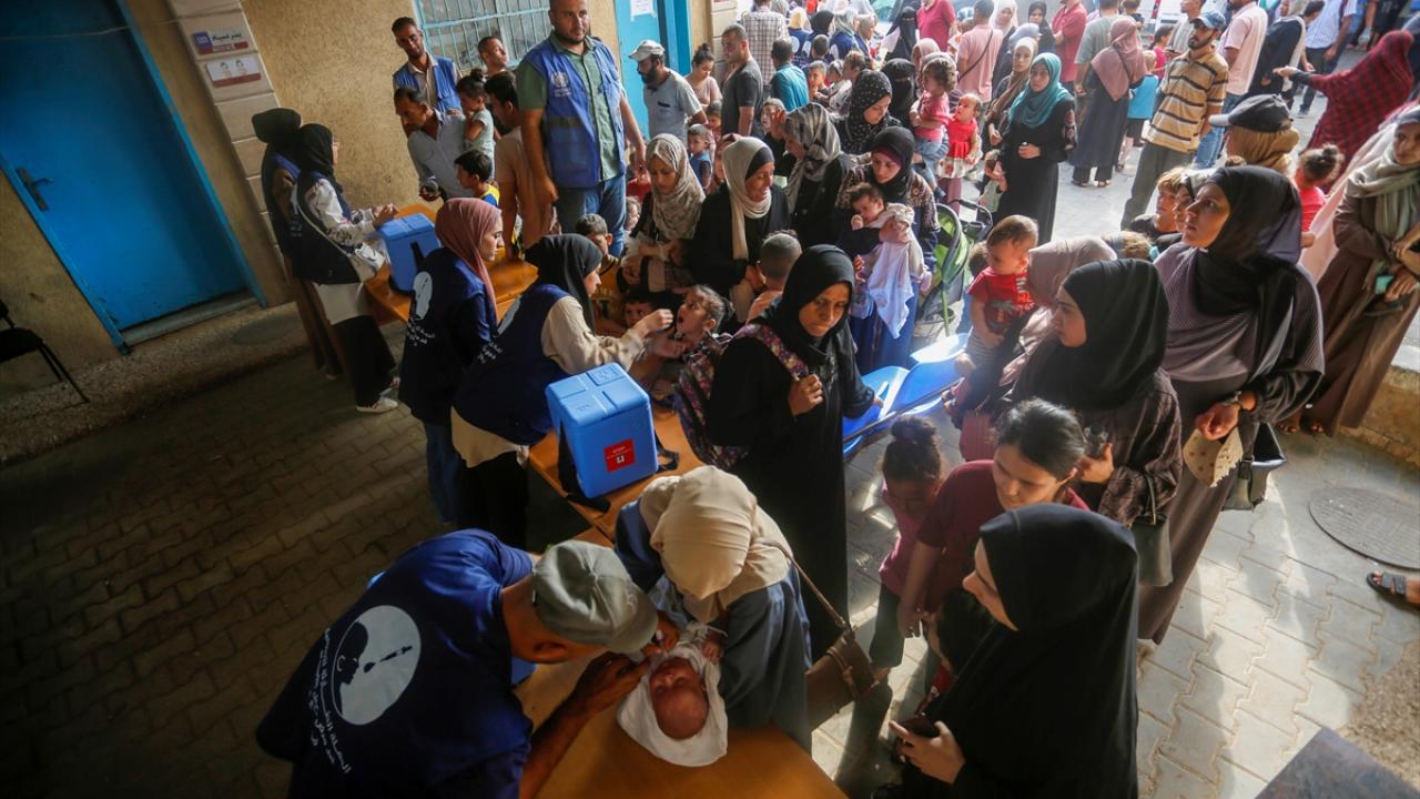 Filistin Sağlık Bakanlığı, Dünya Sağlık Örgütü (DSÖ), BM Çocuklara Yardım Fonu (UNICEF) ve BM Yakın Doğu'daki Filistinli Mültecilere Yardım ve Bayındırlık Ajansının (UNWRA) işbirliğiyle Gazze Şeridi'nde 10 yaş altı 640 binden fazla çocuğu kapsayan çocuk felci aşılama kampanyası devam ediyor. Deyr Balah kentinde çocuklara aşı yapıldı.