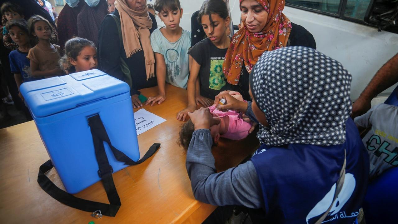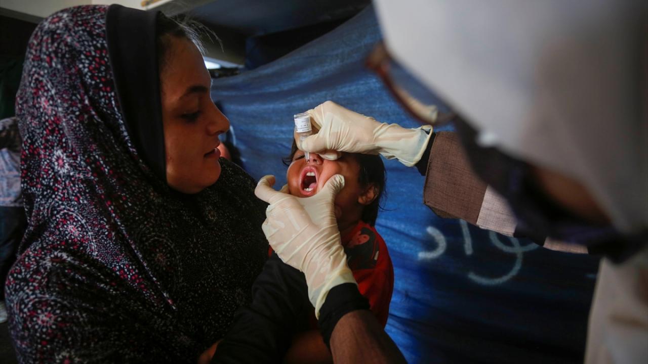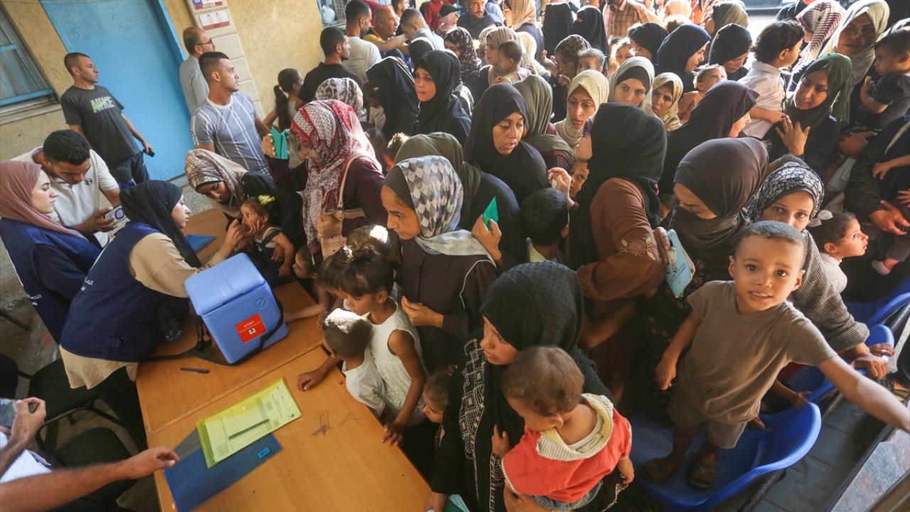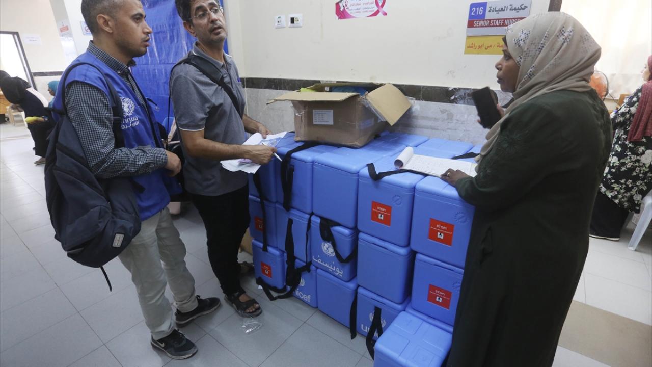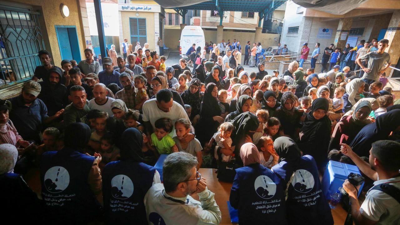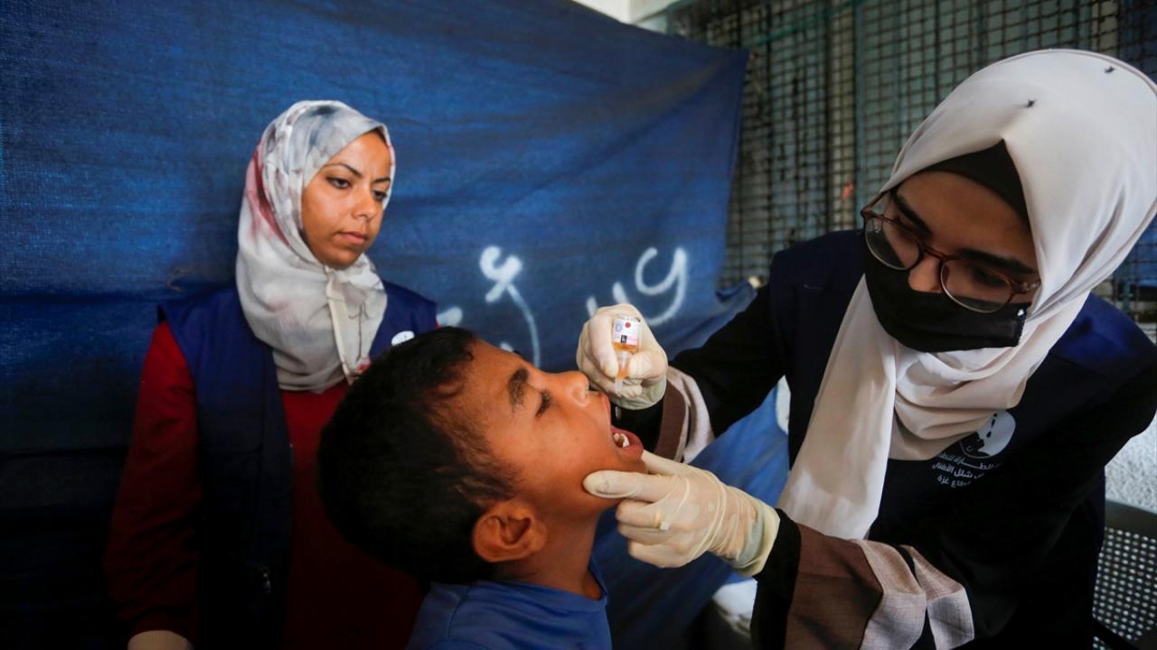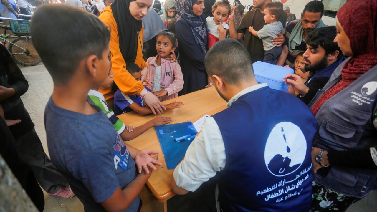 Filistin Sağlık Bakanlığı, Dünya Sağlık Örgütü (DSÖ), BM Çocuklara Yardım Fonu (UNICEF) ve BM Yakın Doğu'daki Filistinli Mültecilere Yardım ve Bayındırlık Ajansının (UNWRA) işbirliğiyle Gazze Şeridi'nde 10 yaş altı 640 binden fazla çocuğu kapsayan çocuk felci aşılama kampanyası devam ediyor. Deyr Balah kentinde çocuklara aşı yapıldı.