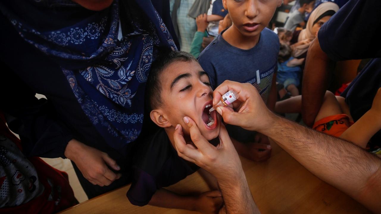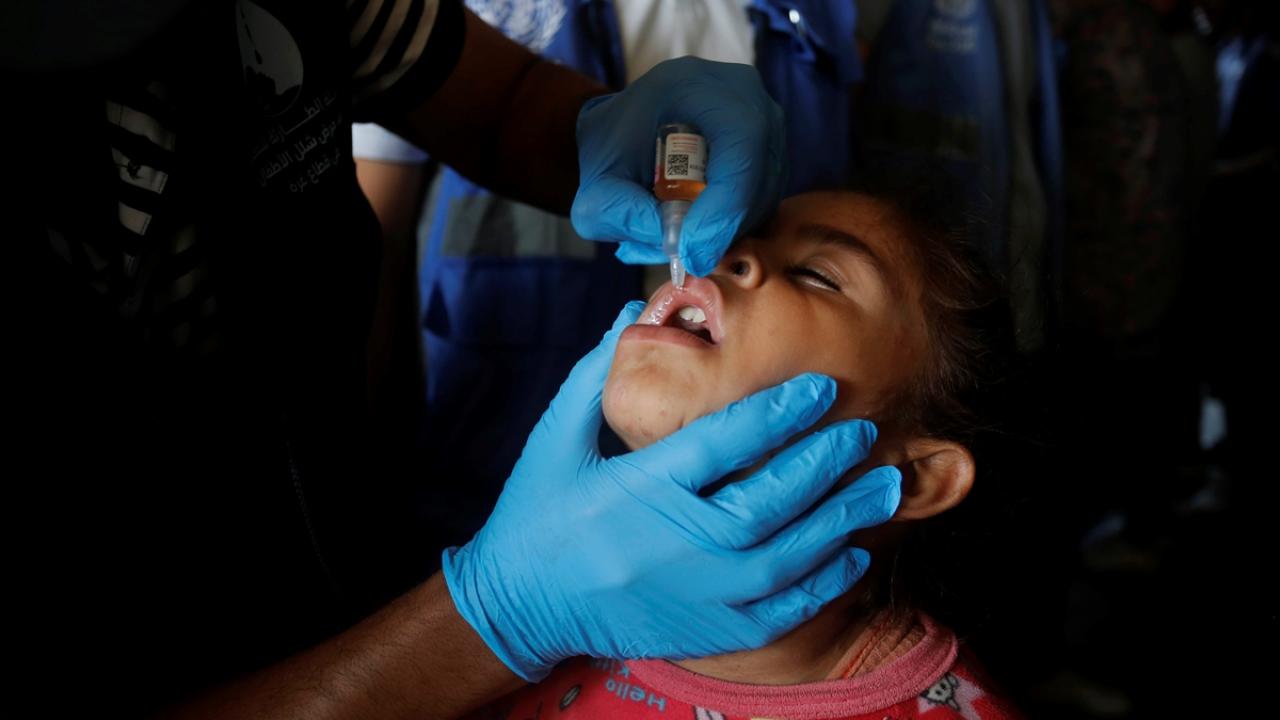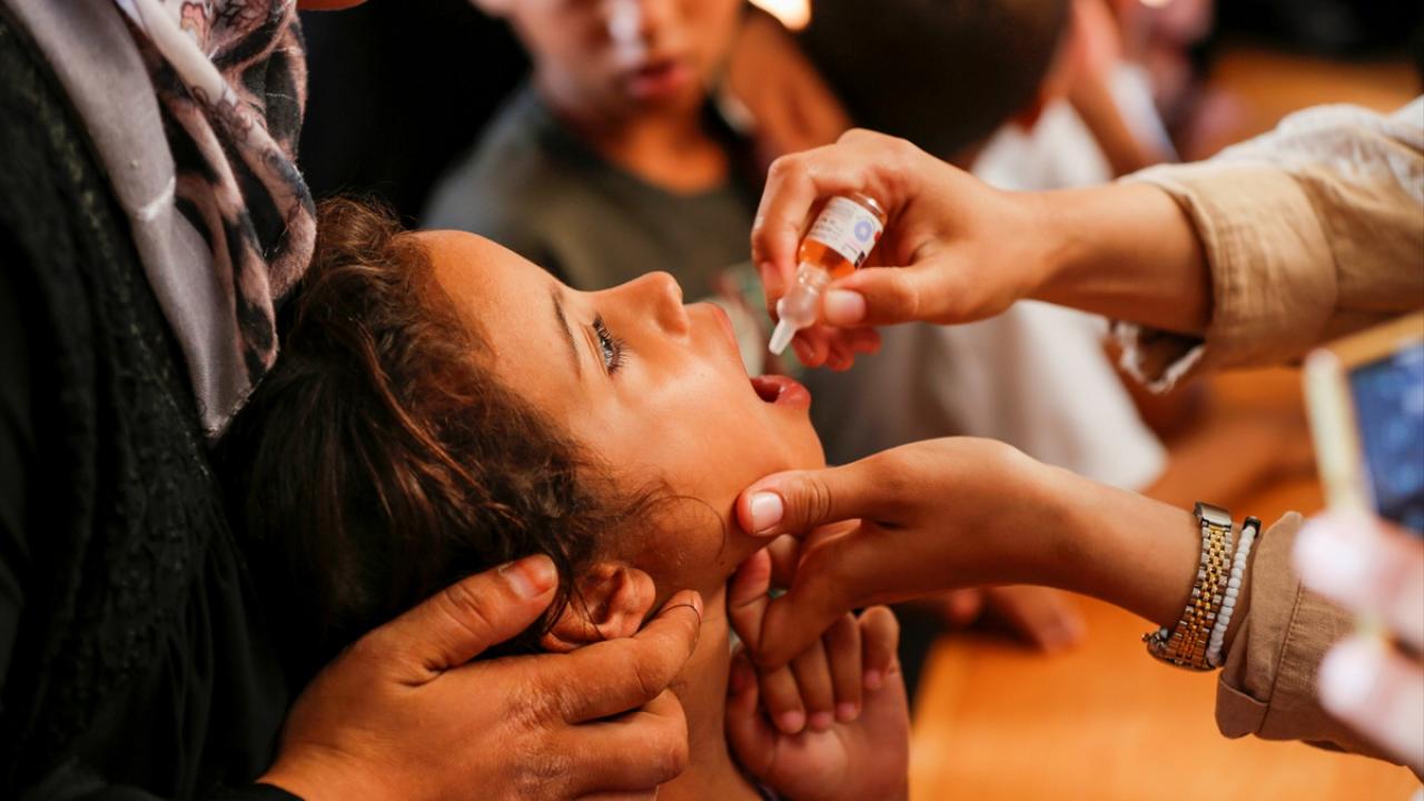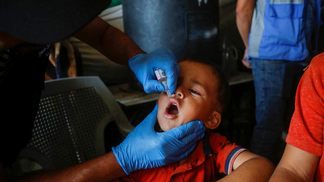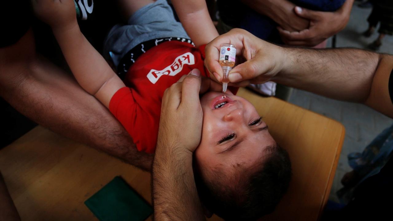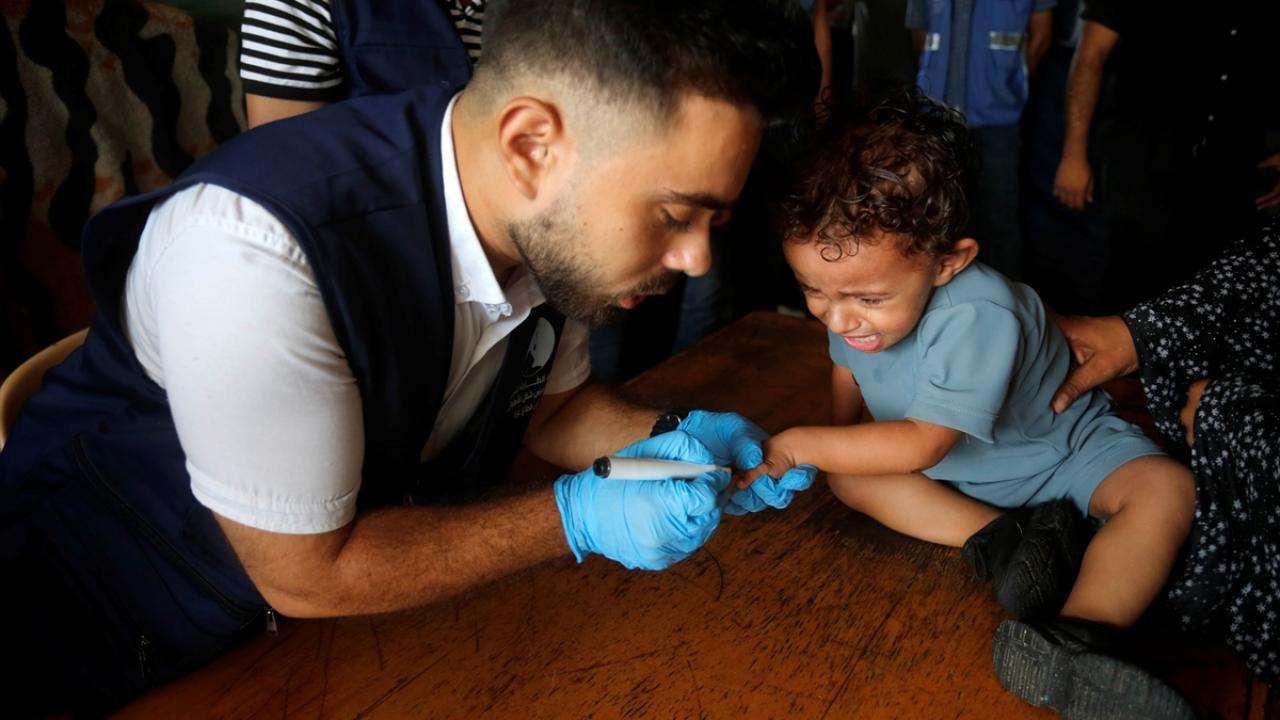 Filistin Sağlık Bakanlığı, Dünya Sağlık Örgütü (DSÖ), BM Çocuklara Yardım Fonu (UNICEF) ve BM Yakın Doğu'daki Filistinli Mültecilere Yardım ve Bayındırlık Ajansının (UNWRA) işbirliğiyle Gazze Şeridi'nde 10 yaş altı 640 binden fazla çocuğu kapsayan çocuk felci aşılama kampanyası devam ediyor. Deyr Balah kentinde çocuklara aşı yapıldı.