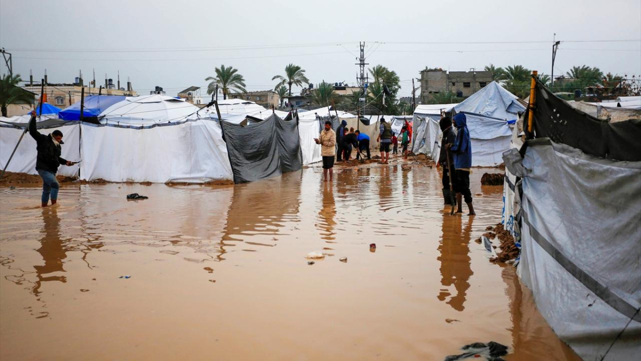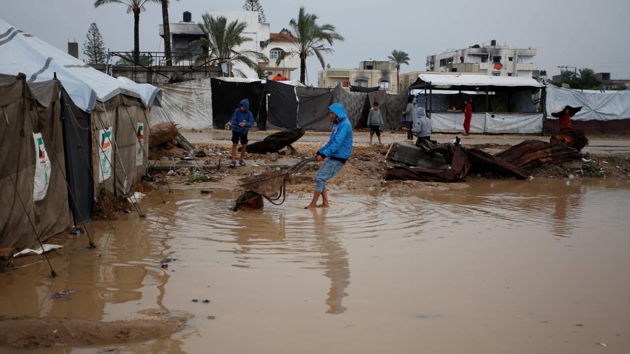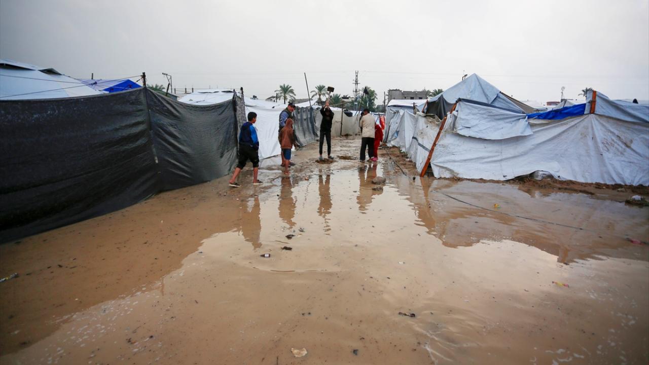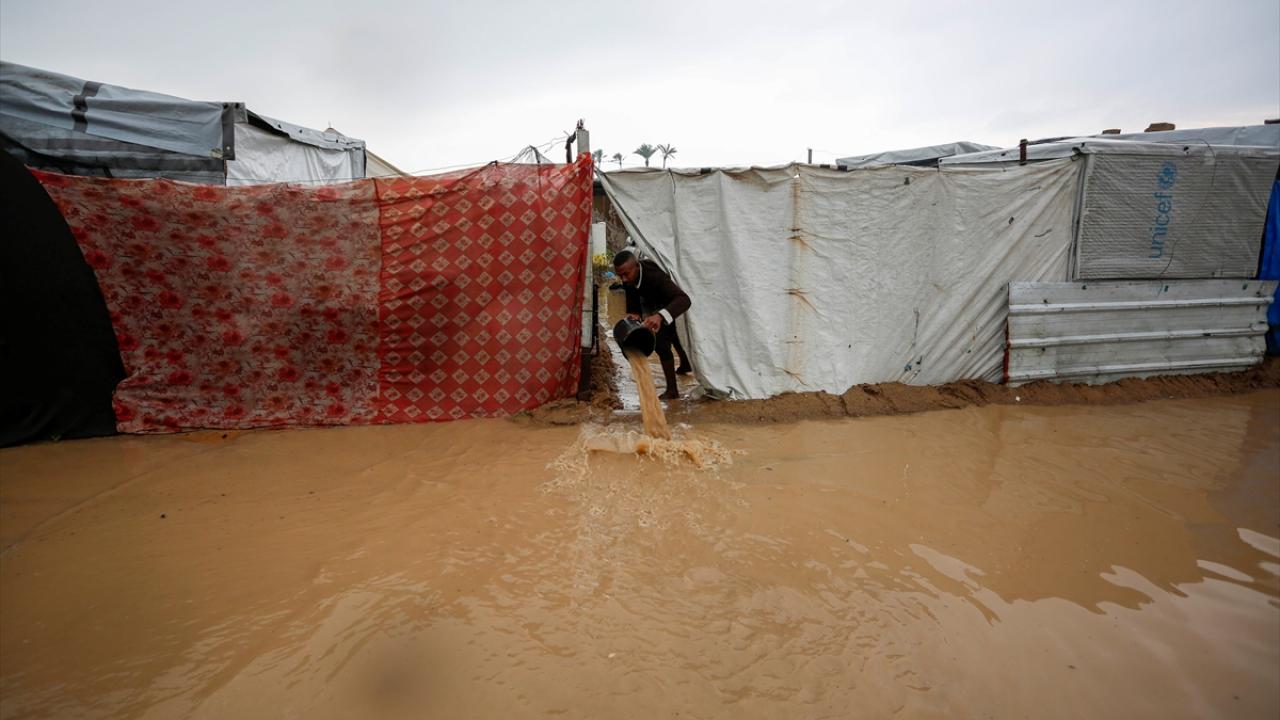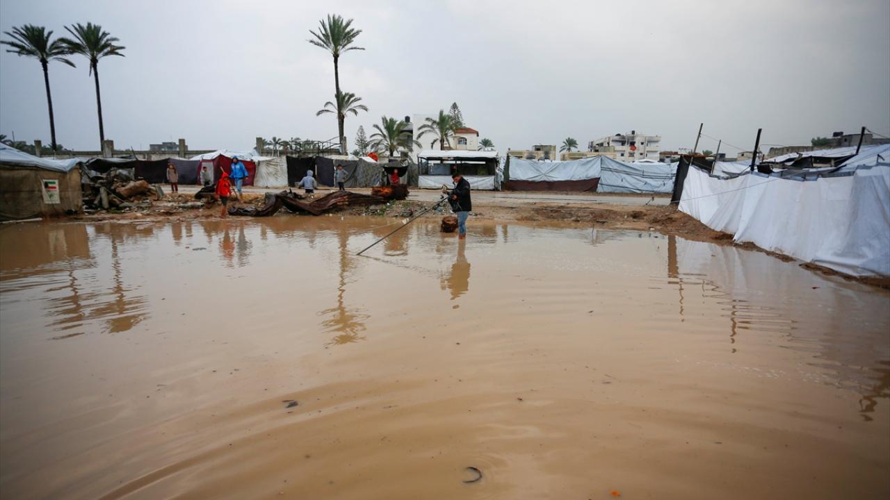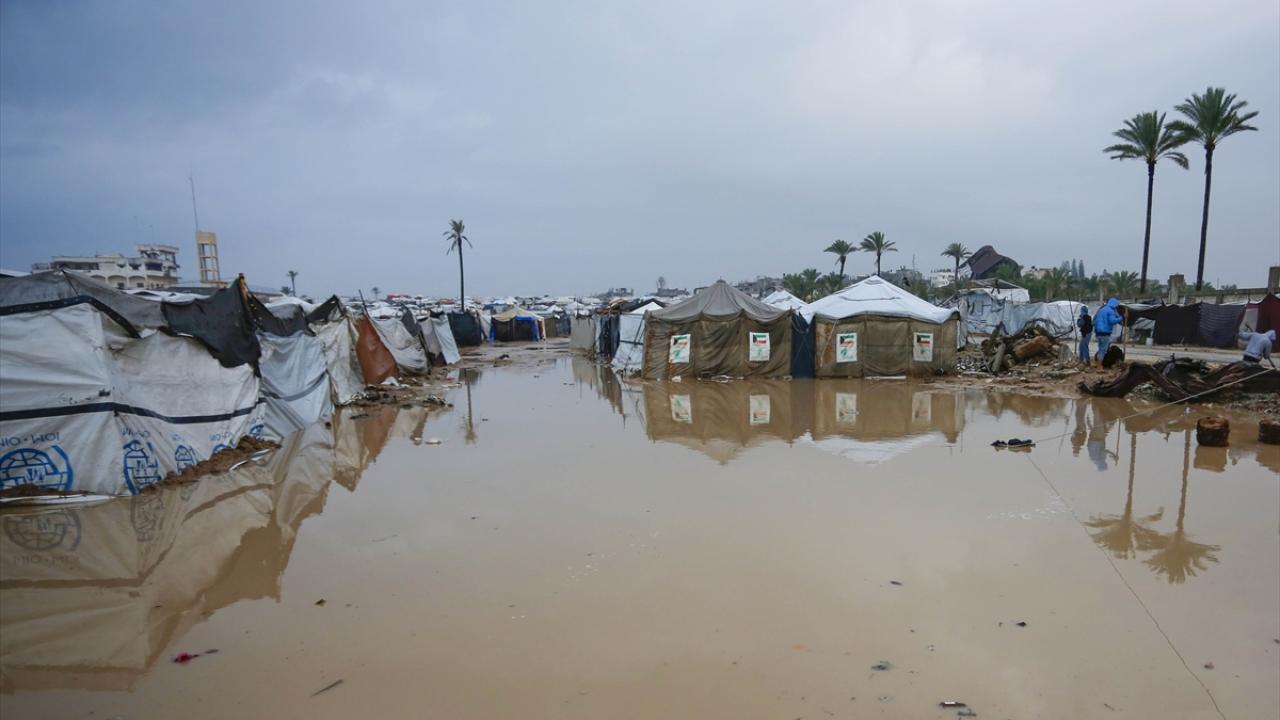Gazze Şeridi'nde iki gündür devam eden şiddetli yağış nedeniyle, işgalci İsrail tarafından yerinden edilmiş Filistinlilerin yaşadığı yüzlerce çadır sular altında kaldı.