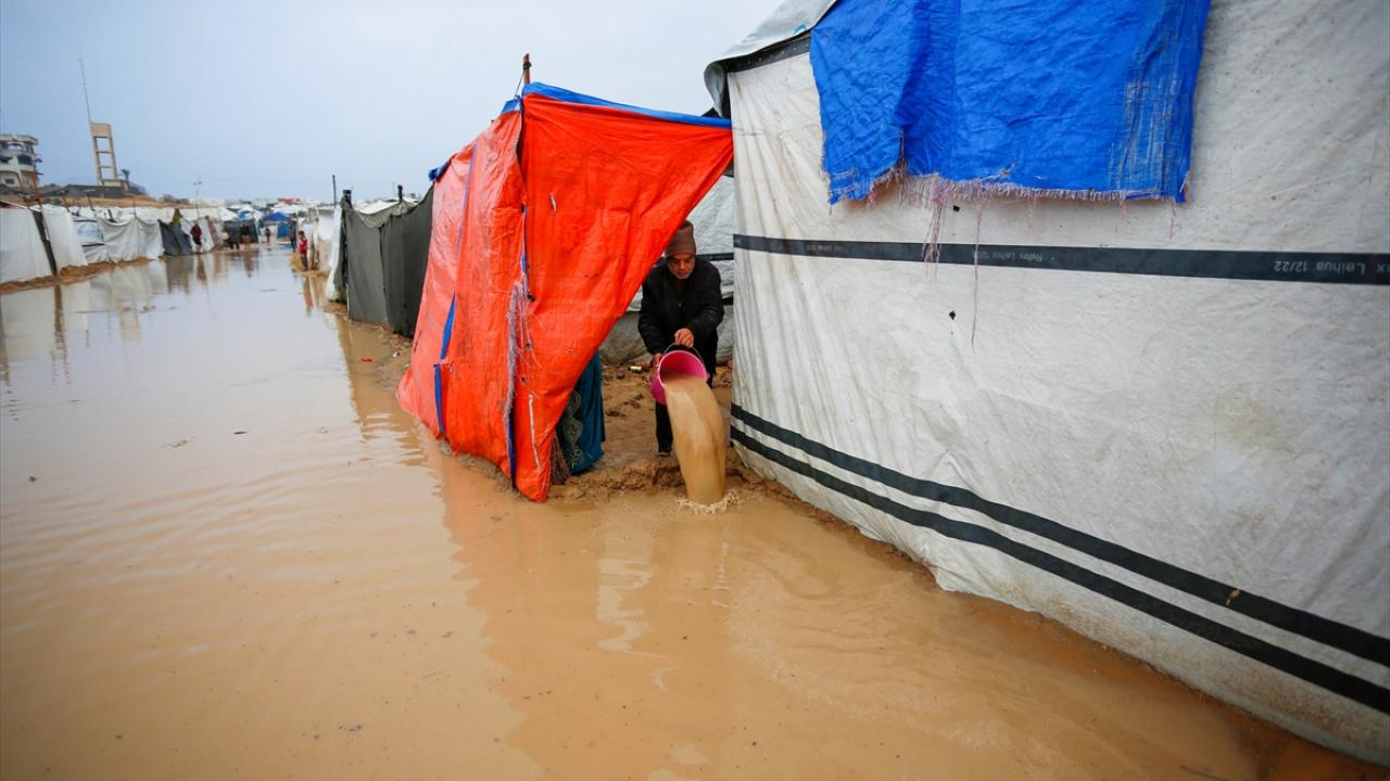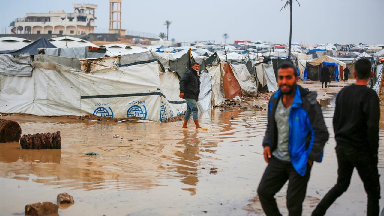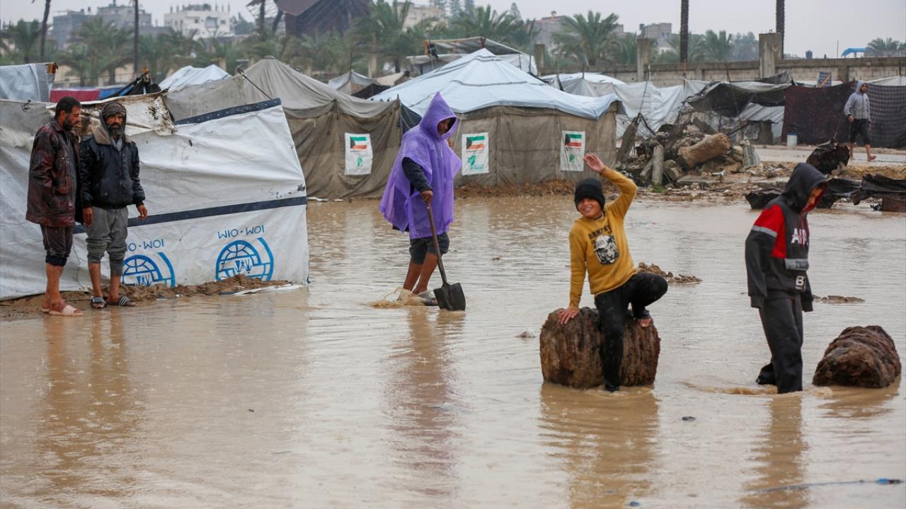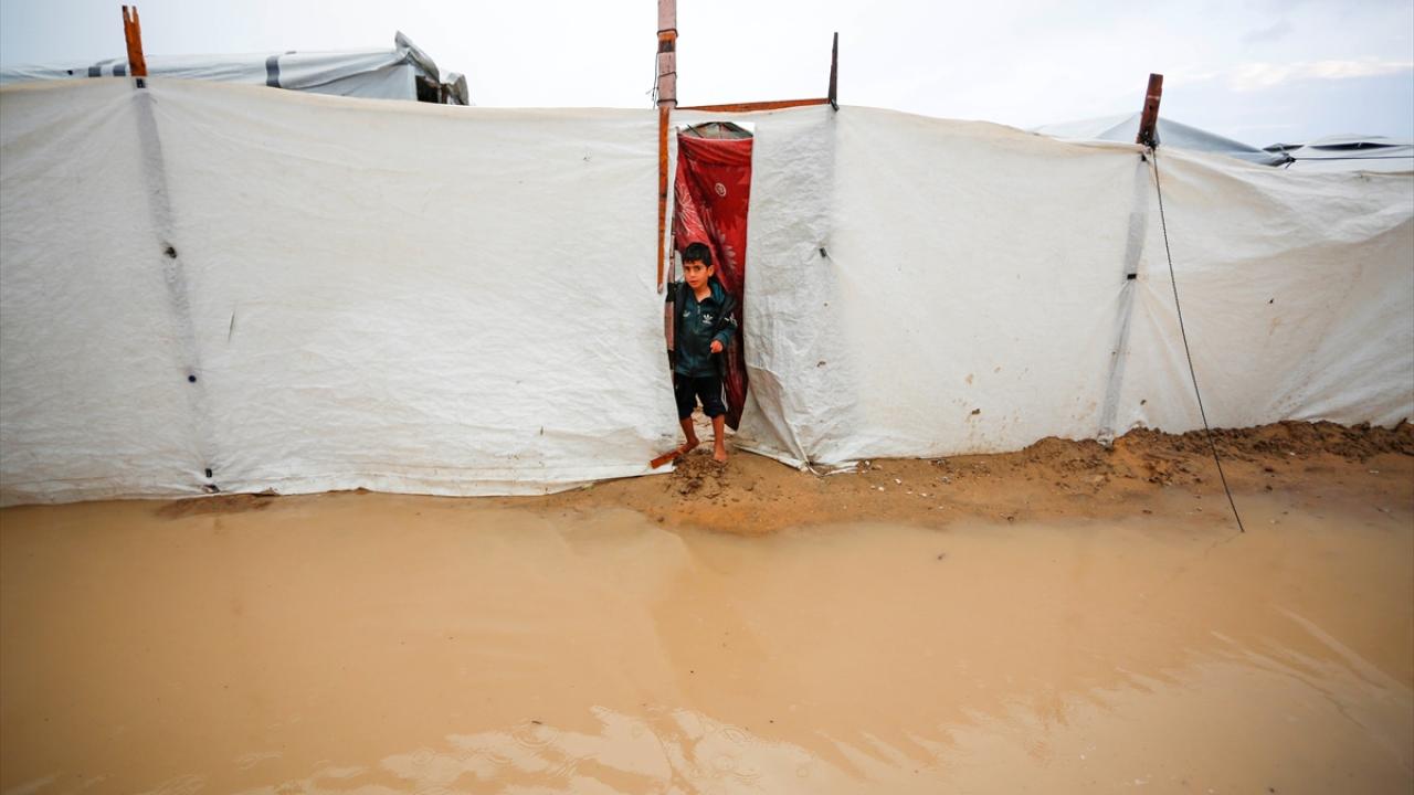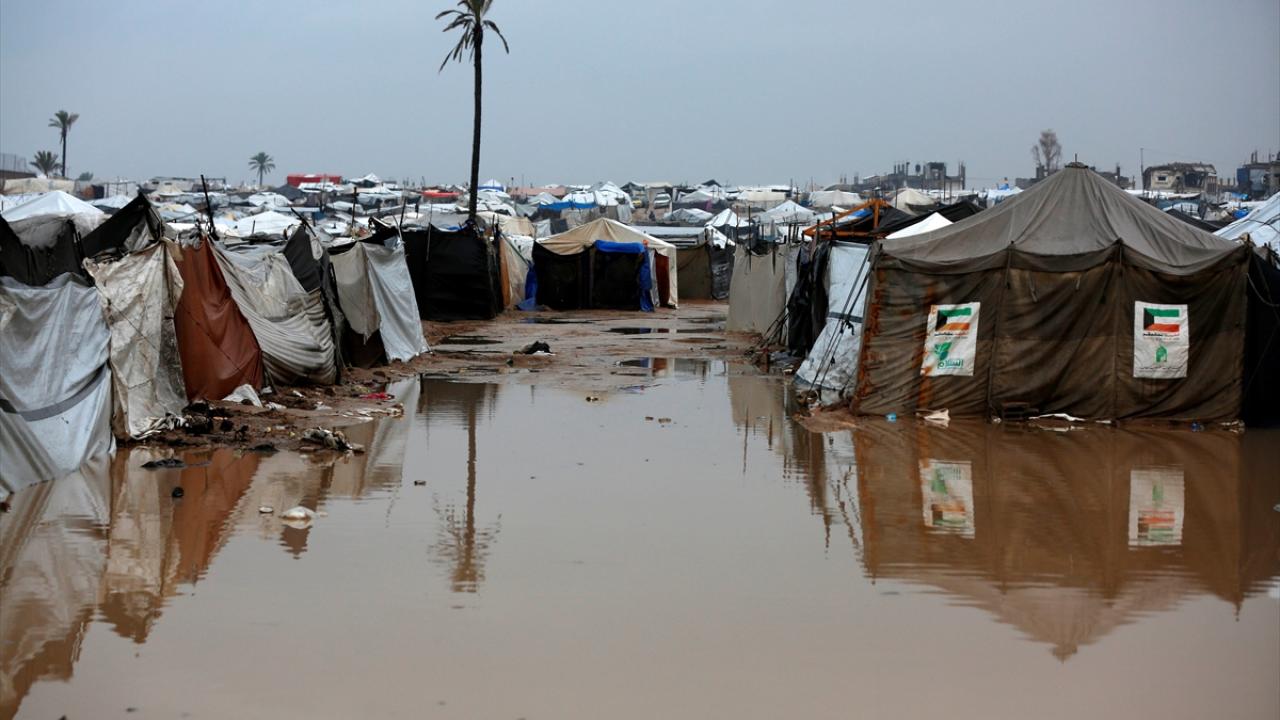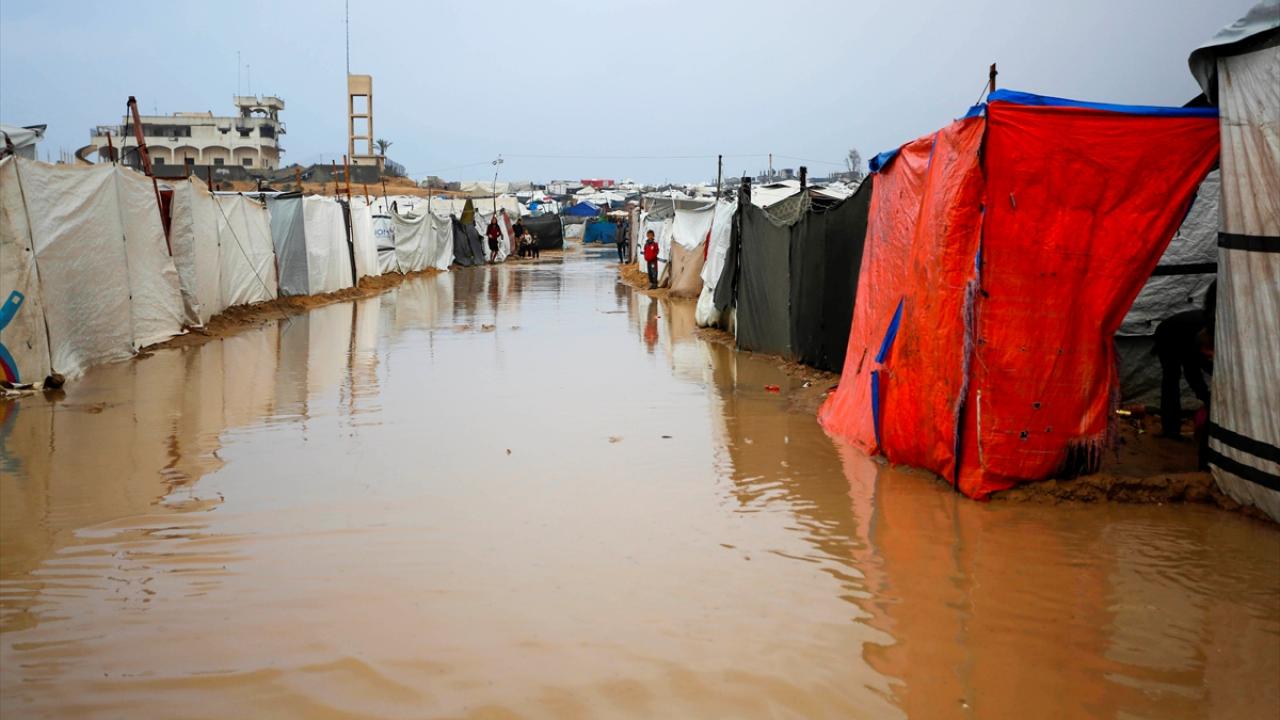 Gazze Şeridi'nde iki gündür devam eden şiddetli yağış nedeniyle, işgalci İsrail tarafından yerinden edilmiş Filistinlilerin yaşadığı yüzlerce çadır sular altında kaldı.