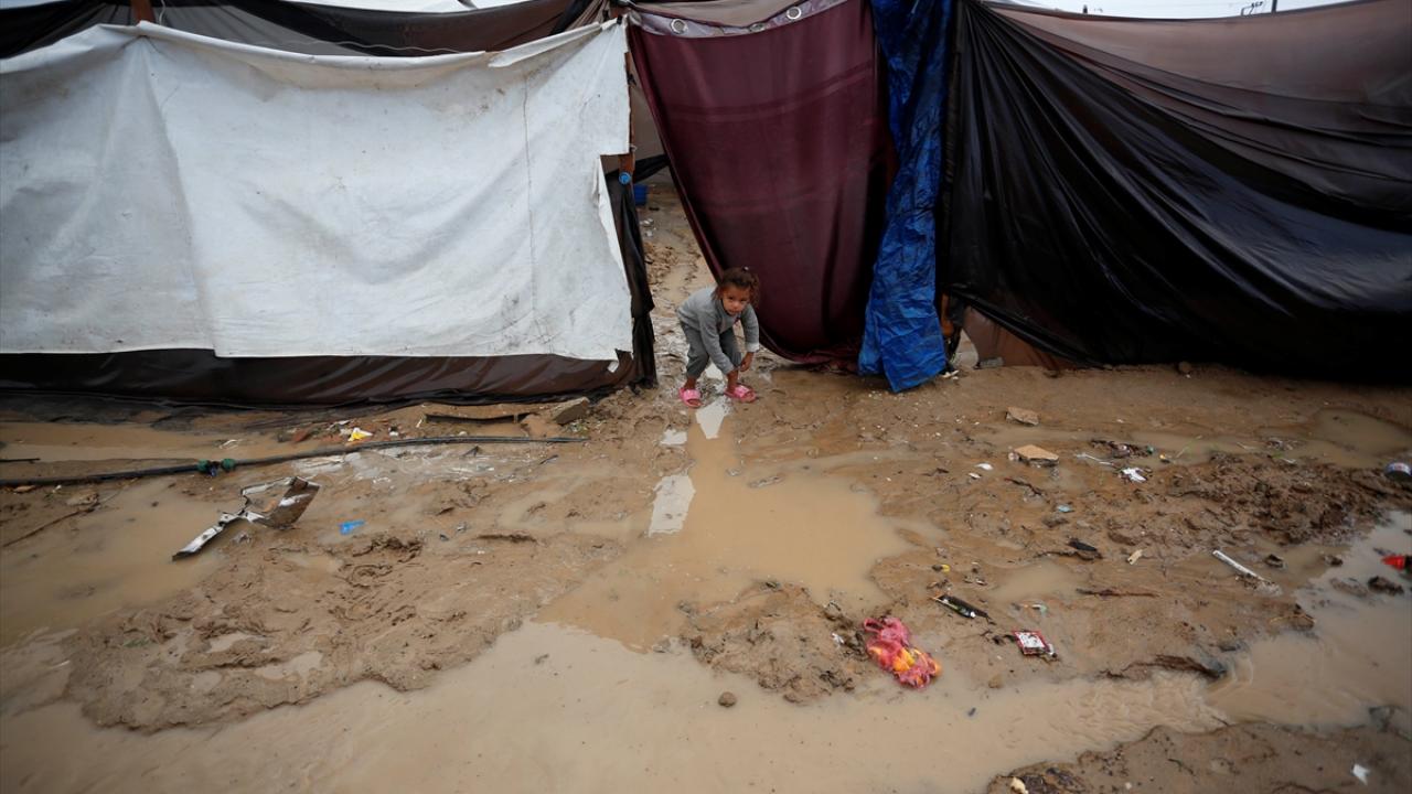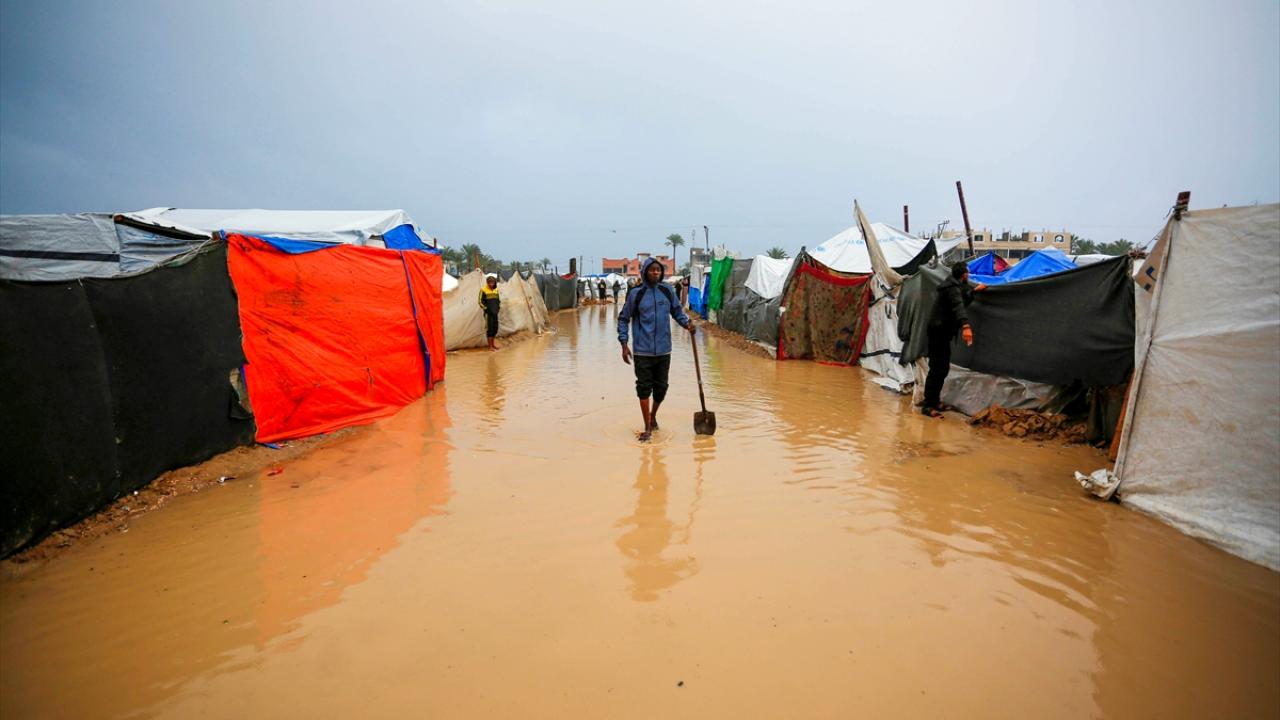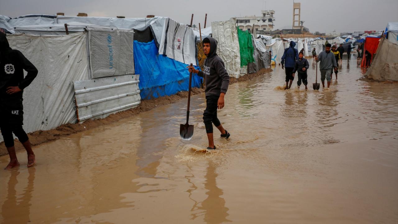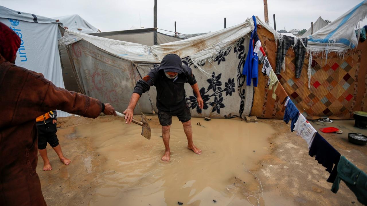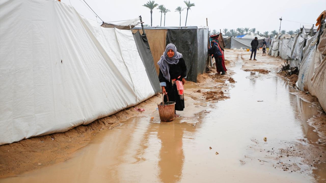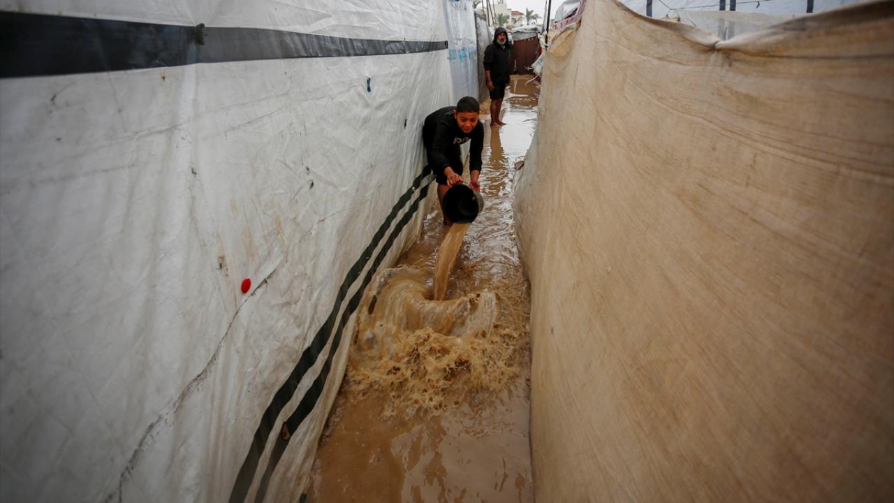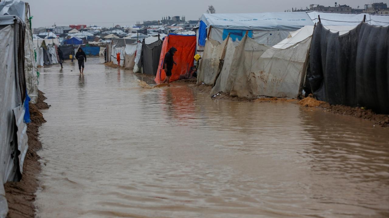 Gazze Şeridi'nde iki gündür devam eden şiddetli yağış nedeniyle, işgalci İsrail tarafından yerinden edilmiş Filistinlilerin yaşadığı yüzlerce çadır sular altında kaldı.