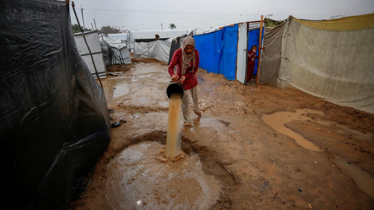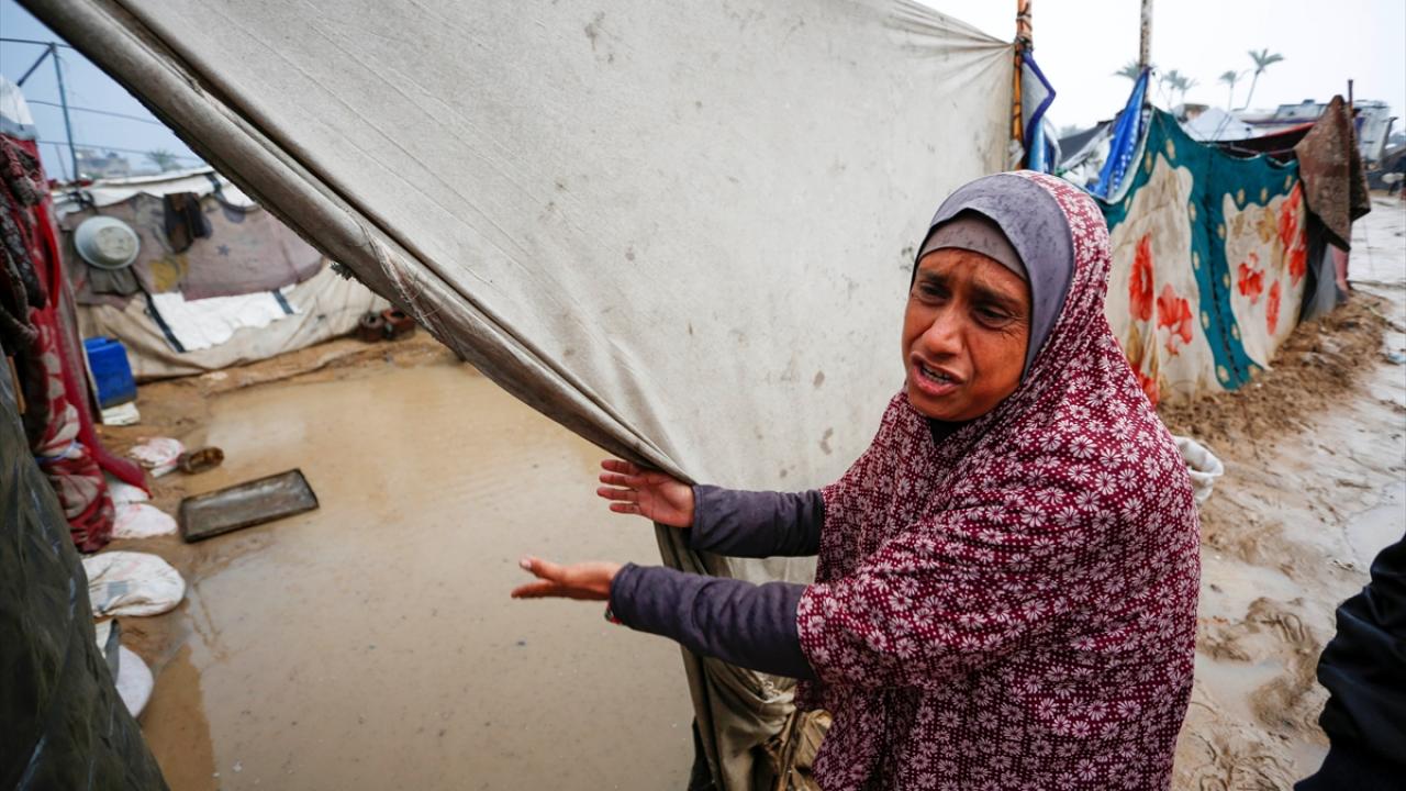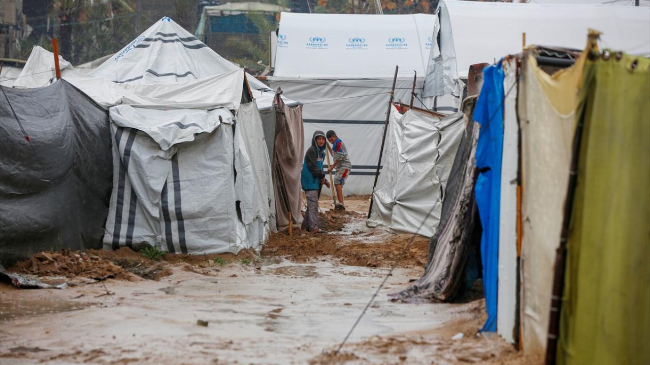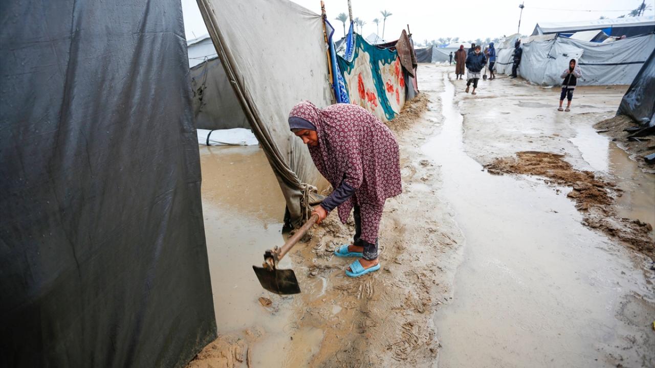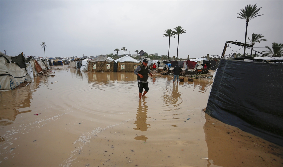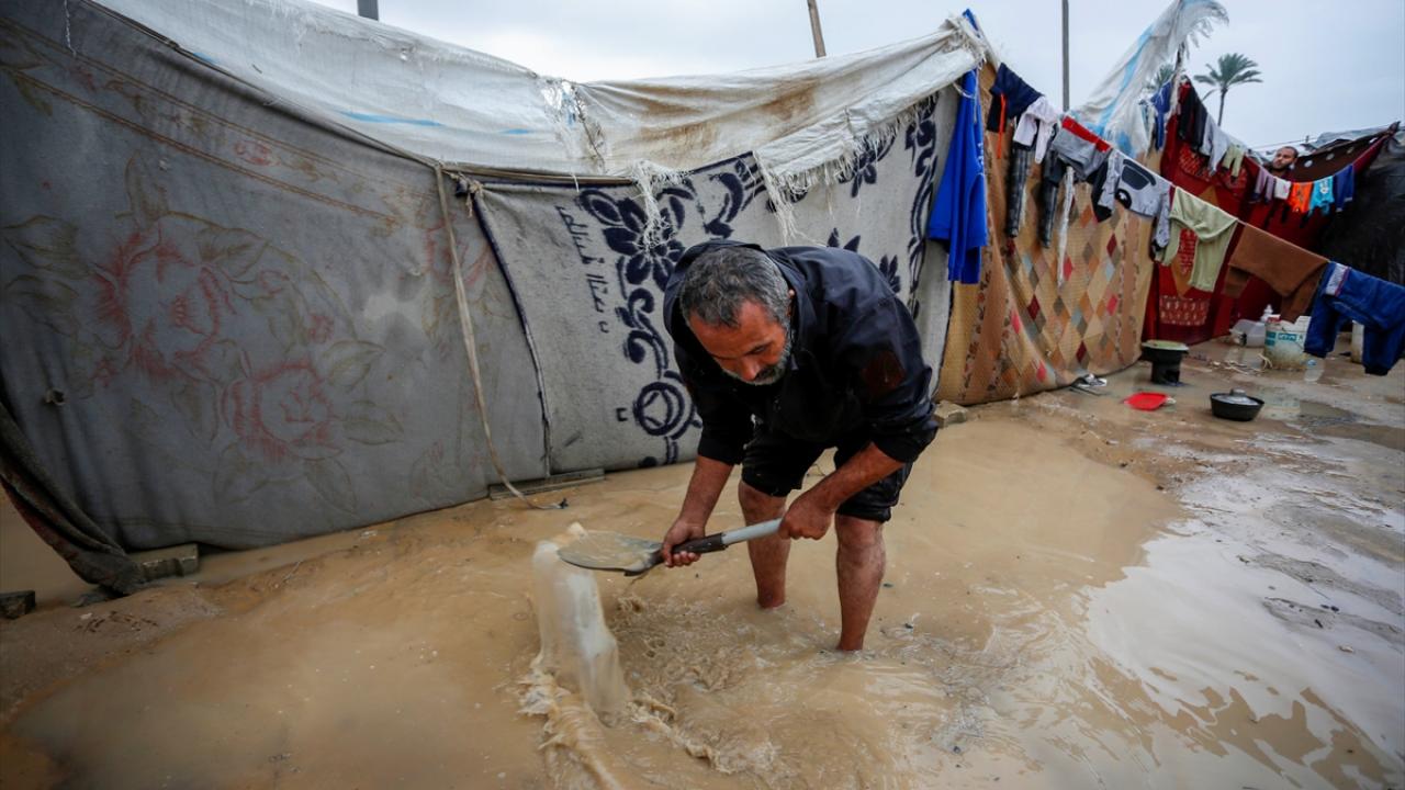 Gazze Şeridi'nde iki gündür devam eden şiddetli yağış nedeniyle, işgalci İsrail tarafından yerinden edilmiş Filistinlilerin yaşadığı yüzlerce çadır sular altında kaldı.