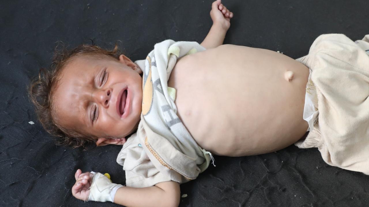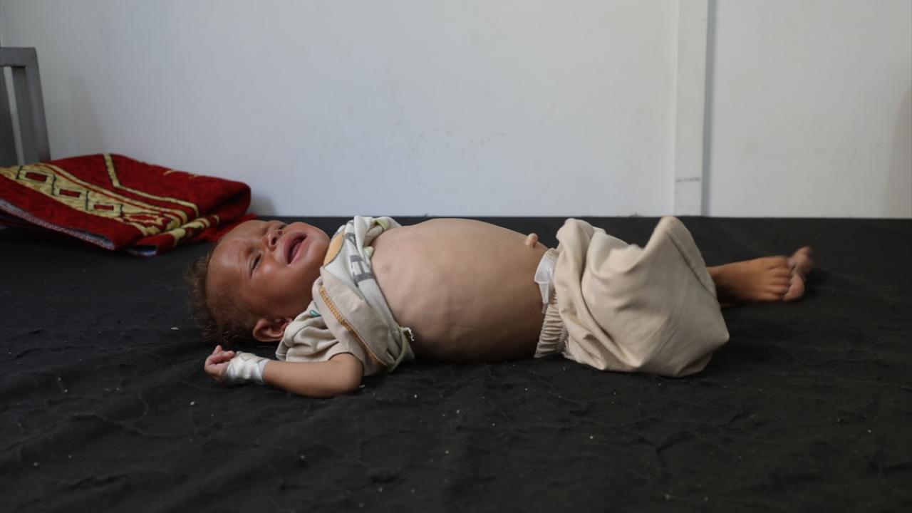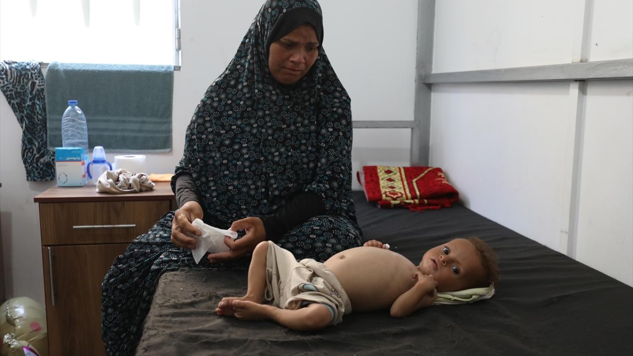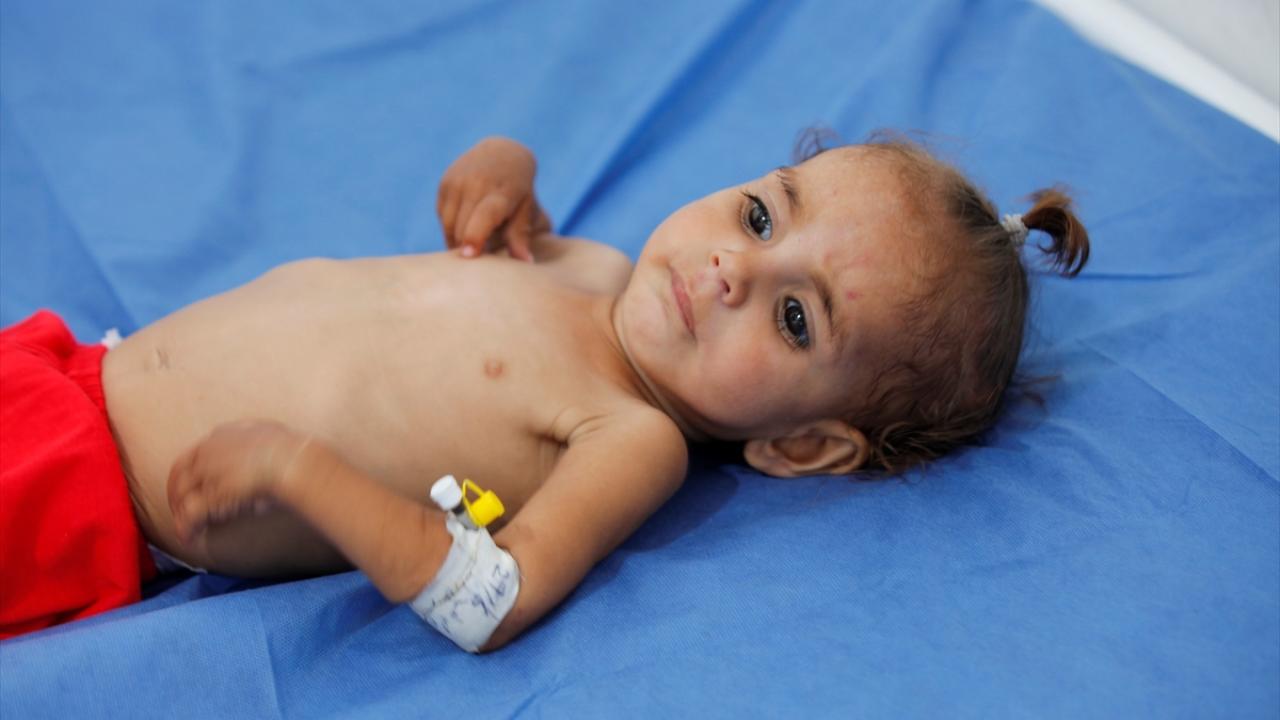 Gıda ve ilaç eksikliği sonucu şiddetli beslenme yetersizliği yaşayan bazı çocuklar, tedavi edilmek üzere Cibaliya’daki El-Avde Hastanesi’ne götürüldü.