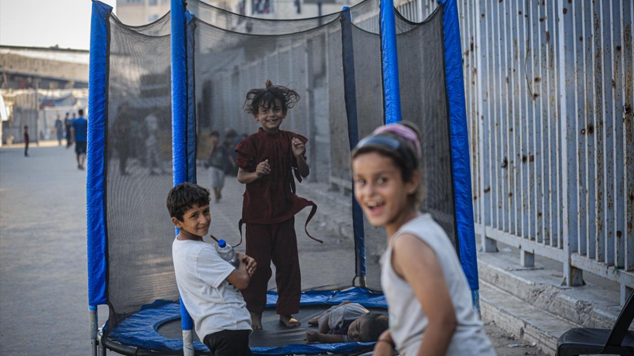 Gazze kentindeki Yermuk Kampı`nda yaşayan çocuklar, sürekli bombardıman tehdidi ve yaşadıkları travmalara rağmen, buldukları her fırsatta basit oyun oynayarak eğlenmeye çalışıyor.