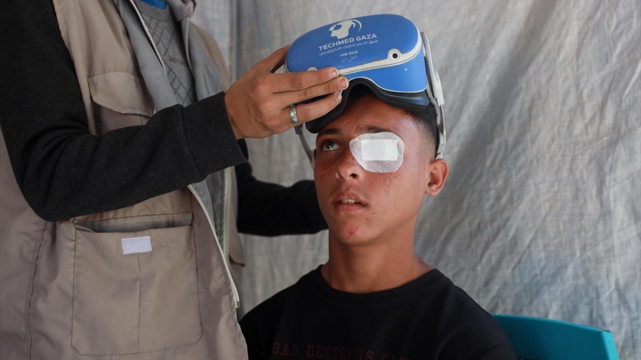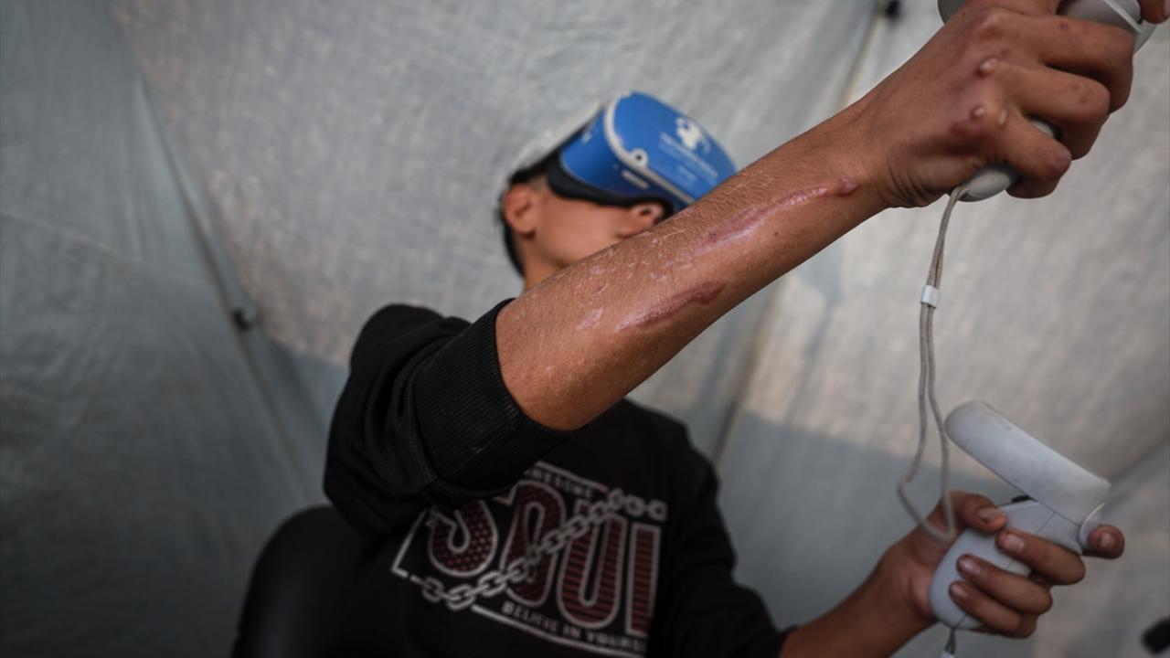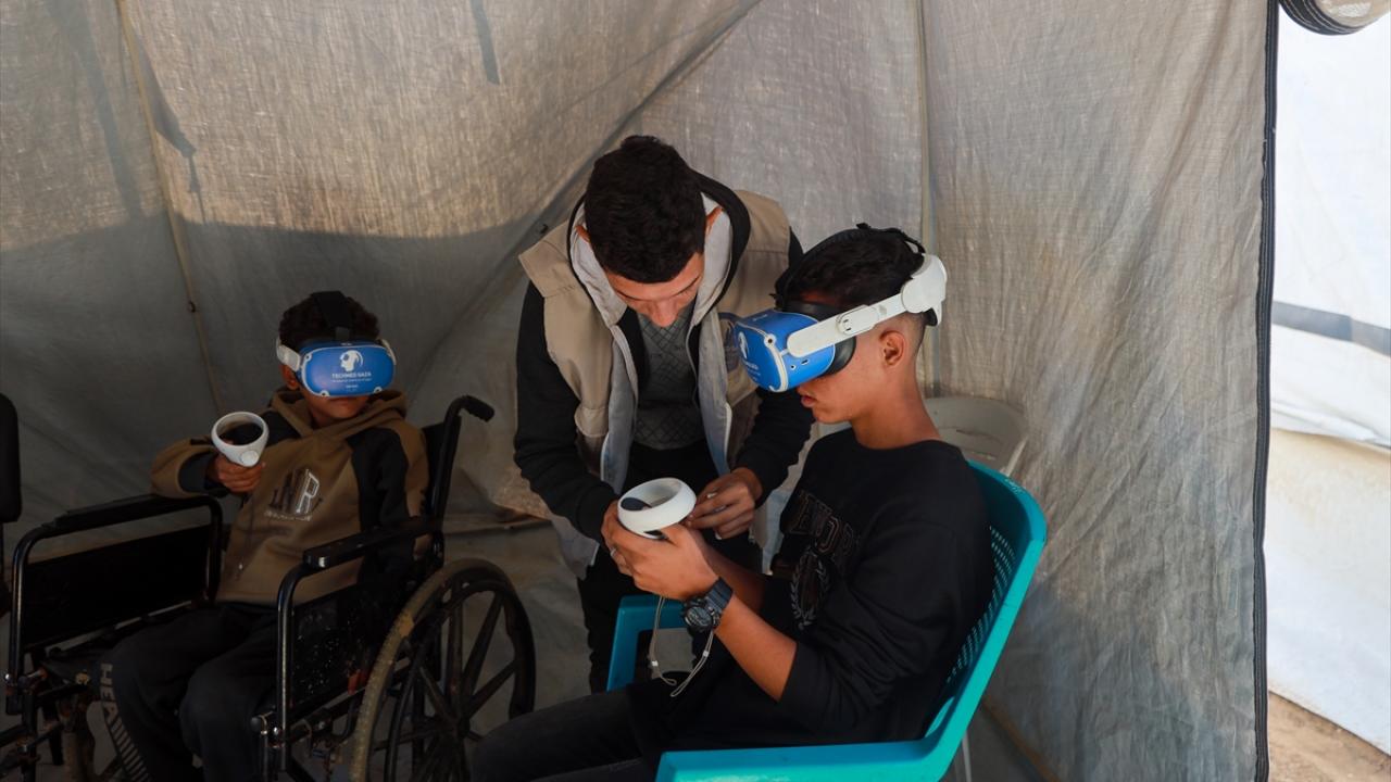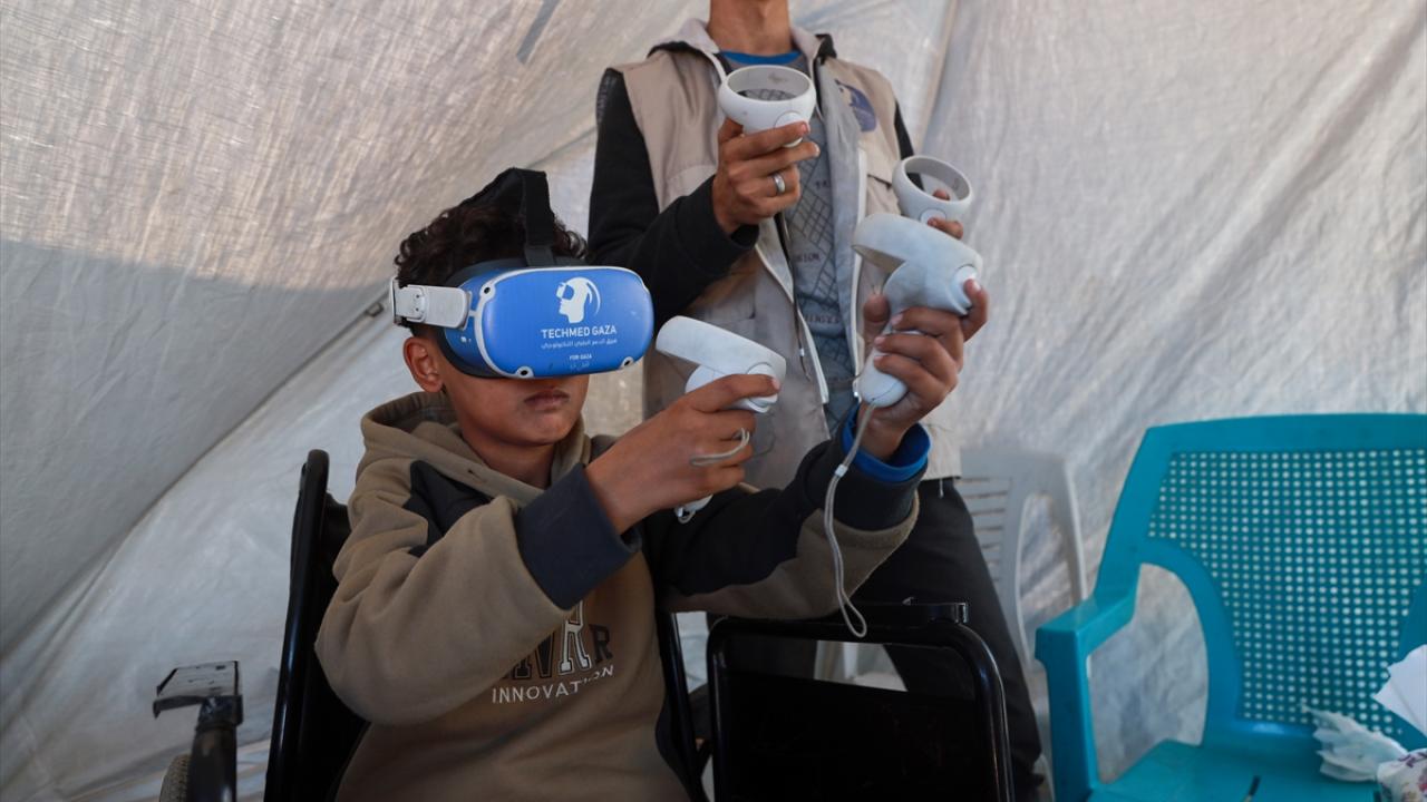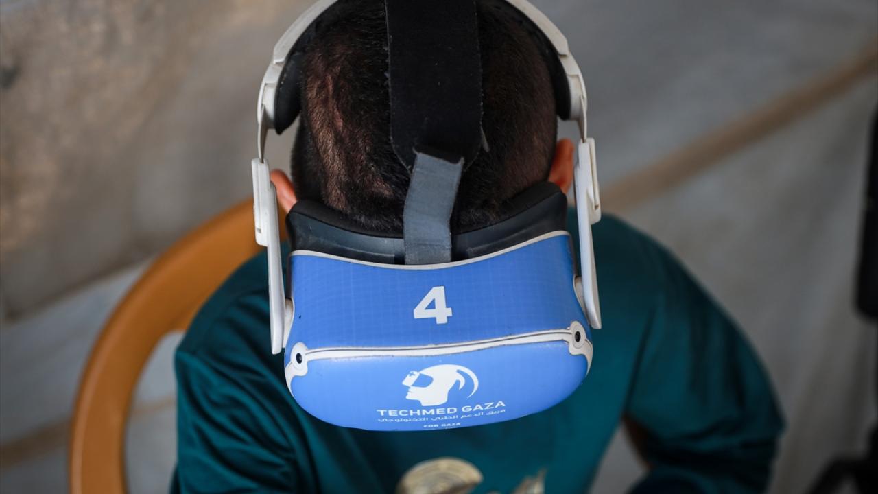 Gazze Şeridi'nin orta kesimindeki Zuveyde bölgesindeki sağlık ekipleri, savaşın psikolojik etkileriyle mücadele eden çocuklara sanal gerçeklik teknolojisiyle terapi uyguluyor.