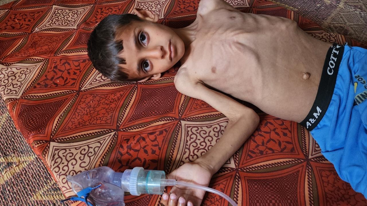 Osama Kamal El Rakab adli Filistinli çocuk, yetersiz beslenmeye bağlı vücut zayıflığı sorunlarıyla Gazze kentinin güneyinde yer alan Han Yunus kentinin doğusundaki Beni Suheyl beldesinde yaşam mücadelesi veriyor.